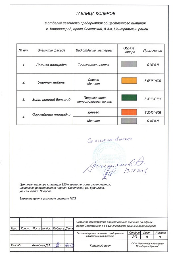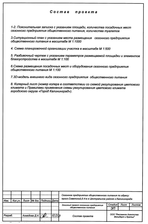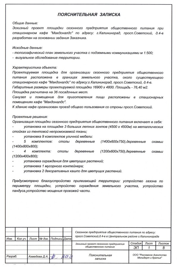 Информация о предоставлении муниципальной услуги «Согласование проекта размещения и внешнего облика сезонного предприятия общественного питания на территории городского округа «Город Калининград» код услуги 164-21/у