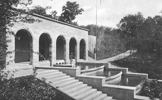 Памятник Вальтеру фон дер Фогельвейде на Музыкальной площади на Главной аллее Кёнигсбергского зоопарка в 1930 году. |