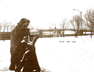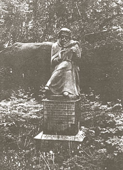 Памятник Вальтеру фон дер Фогельвейде на Главной аллее Калининградского зоопарка в 1965 году. |
