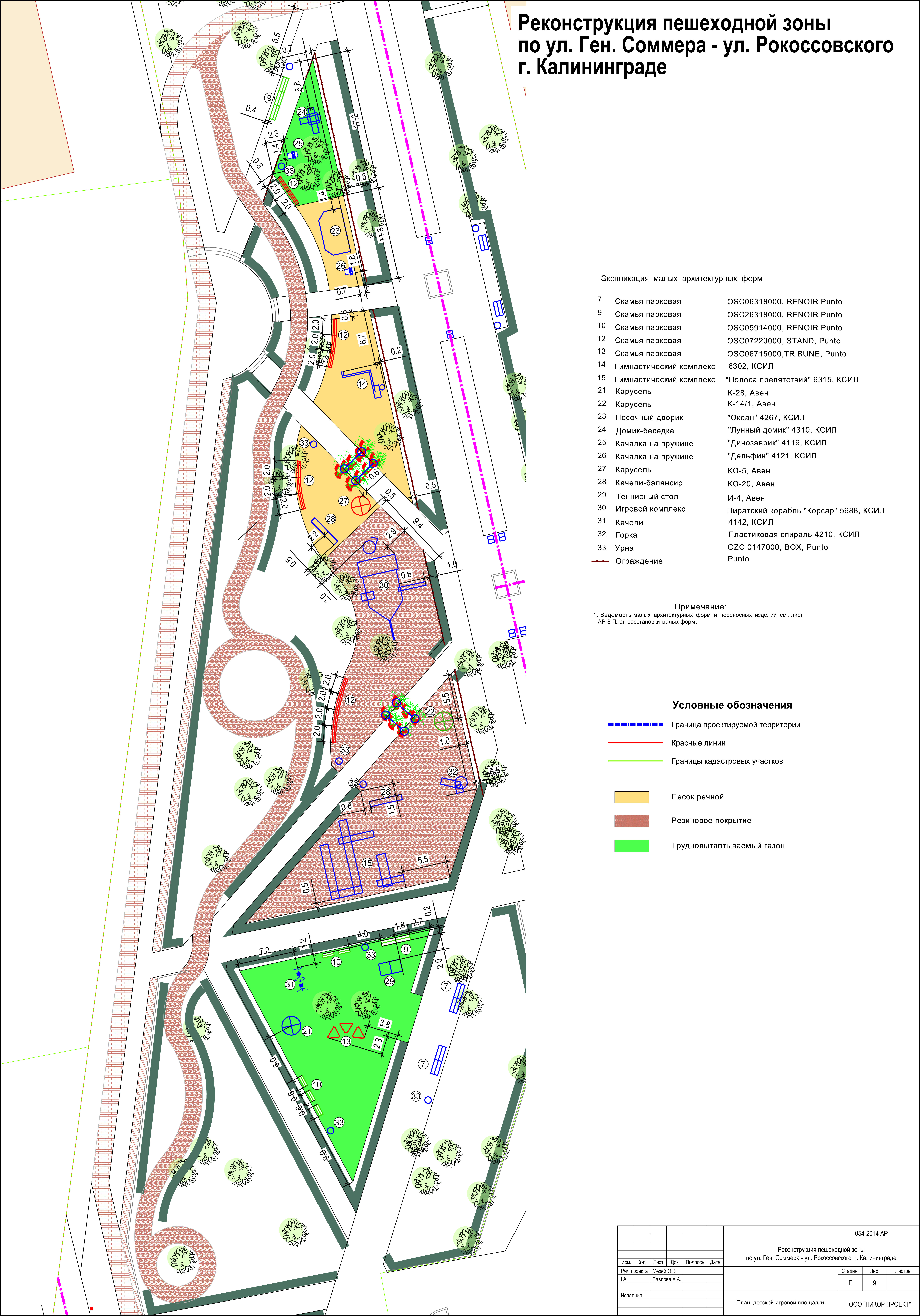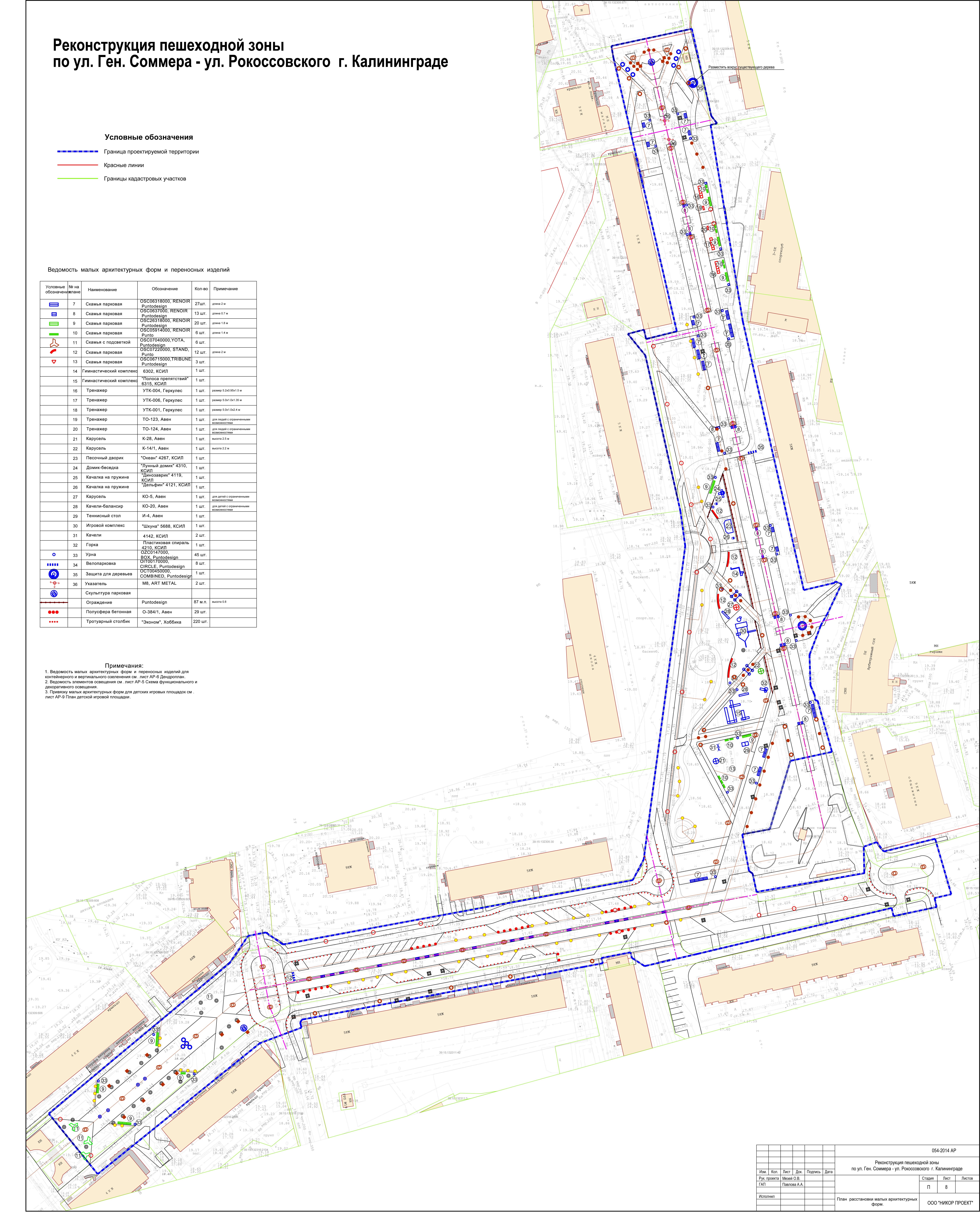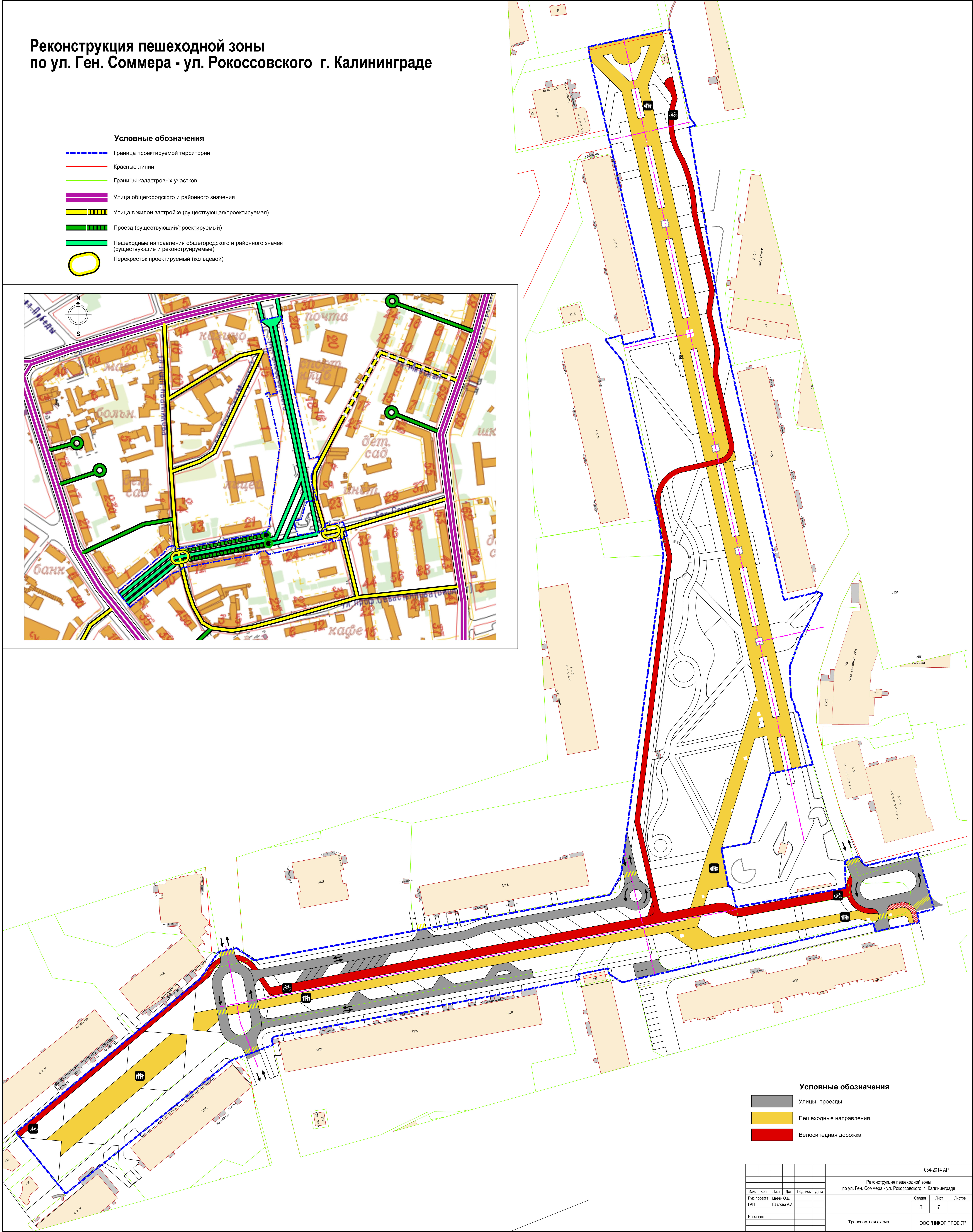 На основании муниципальной программы «Развитие парков, парковых зон, скверов и бульваров города Калининграда», в 2015г. разработана проектная документации на выполнение работ по реконструкции пешеходной зоны по ул. Ген. Соммера - ул. Рокоссовского.