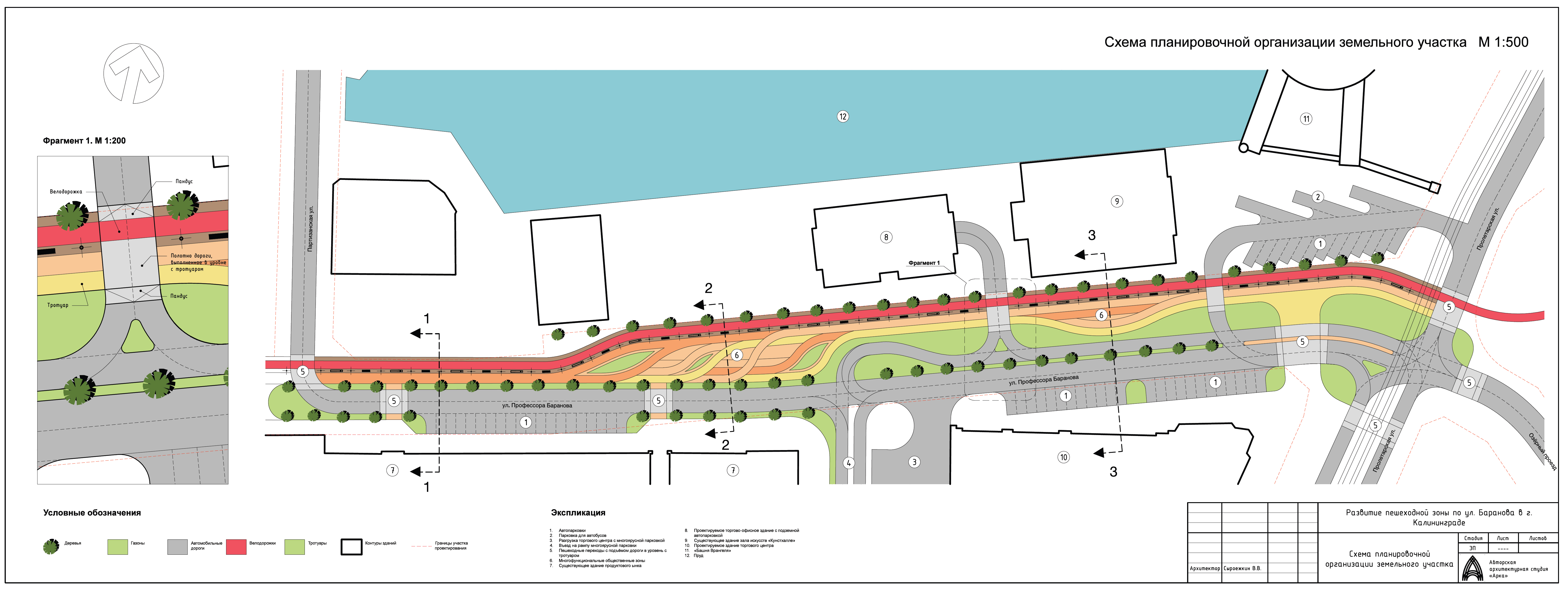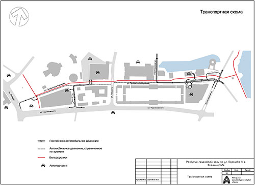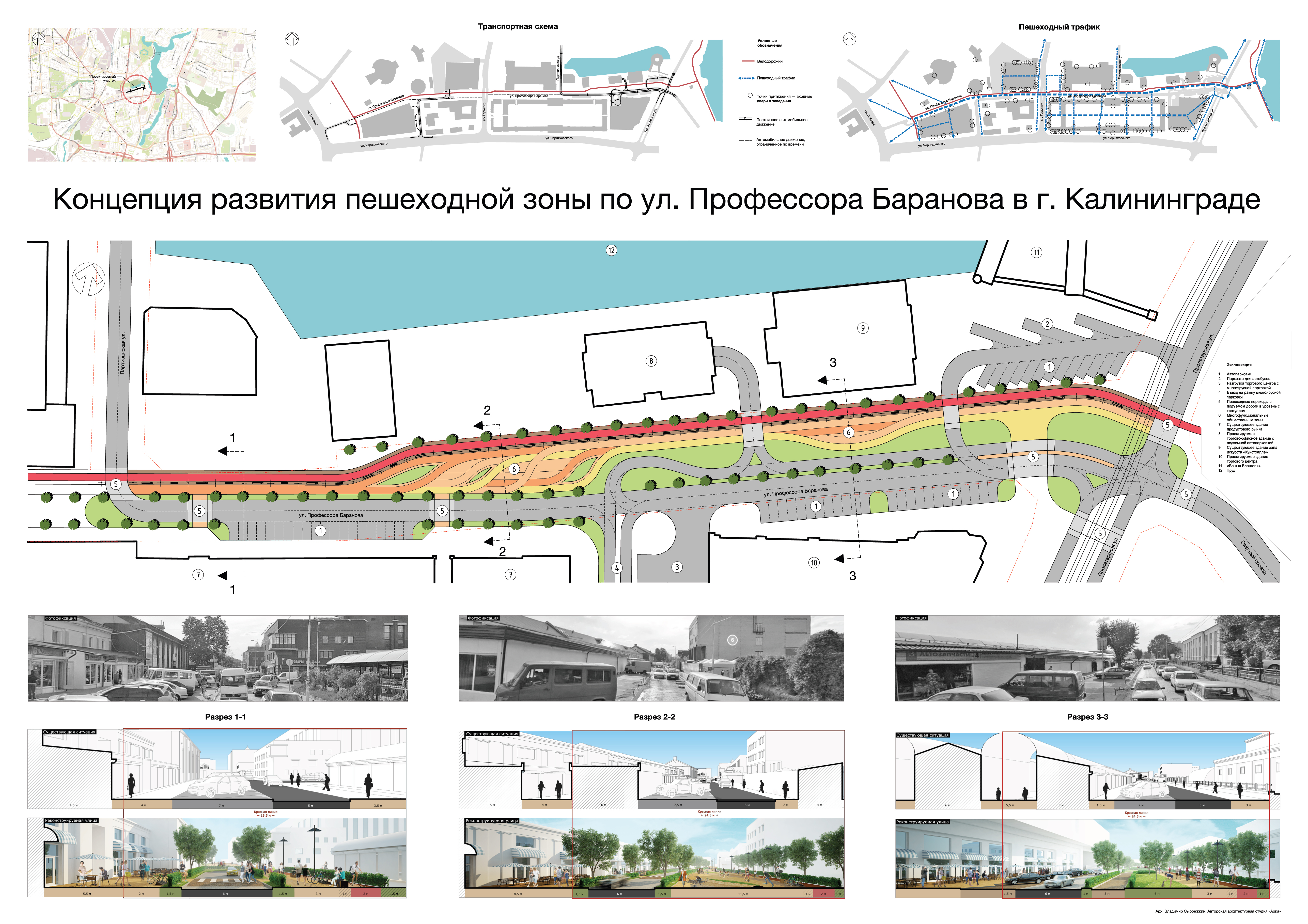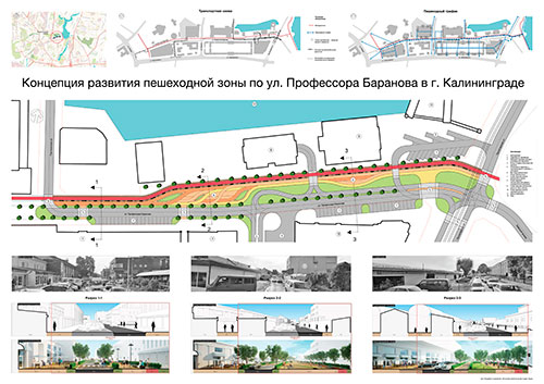 На основании муниципальной программы «Обеспечение градостроительной и архитектурной деятельности в городском округе «Город Калининград», по заказу комитета архитектуры и строительства администрации городского округа «Город Калининград», а также в рамках обеспечения деятельности по подготовке и проведению игр чемпионата мира по футболу 2018 года на территории Калининградской области в июне 2016г разработана Архитектурно-градостроительная концепция «Развитие пешеходной ул. Баранова в г. Калининграде».