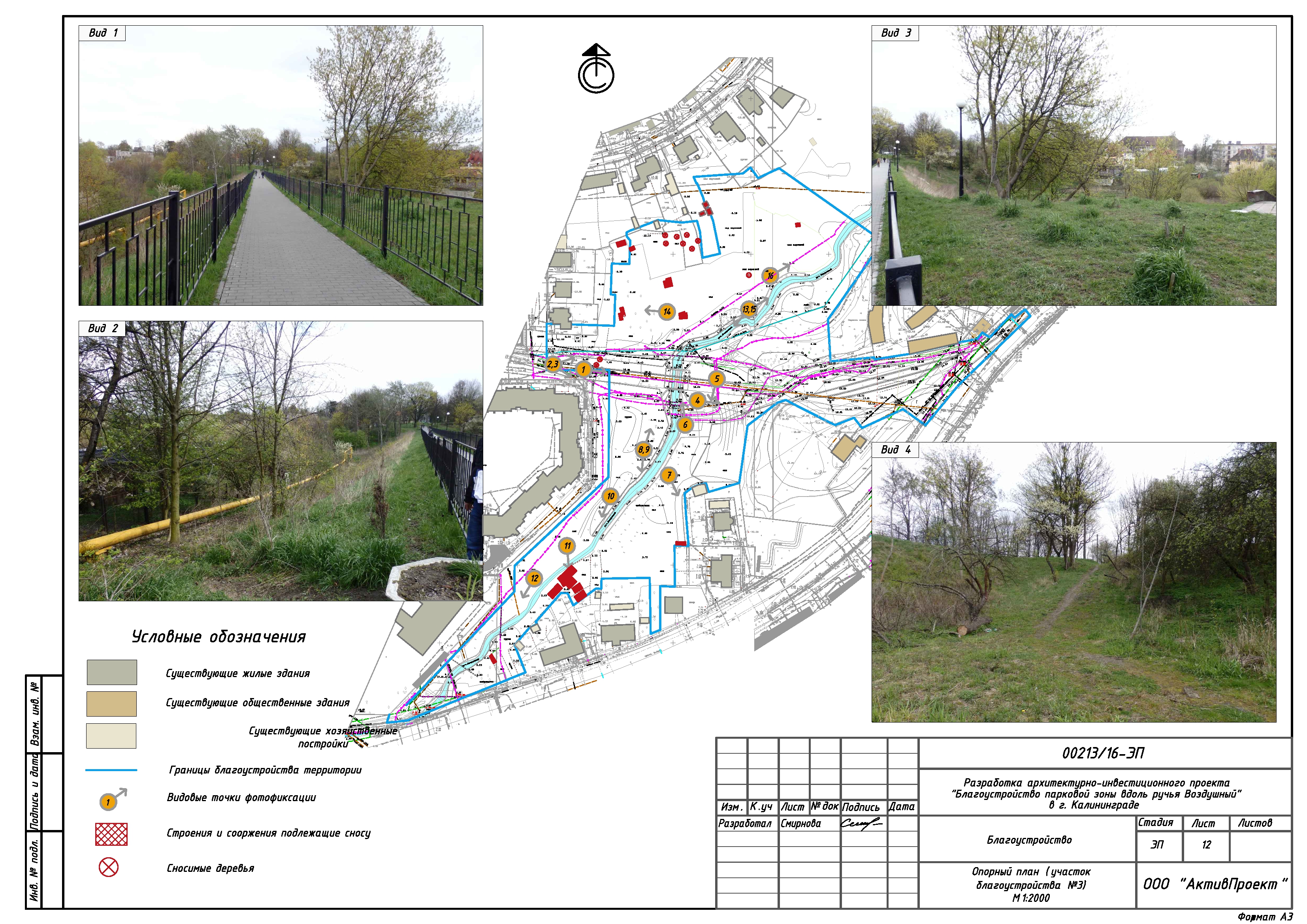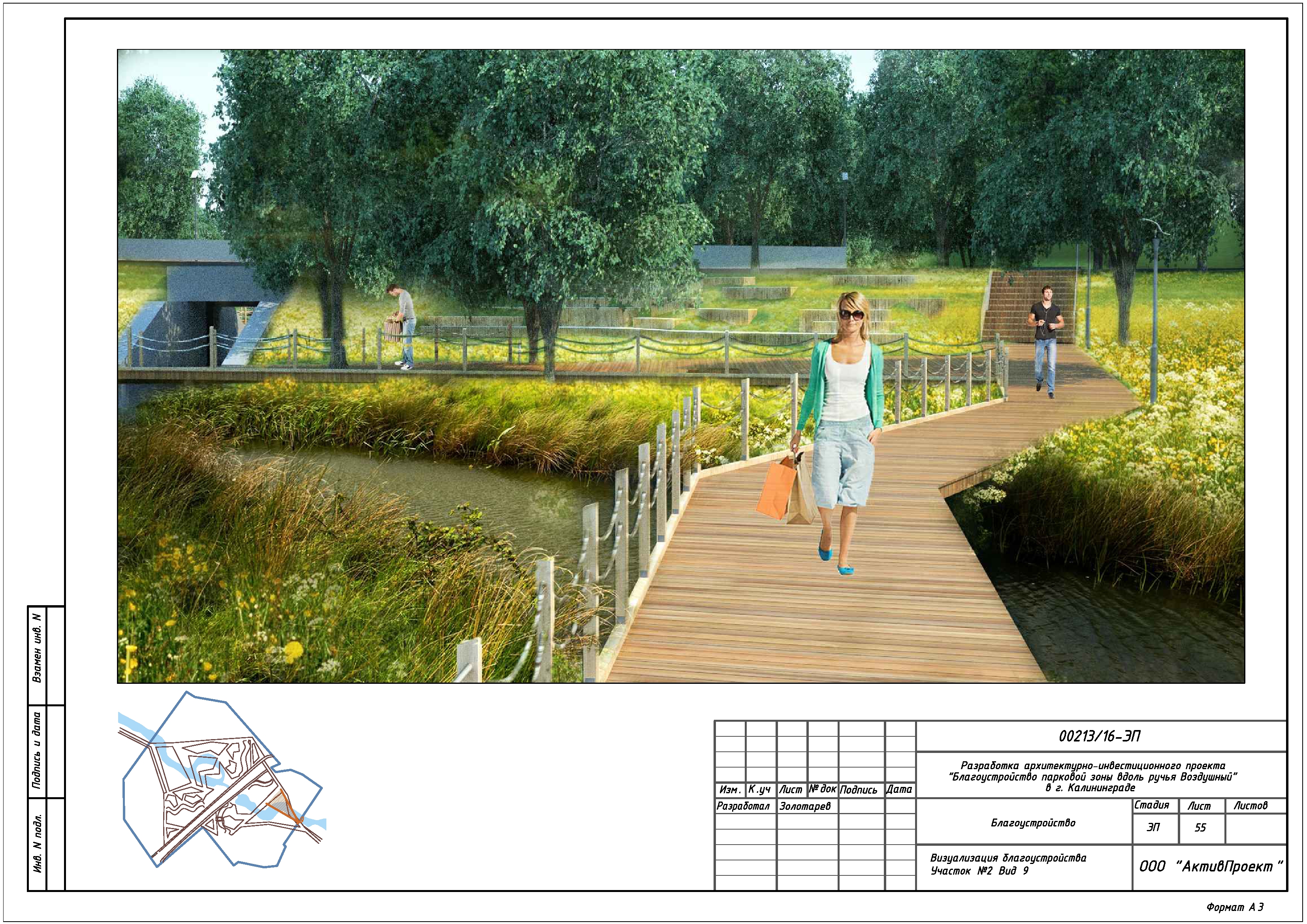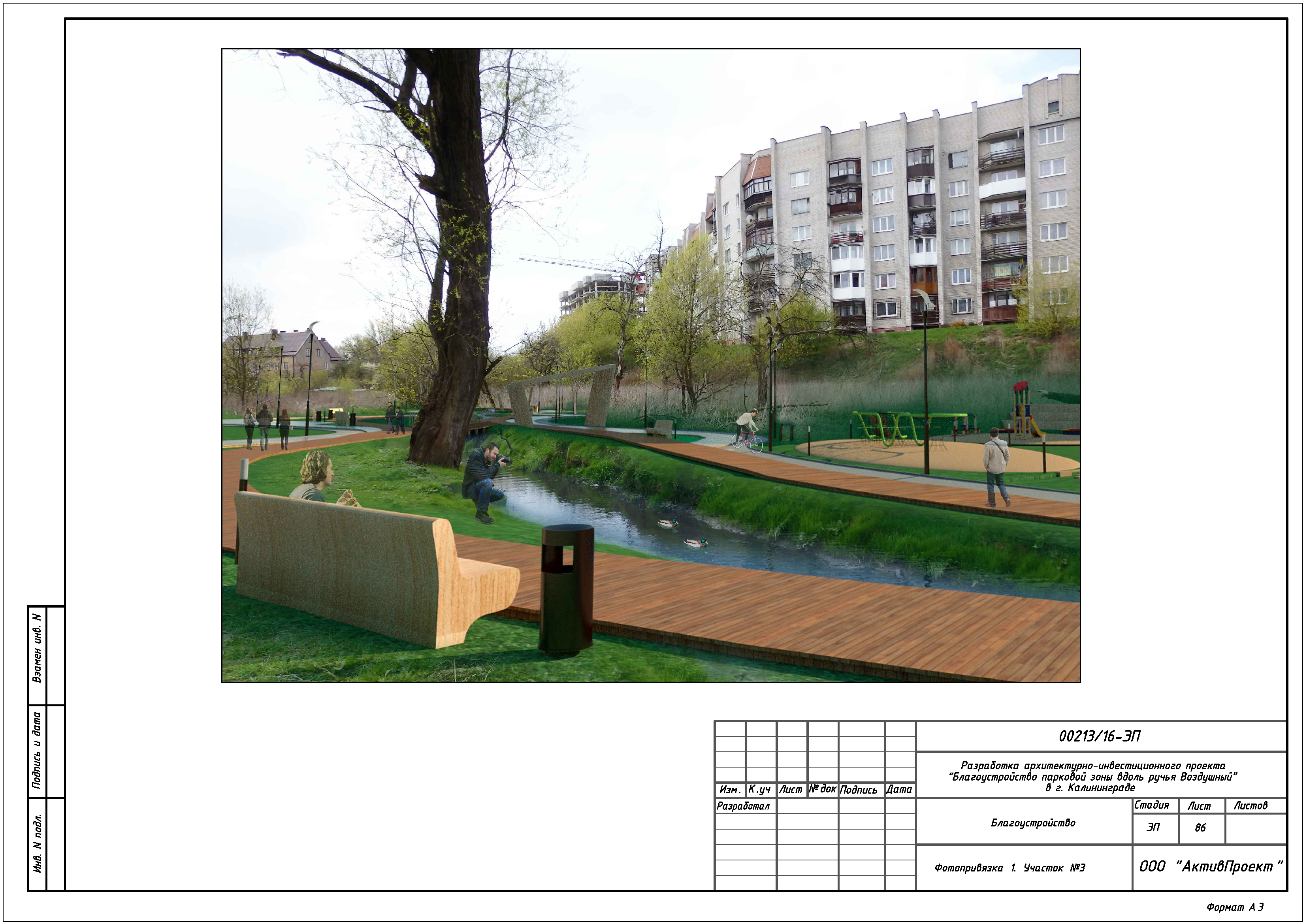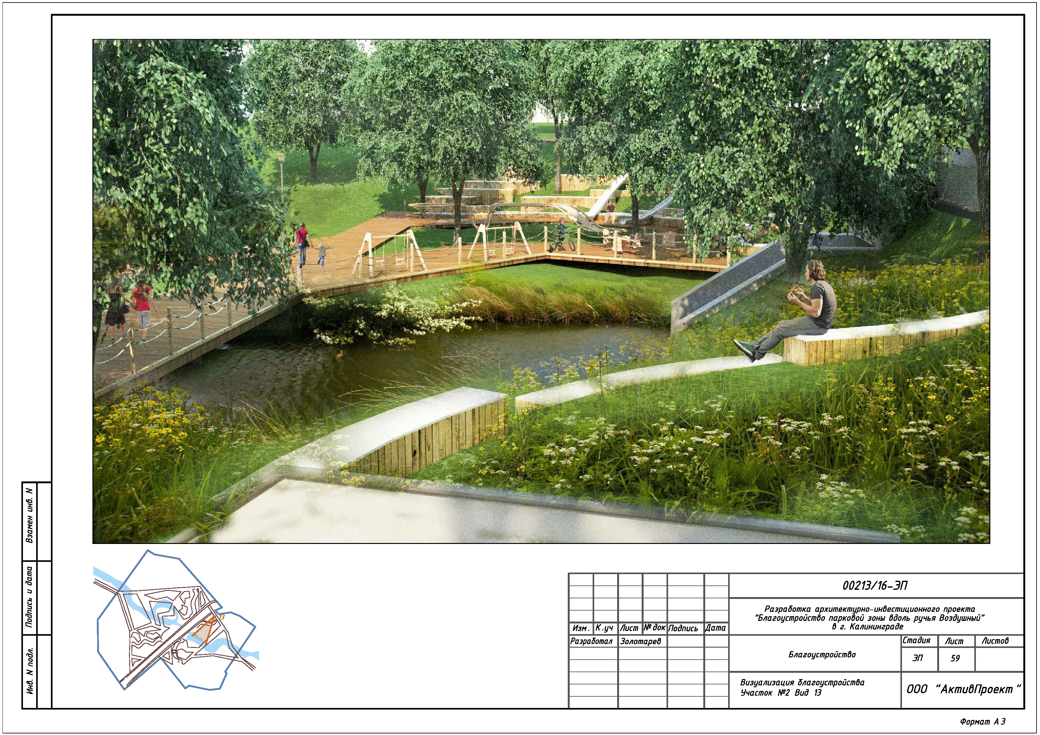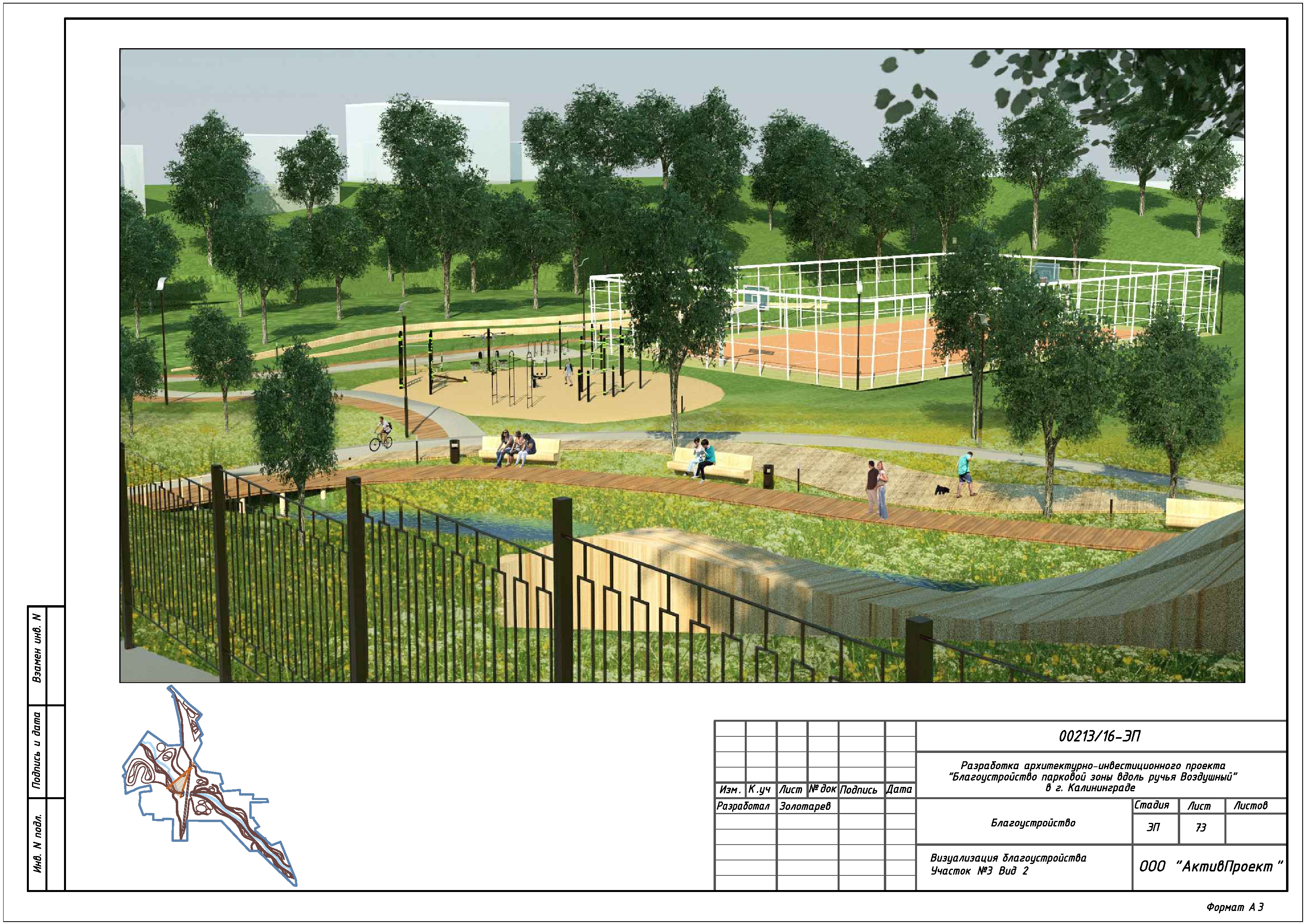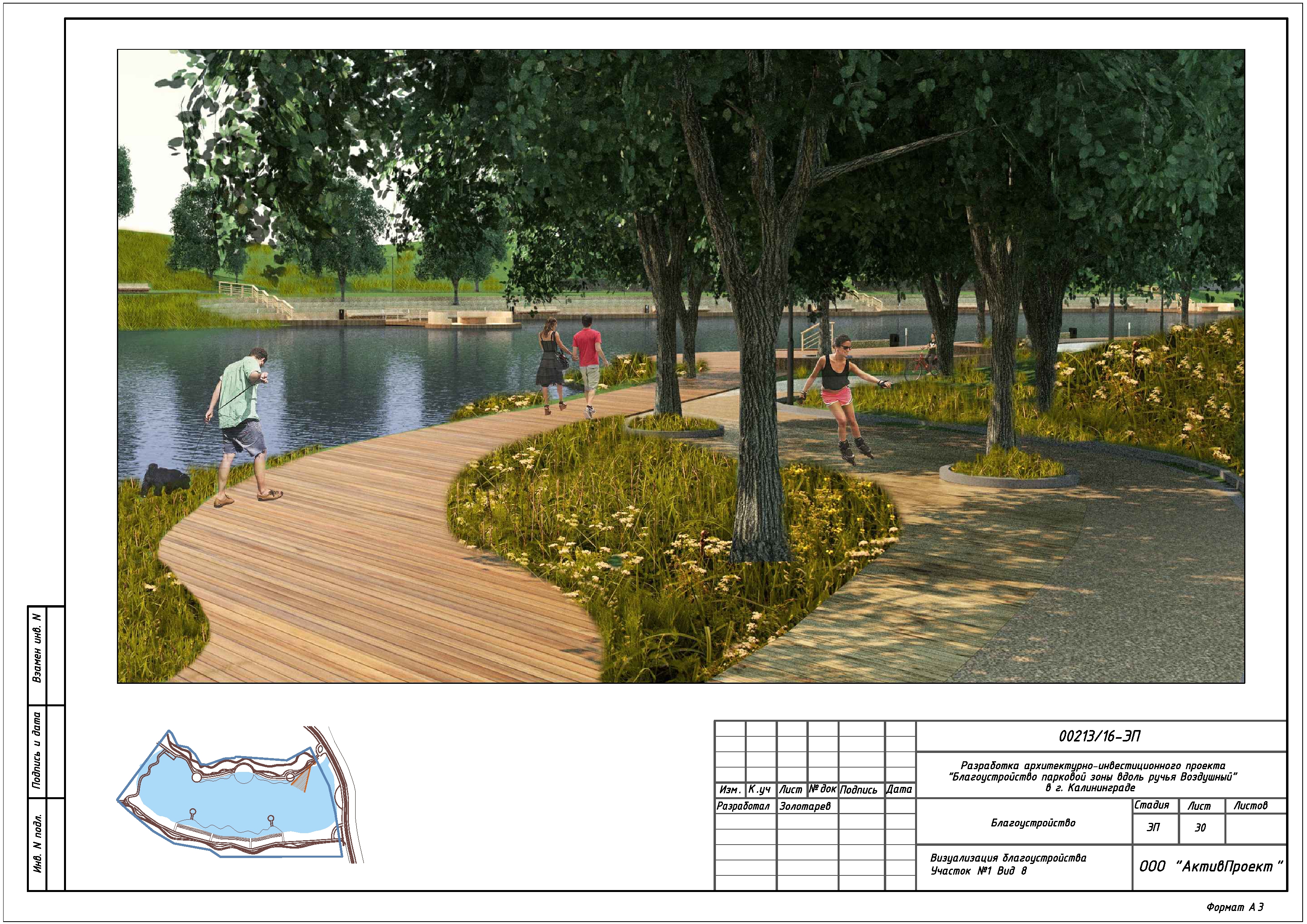 На основании муниципальной программы «Обеспечение градостроительной и архитектурной деятельности в городском округе «Город Калининград», по заказу комитета архитектуры и строительства администрации городского округа «Город Калининград», а также в рамках обеспечения деятельности по подготовке и проведению игр чемпионата мира по футболу 2018 года на территории Калининградской области, в сентябре 2016г разработан архитектурно-инвестиционный проект «Благоустройство парковой зоны вдоль ручья Воздушного в г. Калининграде».