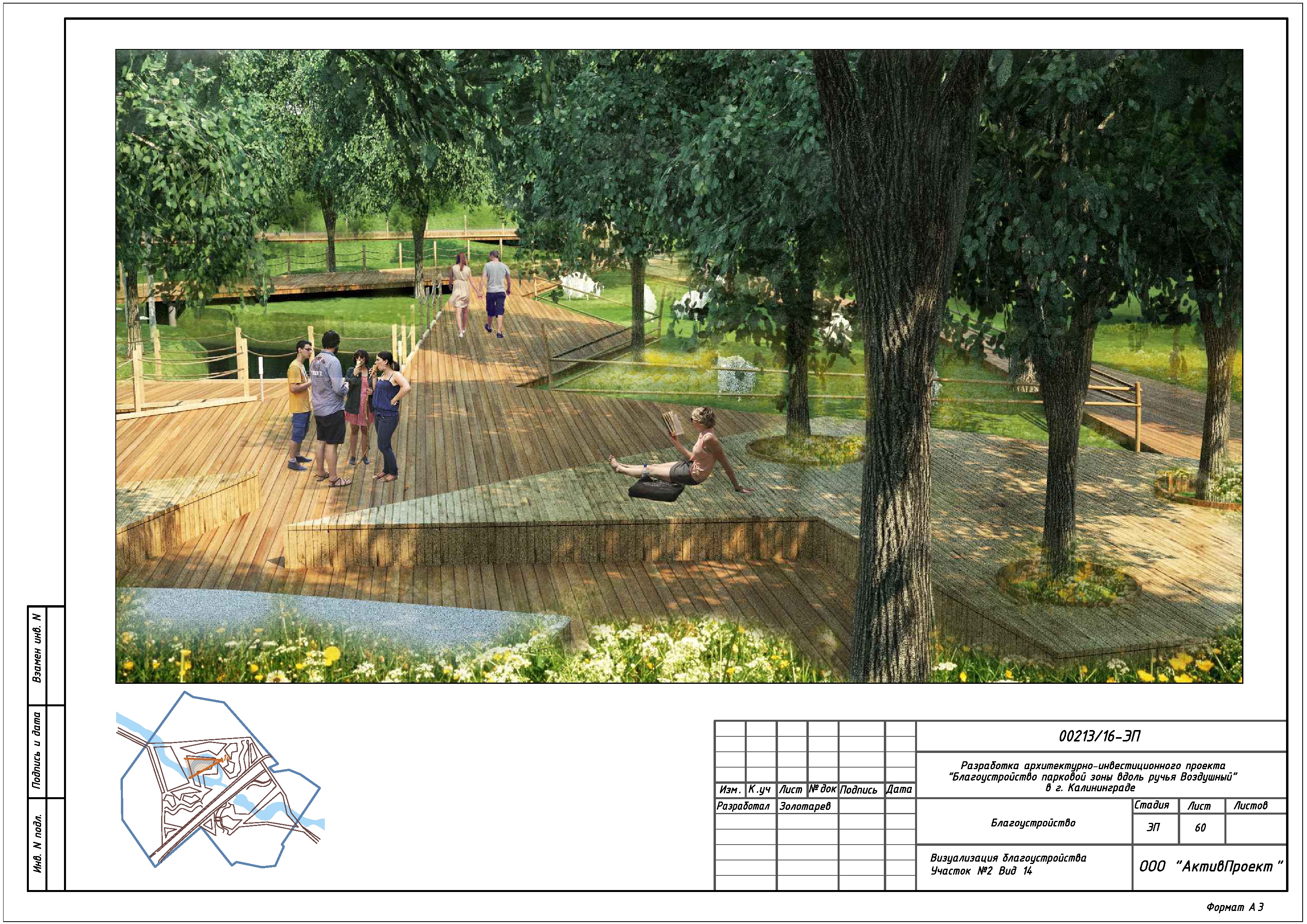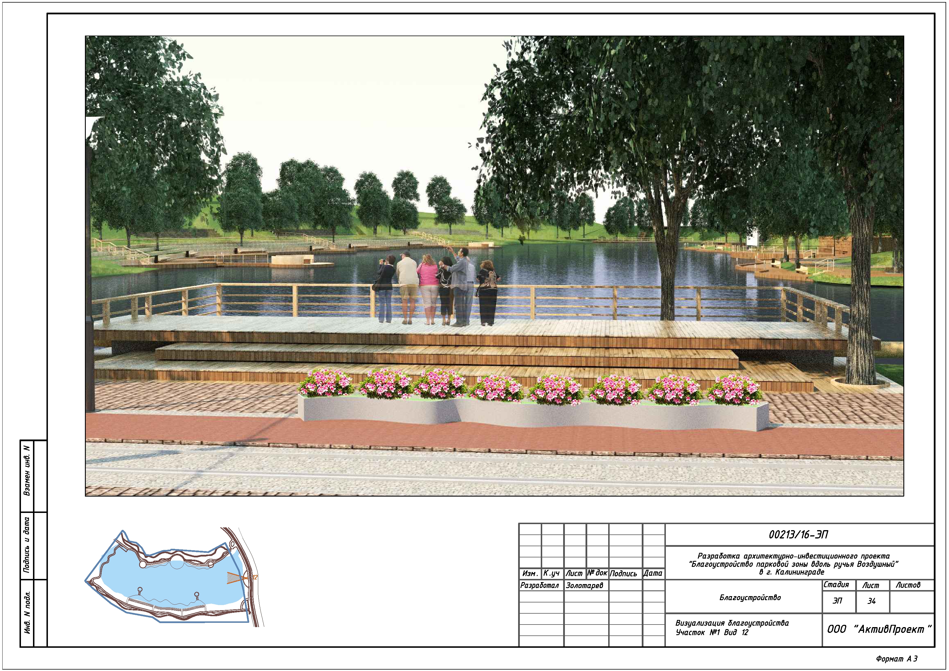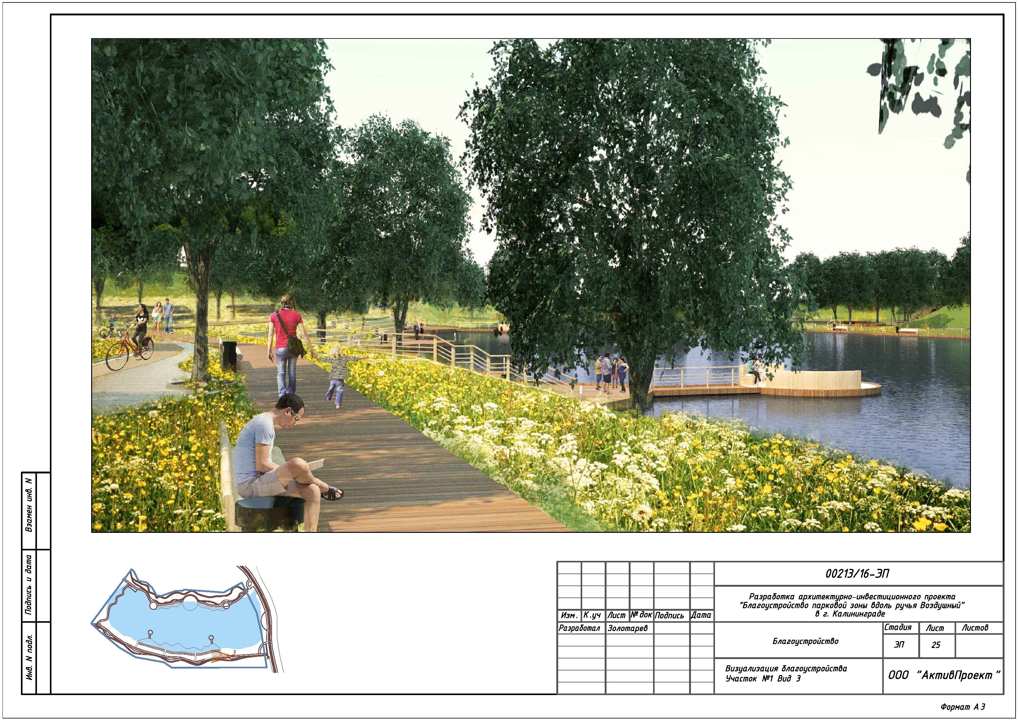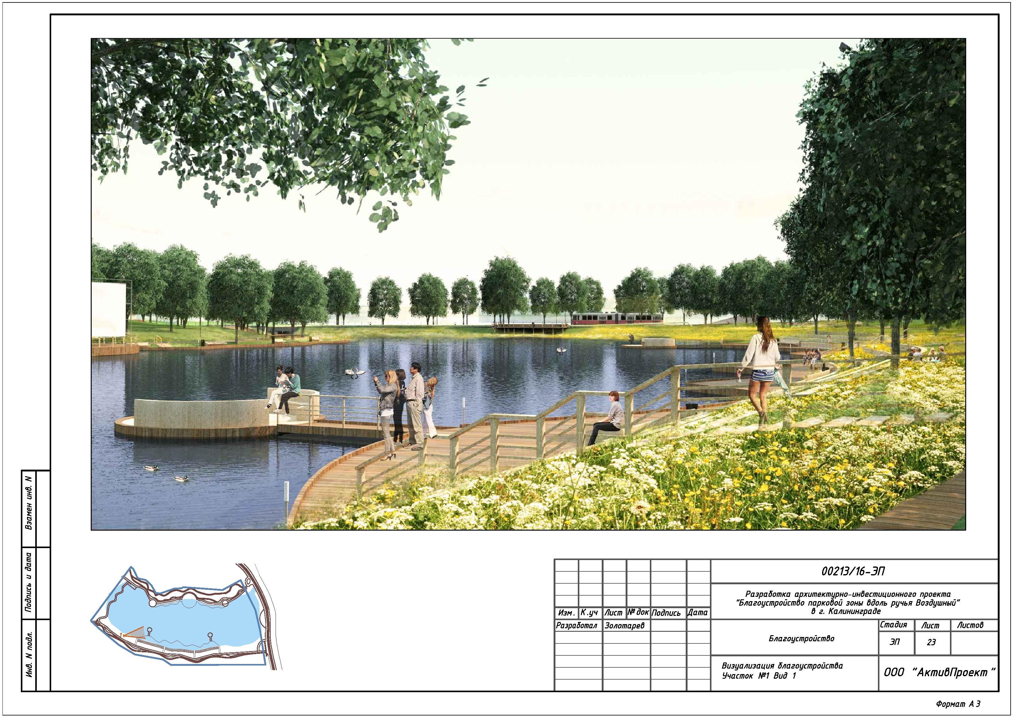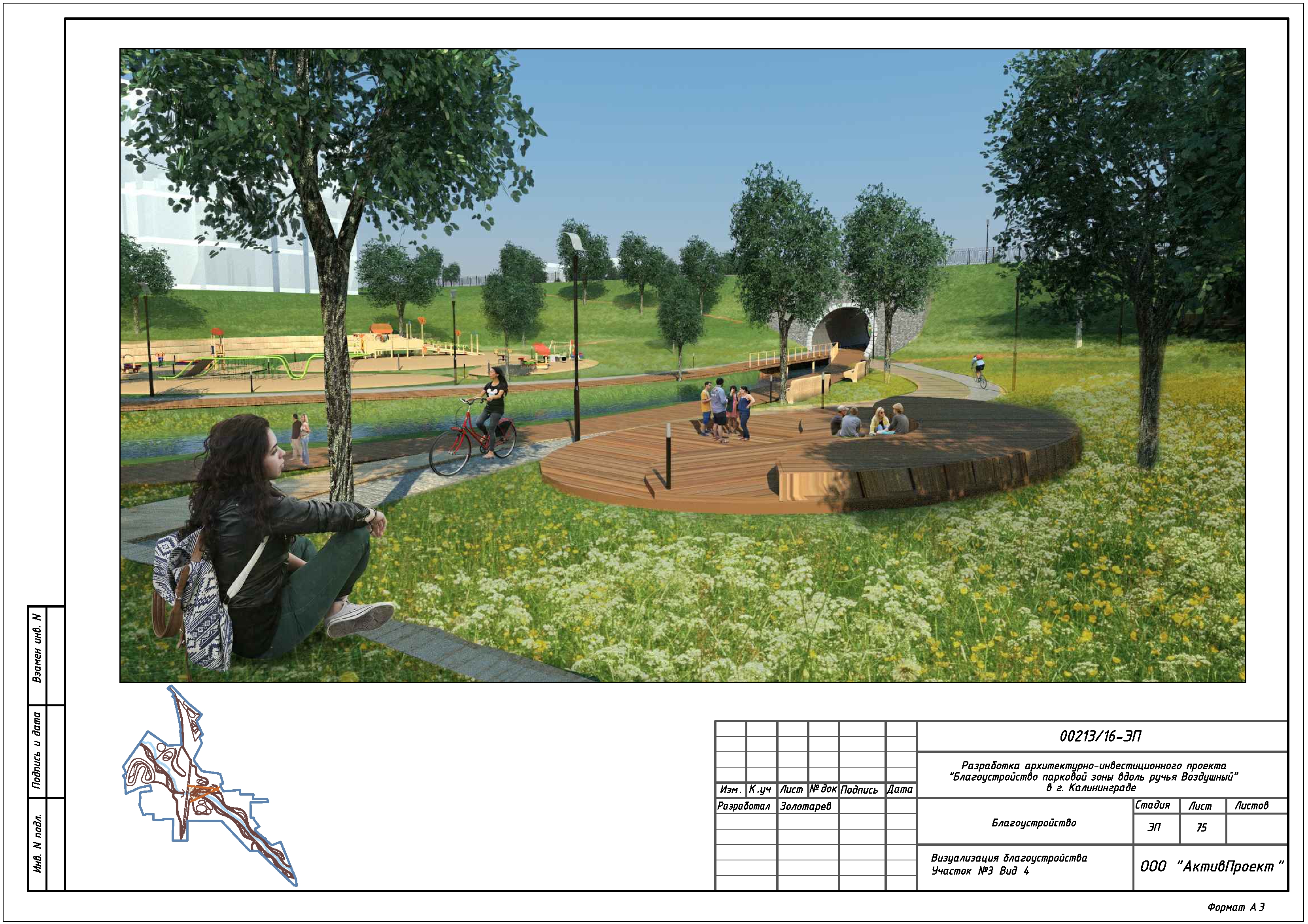 На основании муниципальной программы «Обеспечение градостроительной и архитектурной деятельности в городском округе «Город Калининград», по заказу комитета архитектуры и строительства администрации городского округа «Город Калининград», а также в рамках обеспечения деятельности по подготовке и проведению игр чемпионата мира по футболу 2018 года на территории Калининградской области, в сентябре 2016г разработан архитектурно-инвестиционный проект «Благоустройство парковой зоны вдоль ручья Воздушного в г. Калининграде».