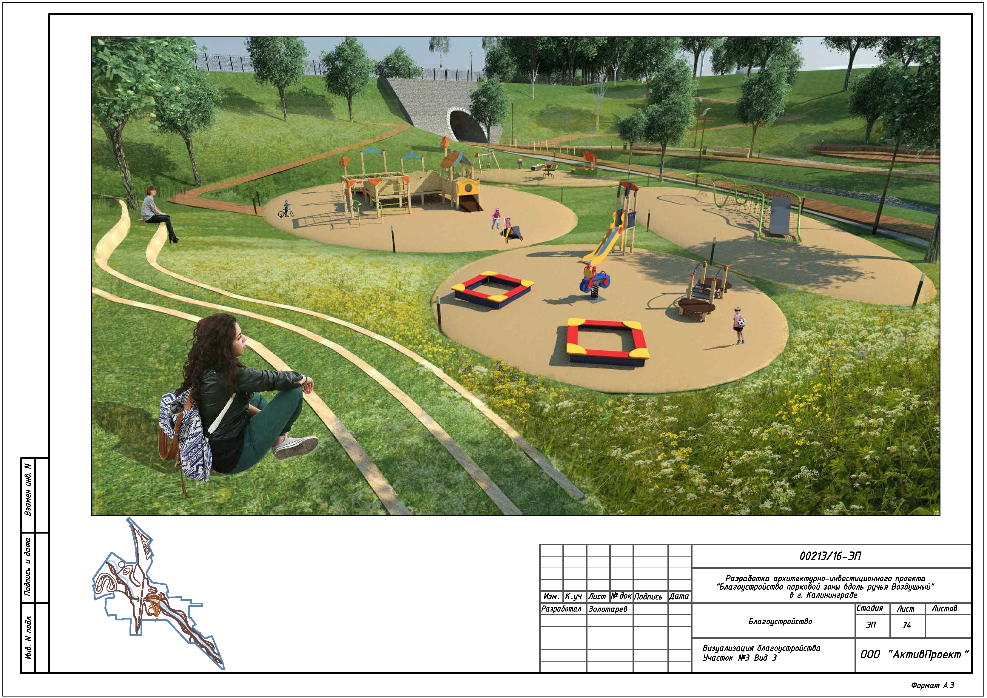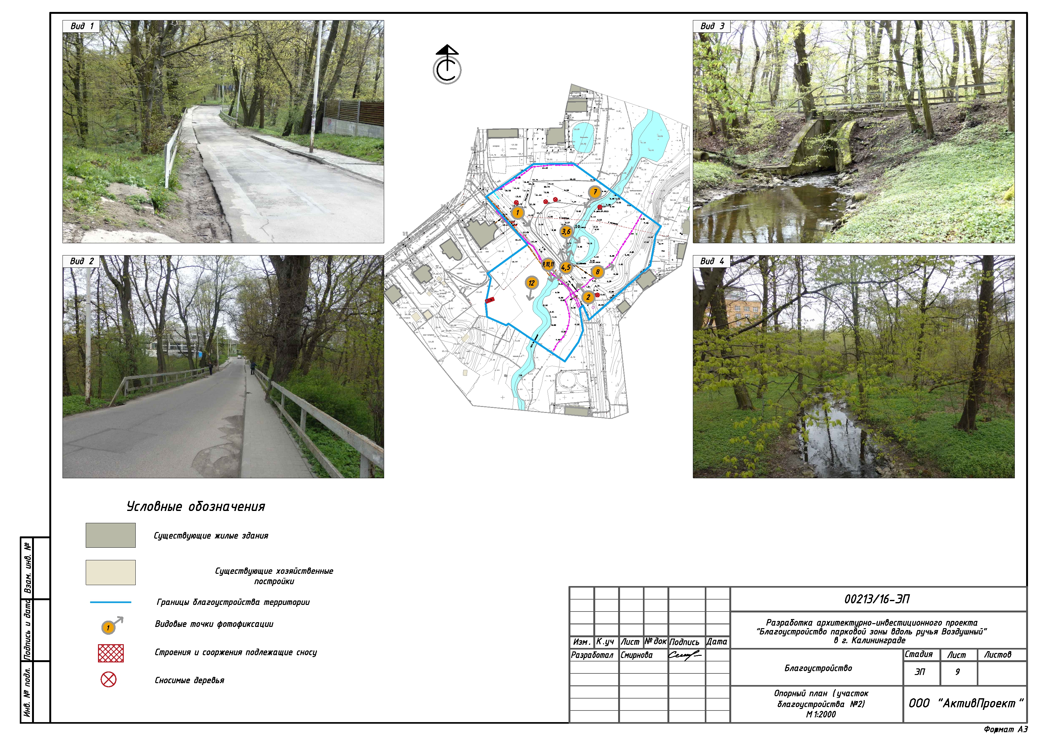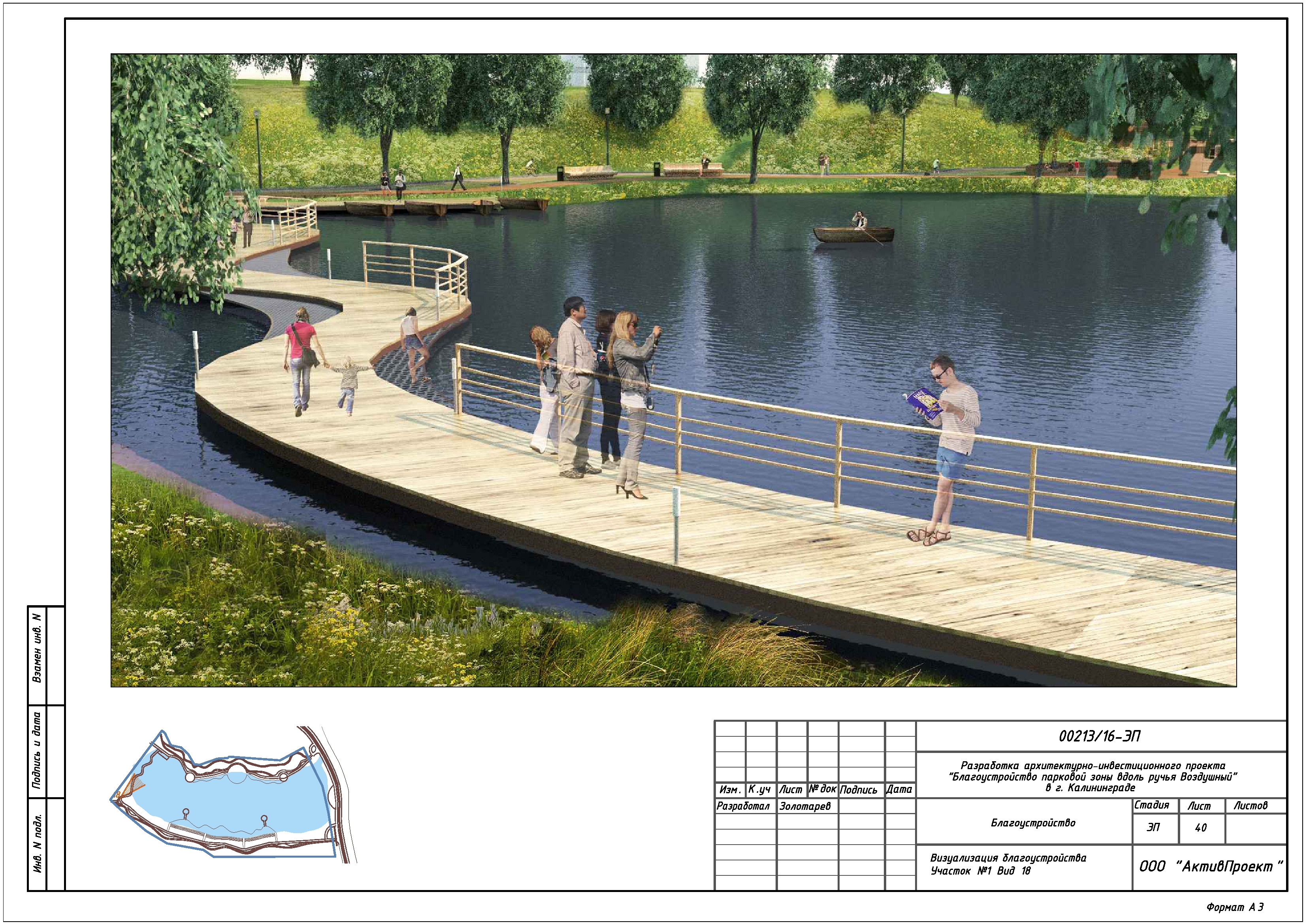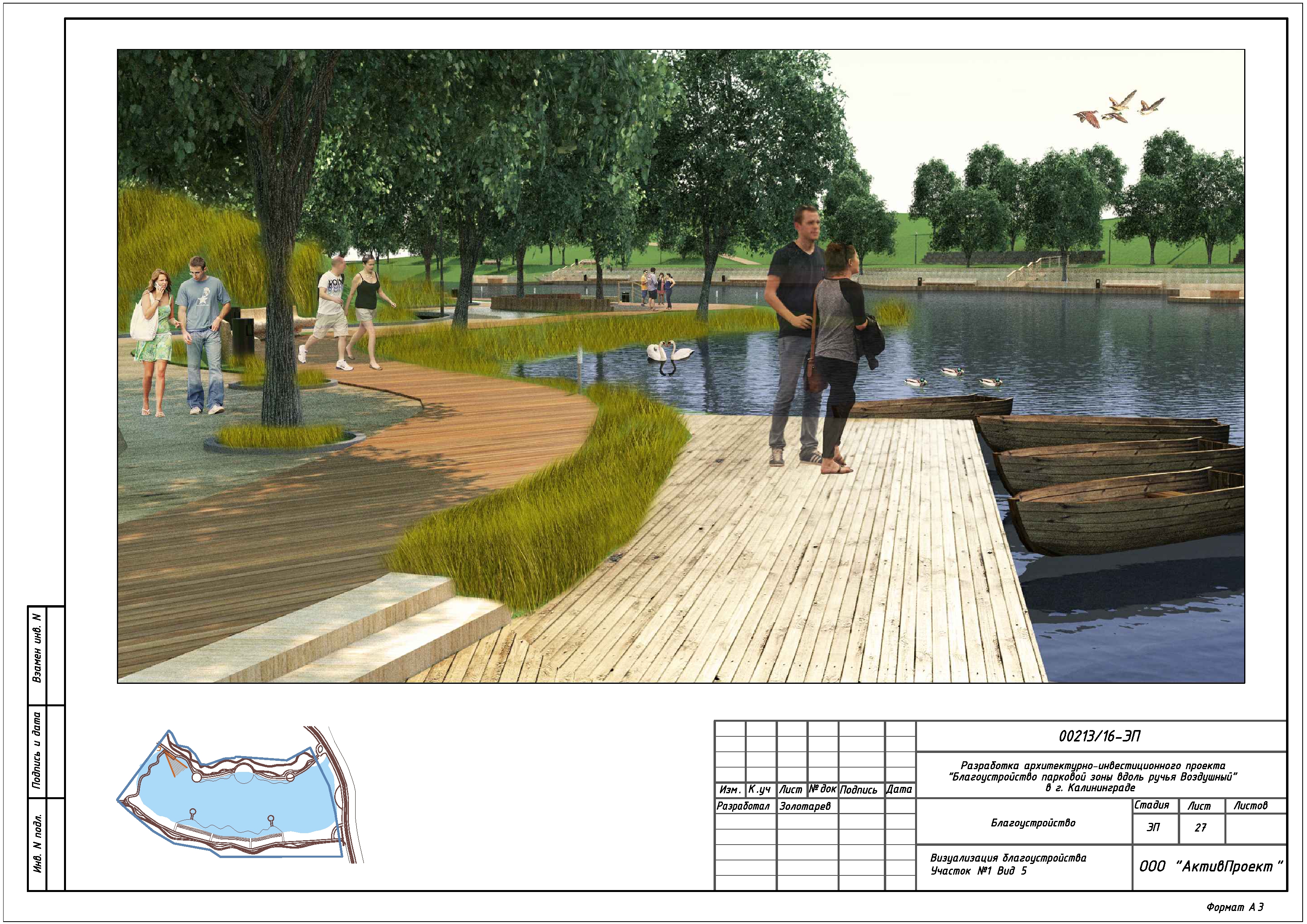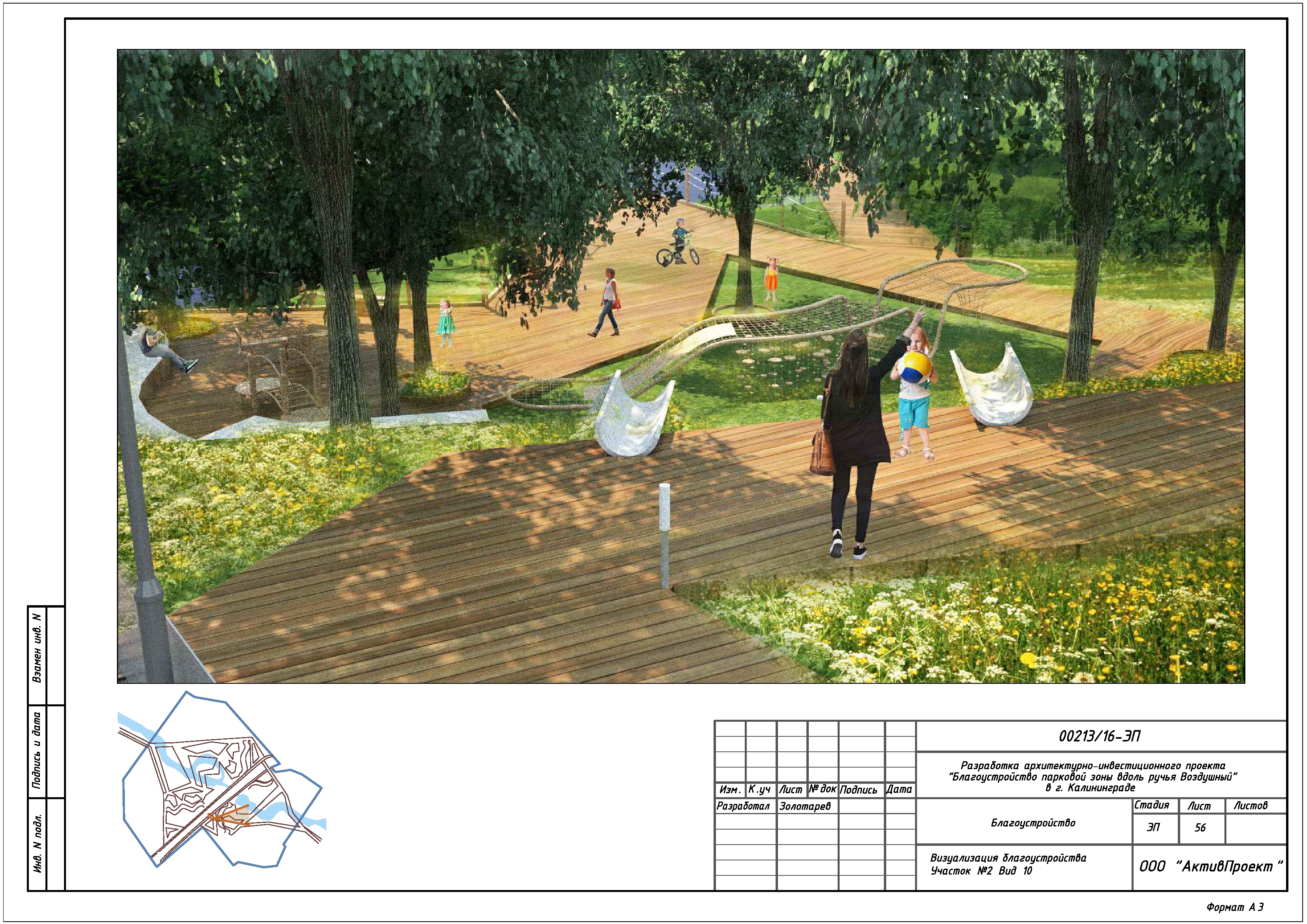 На основании муниципальной программы «Обеспечение градостроительной и архитектурной деятельности в городском округе «Город Калининград», по заказу комитета архитектуры и строительства администрации городского округа «Город Калининград», а также в рамках обеспечения деятельности по подготовке и проведению игр чемпионата мира по футболу 2018 года на территории Калининградской области, в сентябре 2016г разработан архитектурно-инвестиционный проект «Благоустройство парковой зоны вдоль ручья Воздушного в г. Калининграде».