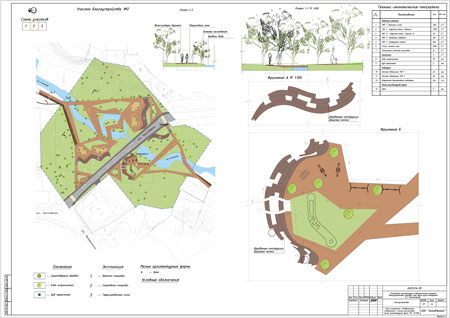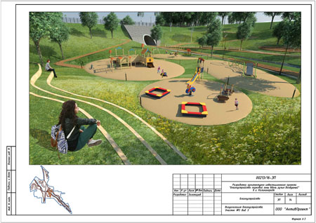 Участок №2 – территория пересечения ручья Воздушного с ул. Бассейной, на которой предлагается выполнить устройство террасированных площадок в разных уровнях с учётом сложившегося рельефа, деревянных помостов, разместить детскую игровую площадку;