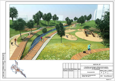 Цель проекта – разработка архитектурных решений комплексного благоустройства, направленных на изменение значимости и функции проектной территории, с целью формирования крупной рекреационной зоны общегородского значения в данном районе города.