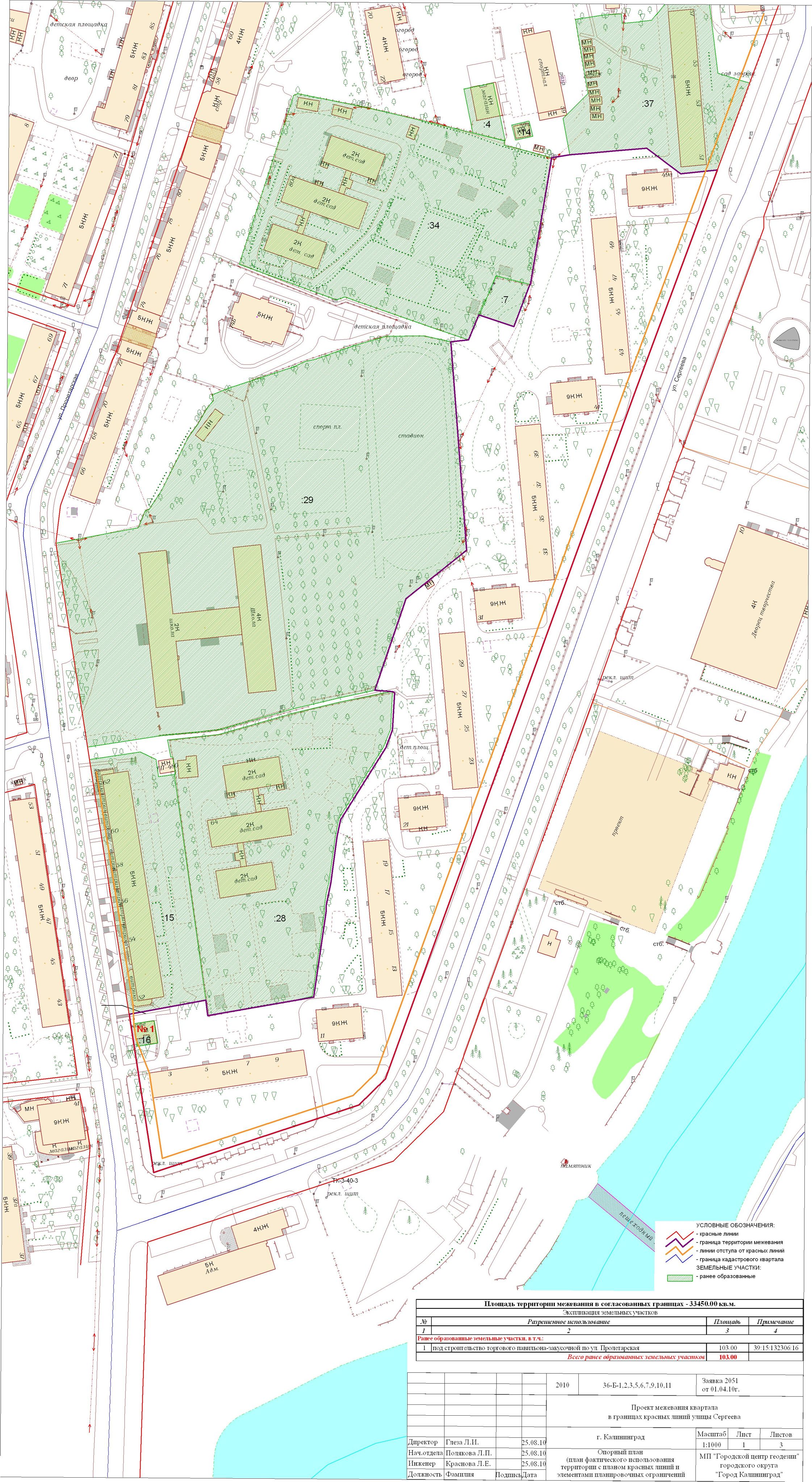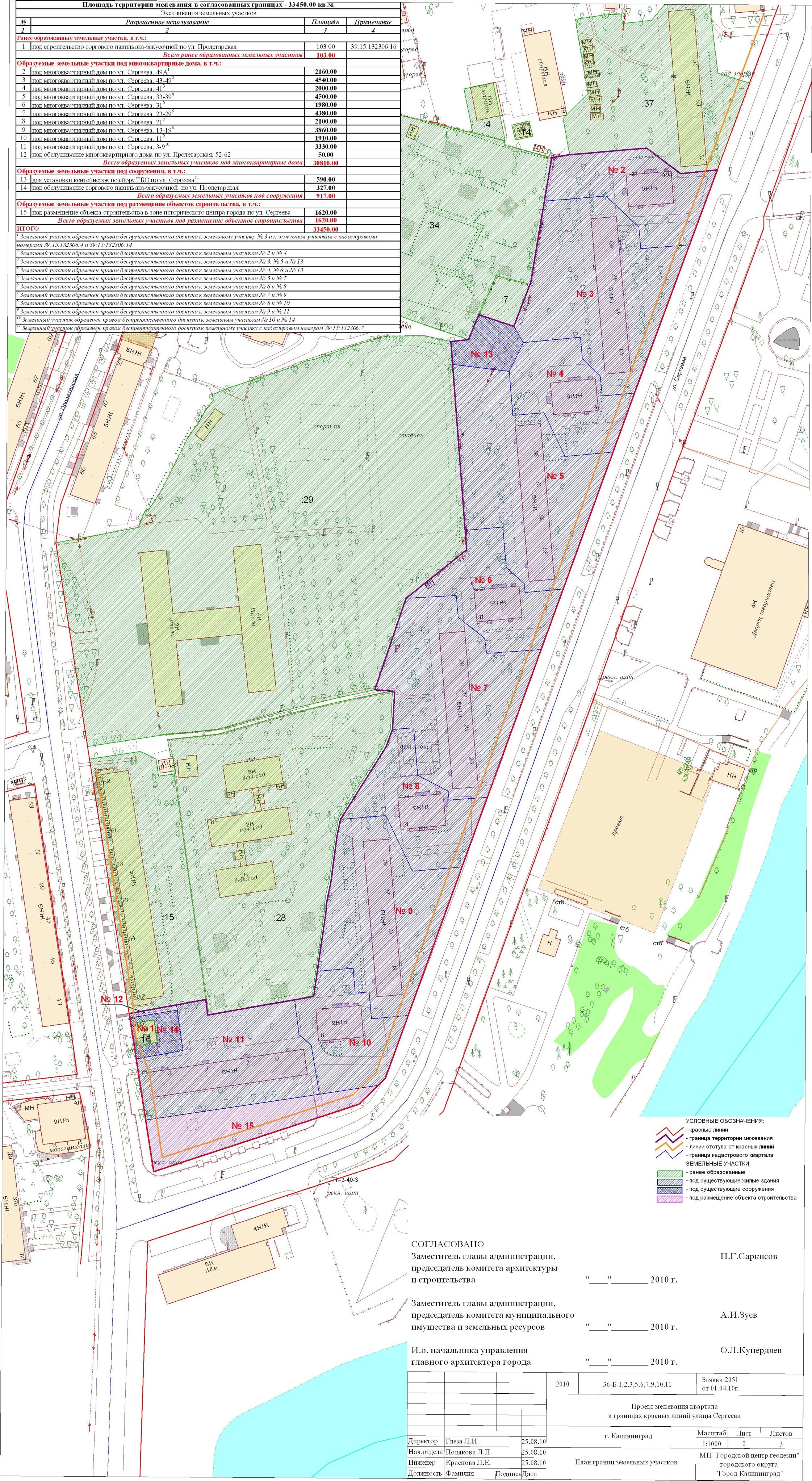 | Материалы проекта: | Постановление № 707 от 29.04.2011 Опорный план План границ земельных участков План красных линий Данные по нормативным и проектным площадям земельных участков Пояснительная записка |
