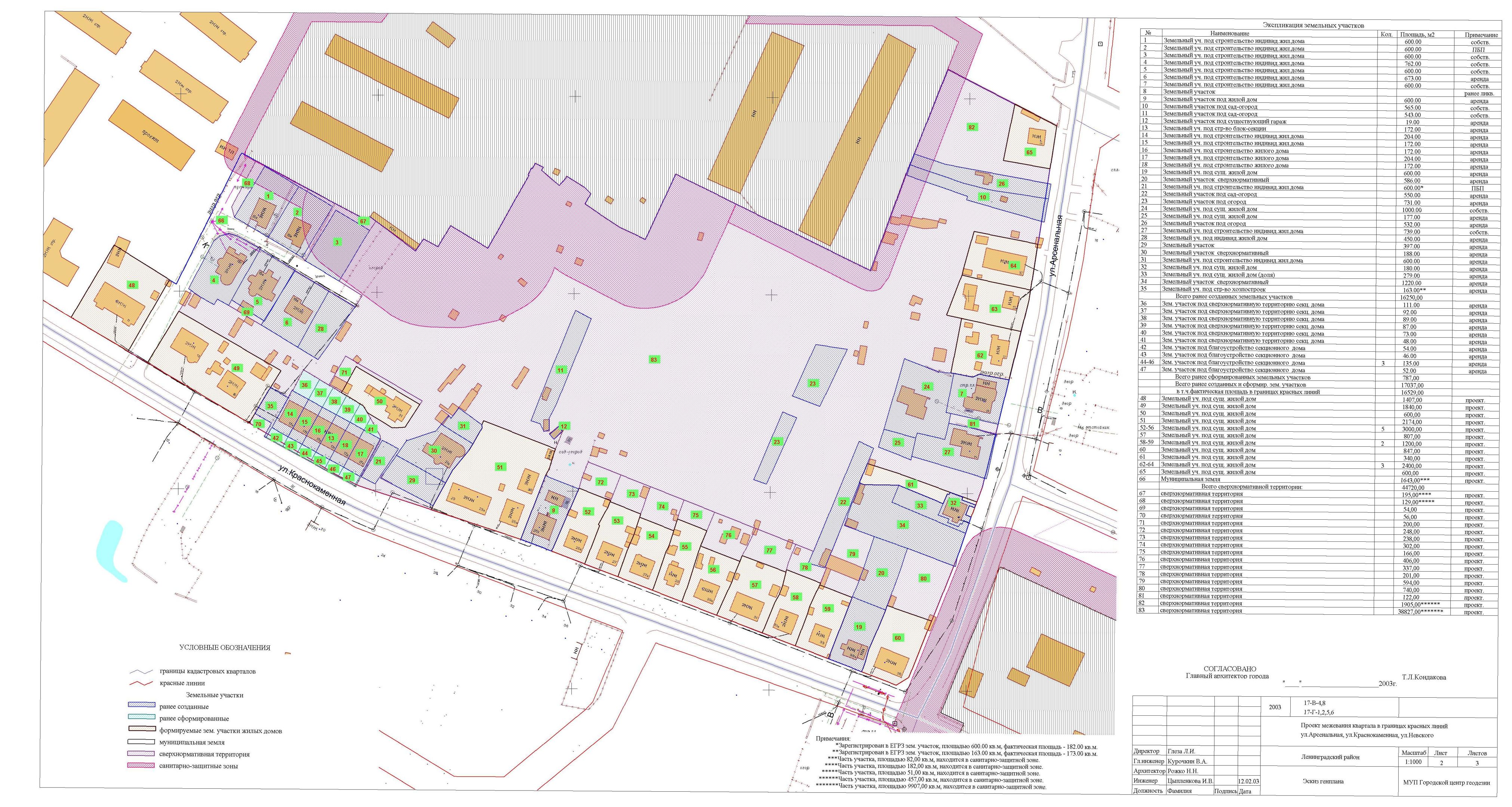 | Материалы проекта: | Постановление № 1030 от 07.05.2003 Опорный план План границ земельных участков Эскиз генерального плана Данные по нормативным и проектным площадям земельных участков Пояснительная записка Данные ГП |