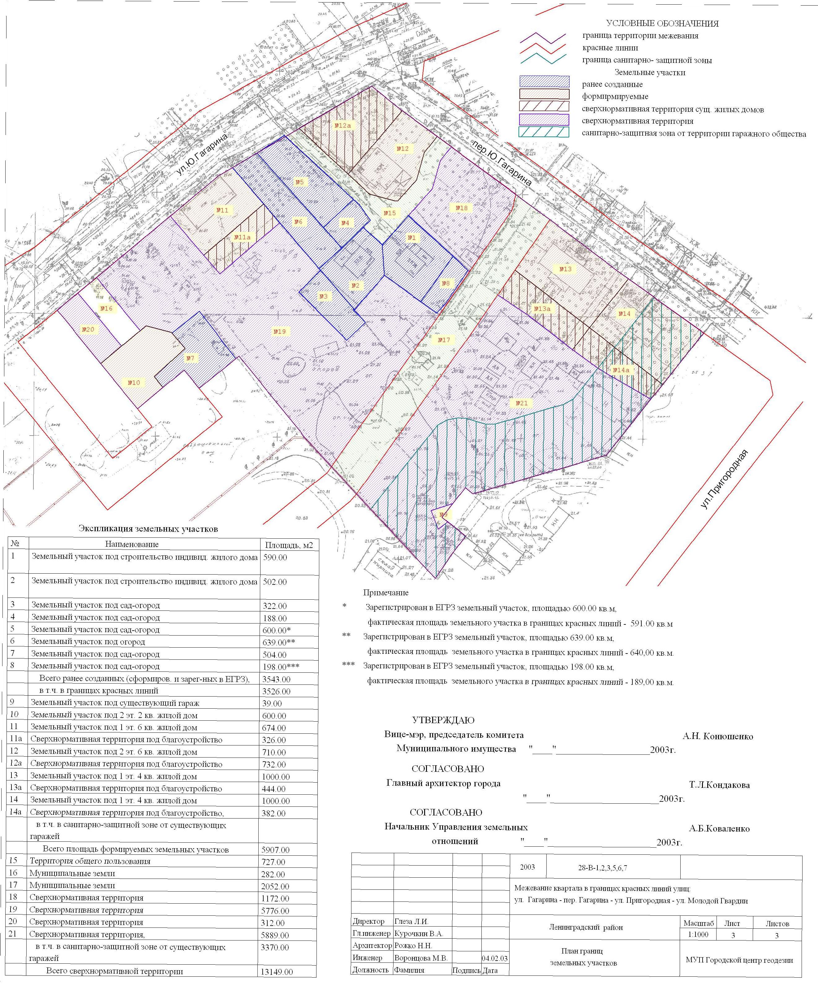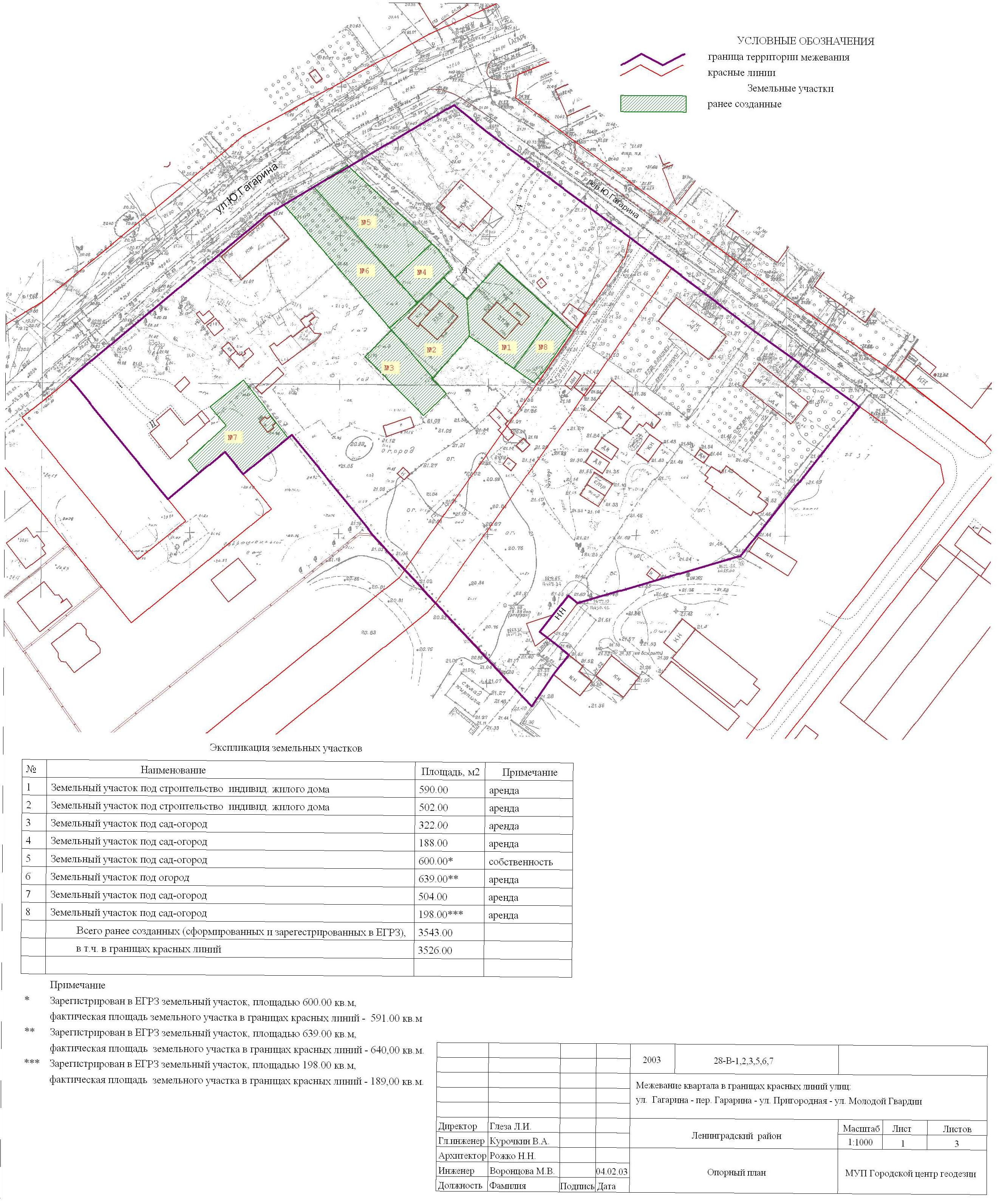 | Материалы проекта: | Постановление № 460 от 04.03.2004 Опорный план План границ земельных участков Данные по нормативным и проектным площадям земельных участков Пояснительная записка Данные ГП |