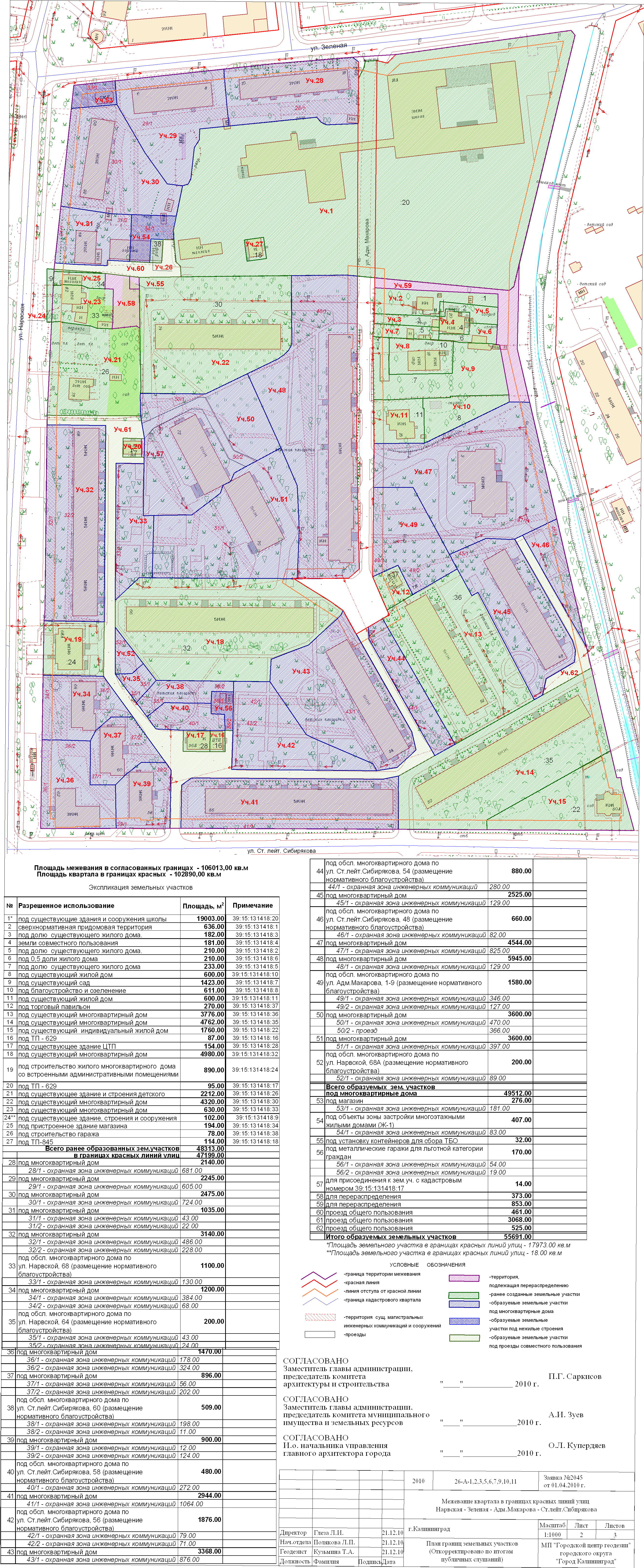 | Материалы проекта: | Постановление № 200 от 16.02.2011 Опорный план План границ земельных участков План красных линий Данные по нормативным и проектным площадям земельных участков Пояснительная записка |