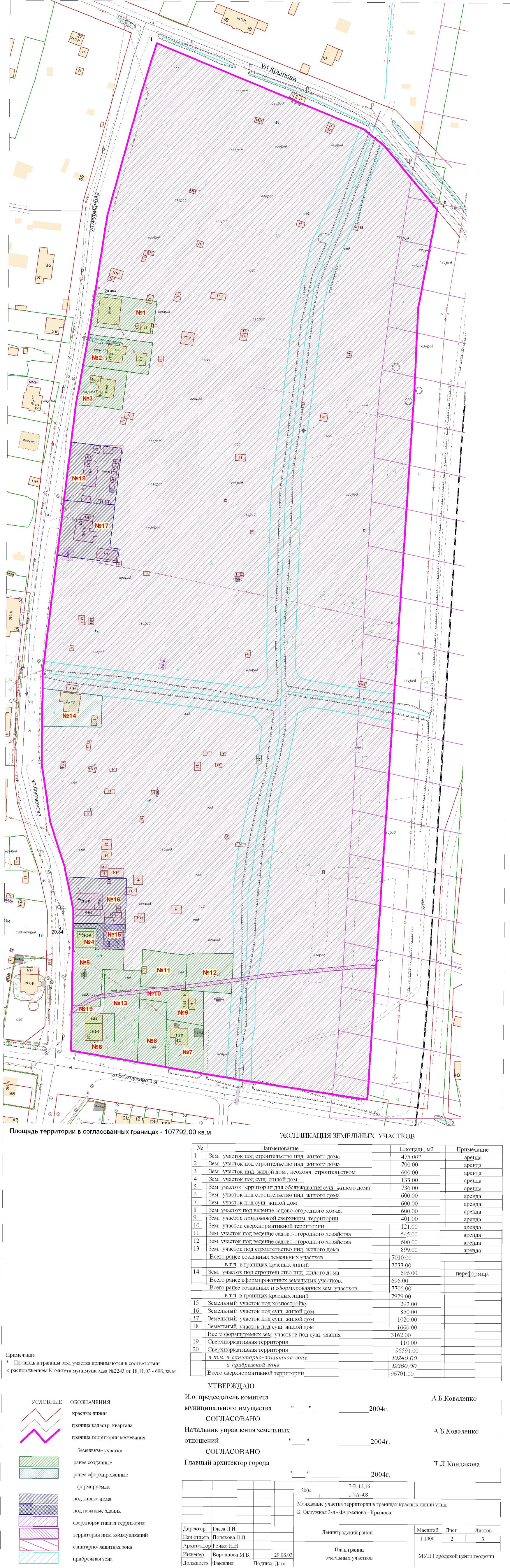| Материалы проекта: | Постановление № 2537 от 14.09.2004 План границ земельных участков План границ земельных участков под размещение объектов строительства Пояснительная записка |