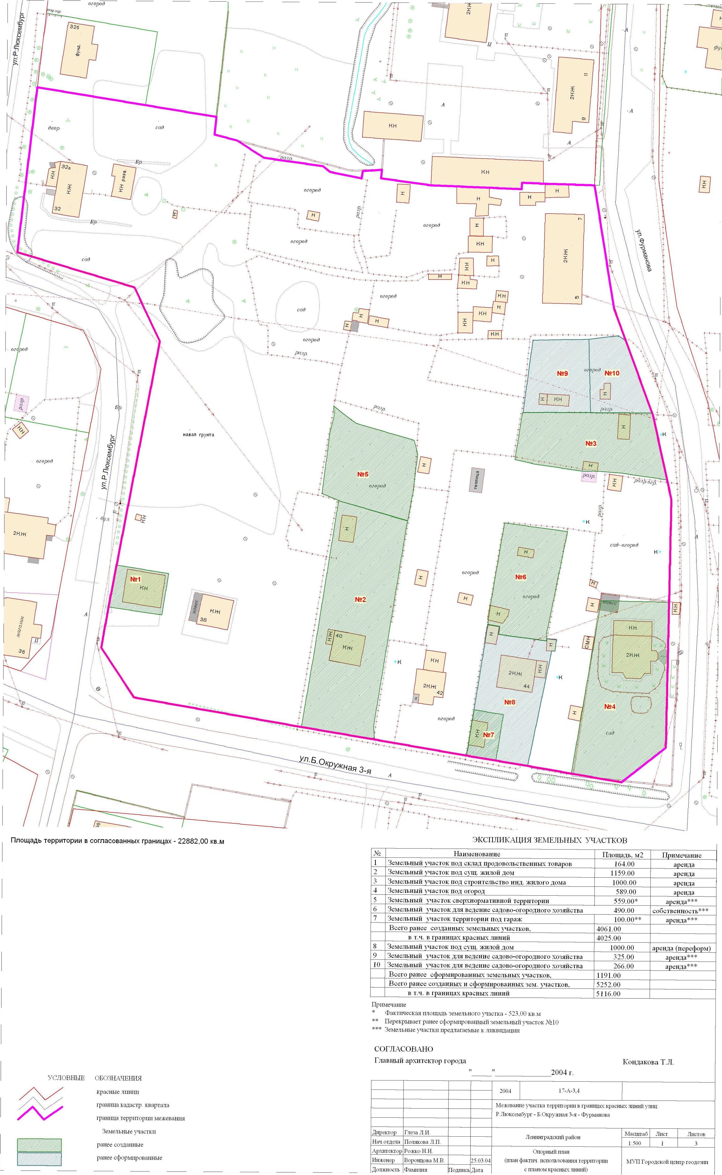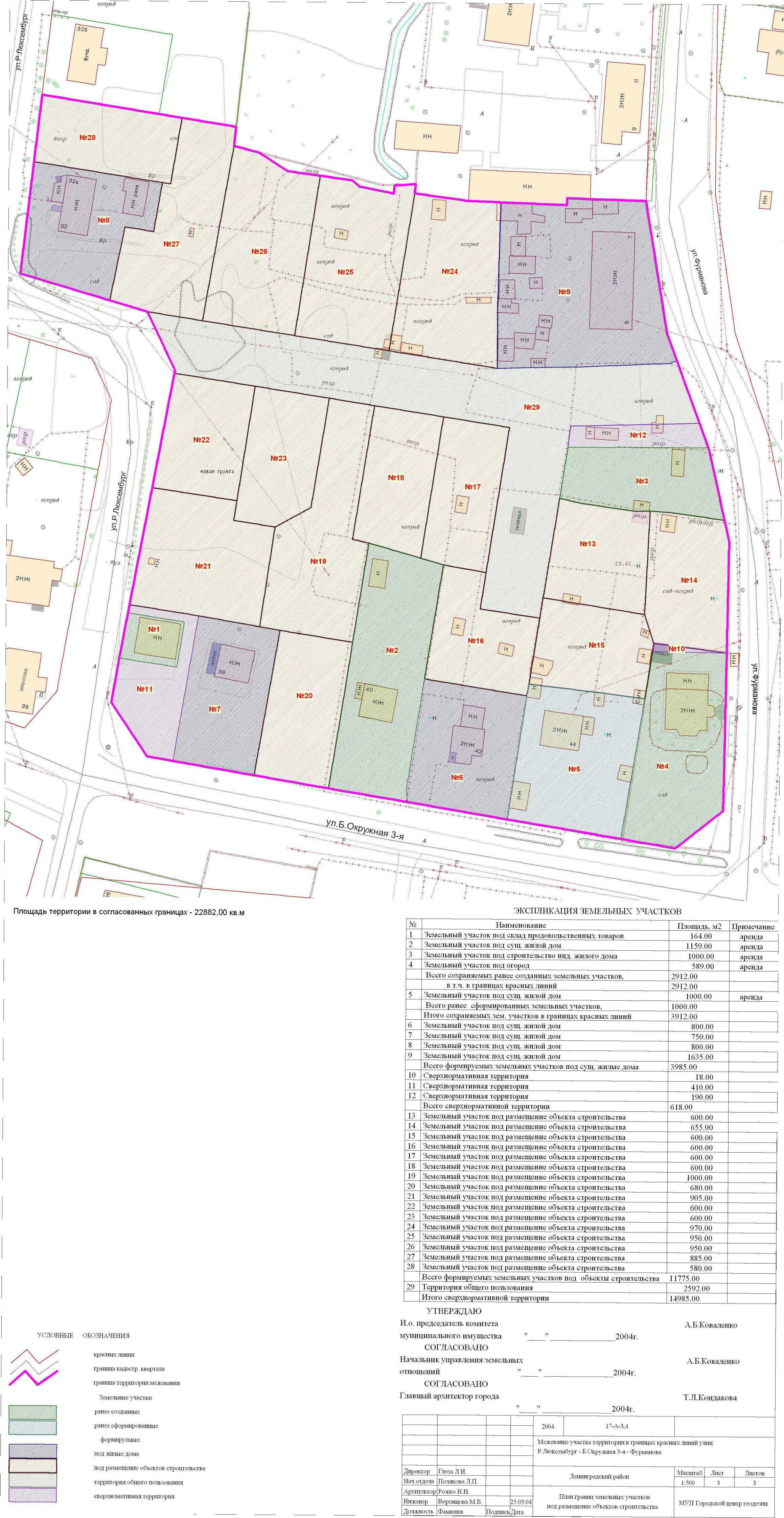 | Материалы проекта: | Постановление № 1388 от 04.06.2004 Опорный план План границ земельных участков План границ земельных участков под размещение объектов строительства Данные по нормативным и проектным площадям земельных участков Пояснительная записка Данные ГП |