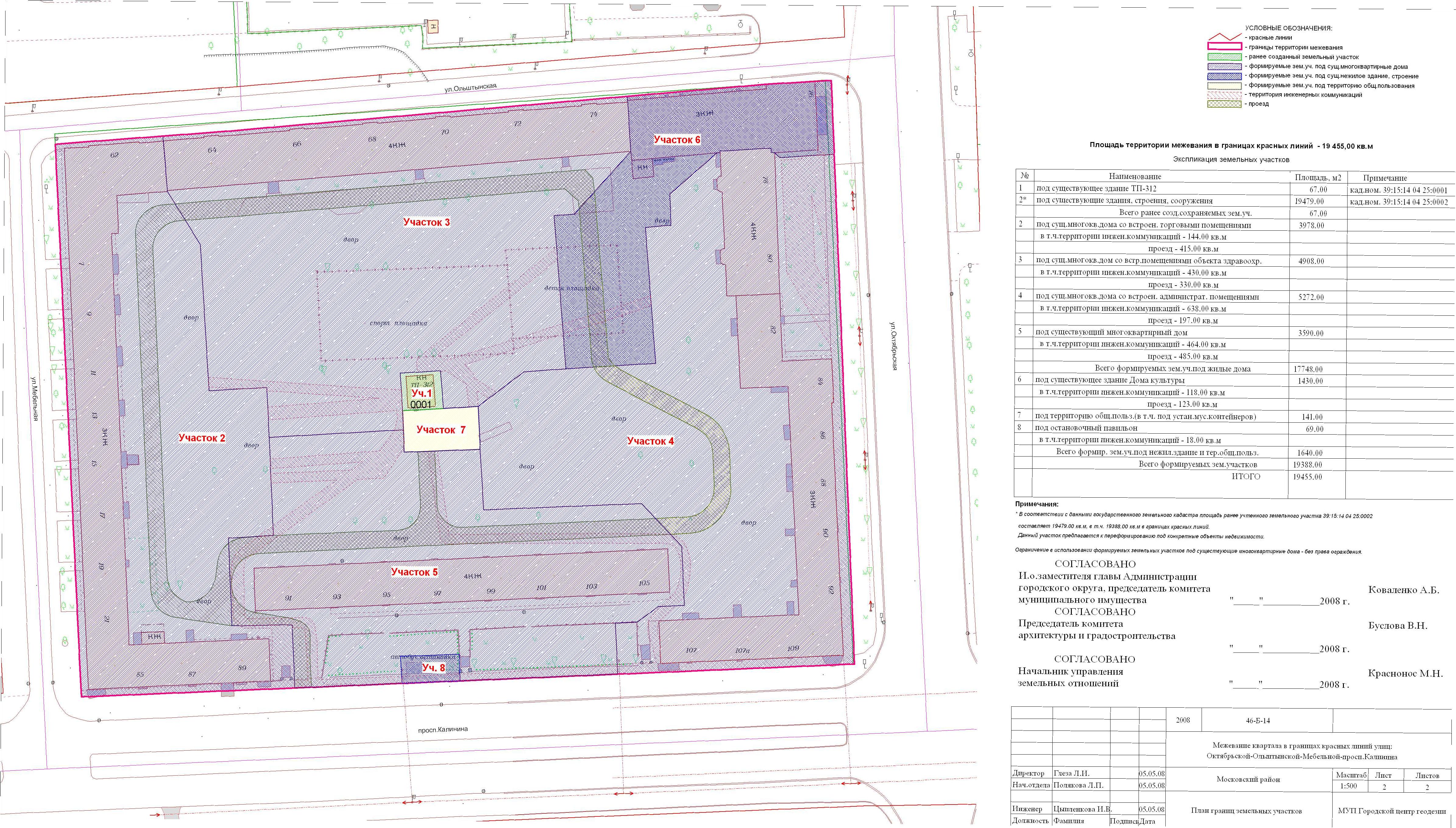 | Материалы проекта: | Постановление № 1496 от 19.09.2008 Опорный план План границ земельных участков Данные по нормативным и проектным площадям земельных участков Данные по существующему жилому фонду и населению Пояснительная записка Технико-экономические показатели |