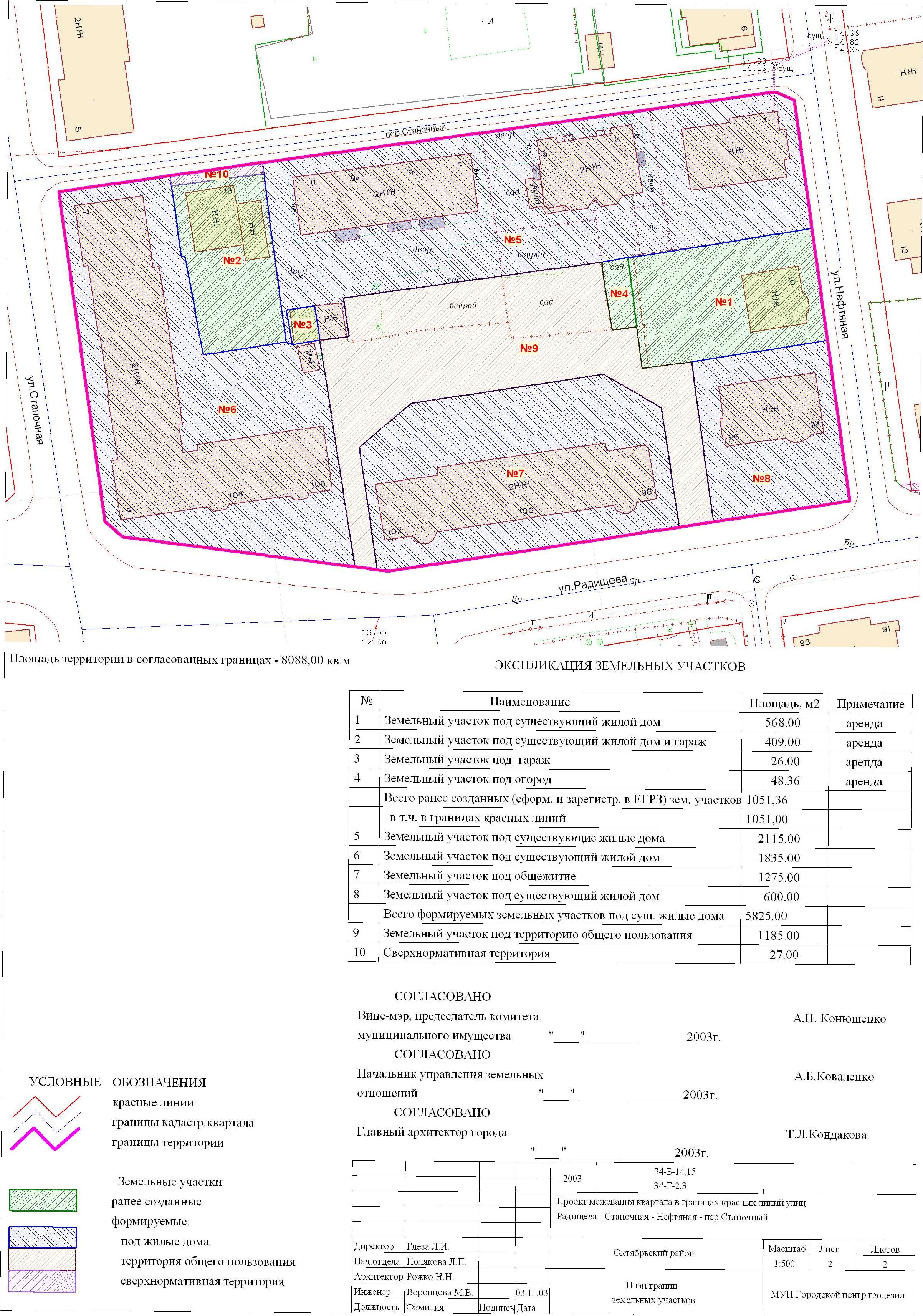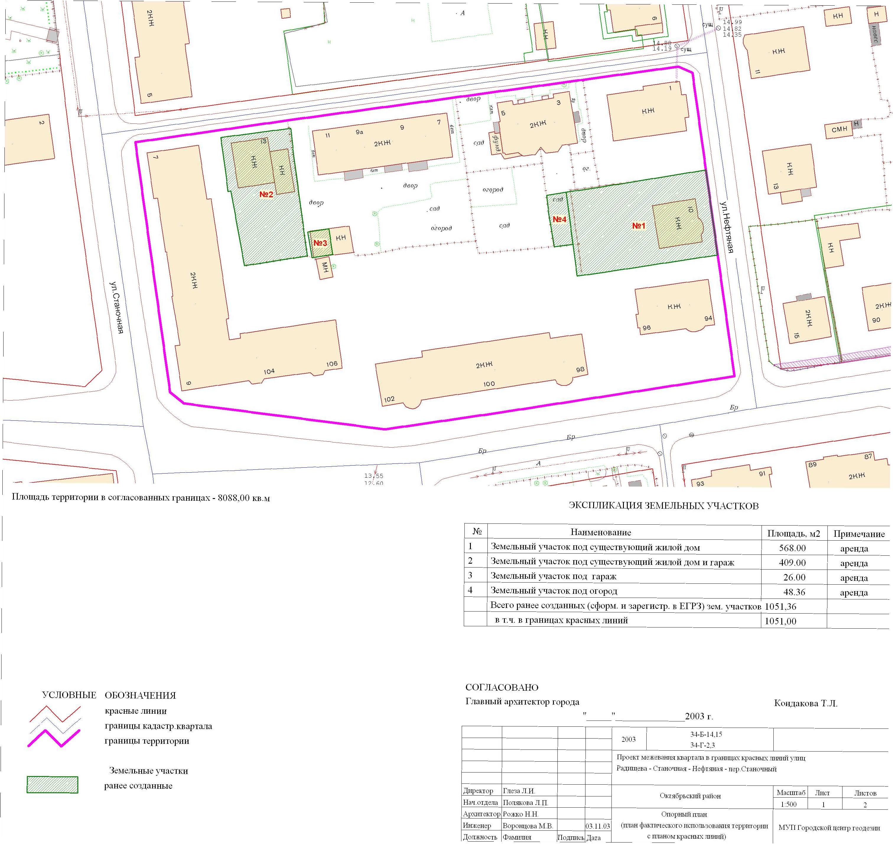 | Материалы проекта: | Постановление № 106 от 20.01.2005 Опорный план План границ земельных участков Данные ГП Данные по нормативным и проектным площадям земельных участков Пояснительная записка |