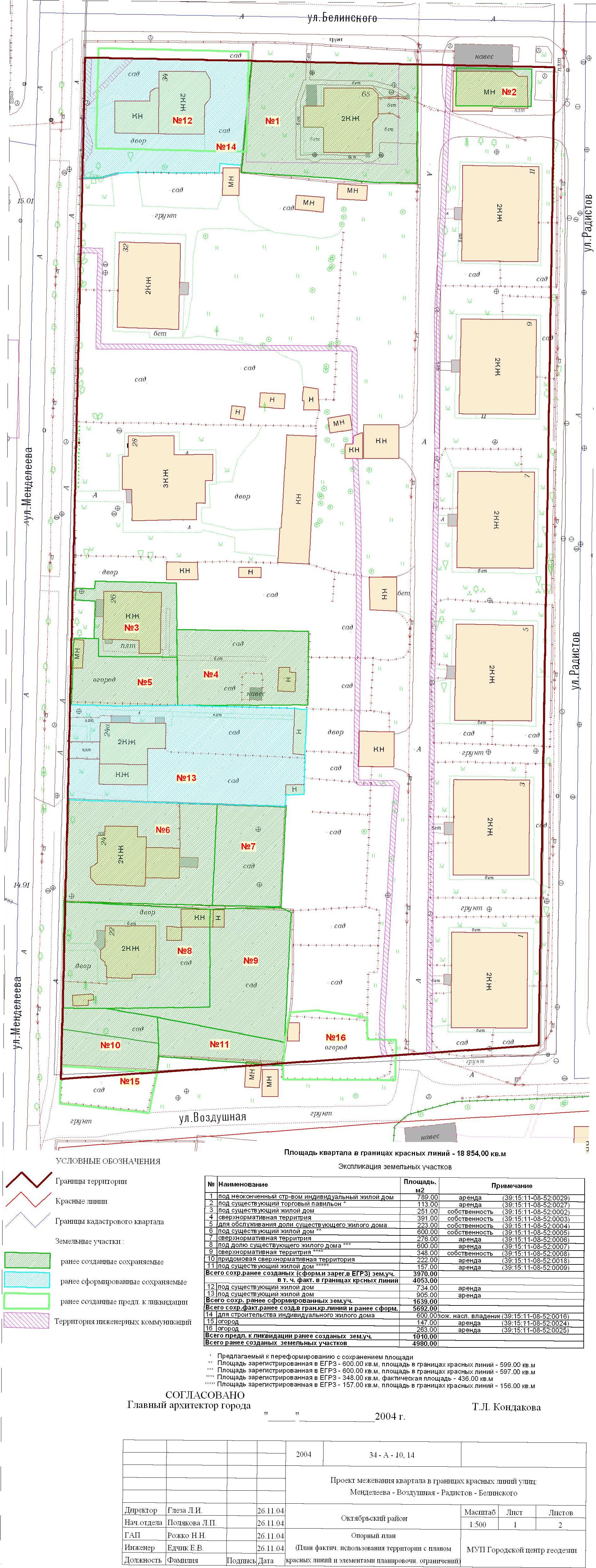 | Материалы проекта: | Постановление № 255 от 02.02.2005 Опорный план План границ земельных участков Данные ГП Данные по нормативным и проектным площадям земельных участков Данные по существующему жилому фонду и населению Пояснительная записка Нормативное благоустройство |