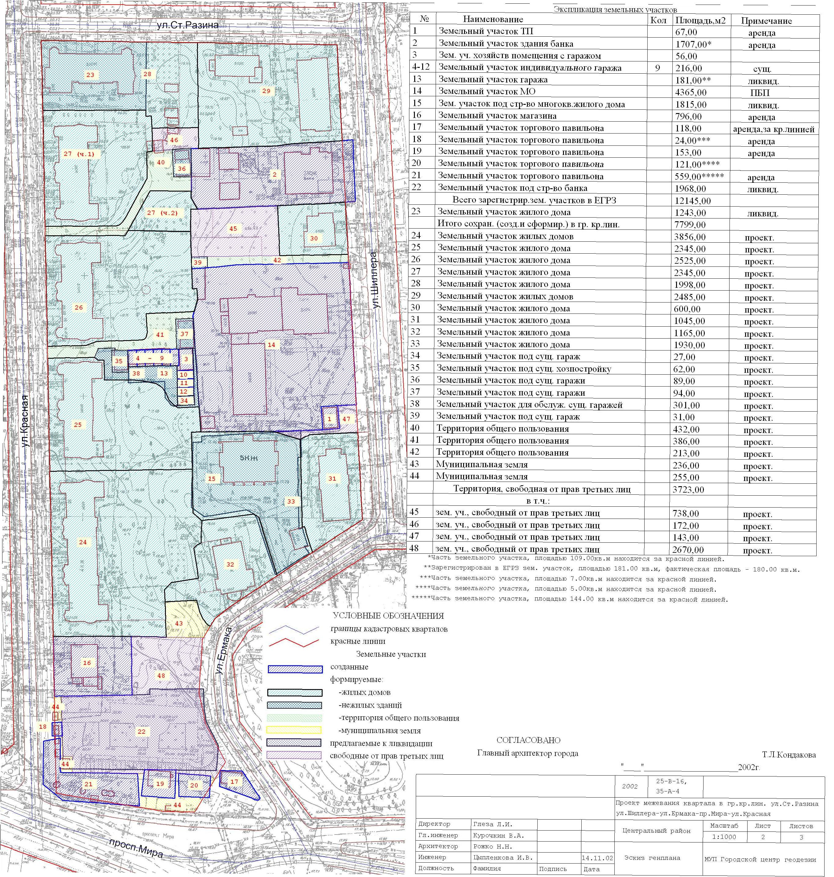 | Материалы проекта: | Постановление № 686 от 02.04.2003 Опорный план План границ земельных участков Эскиз генерального плана Данные ГП Данные по нормативным и проектным площадям земельных участков Данные по существующему жилому фонду и населению Пояснительная записка |