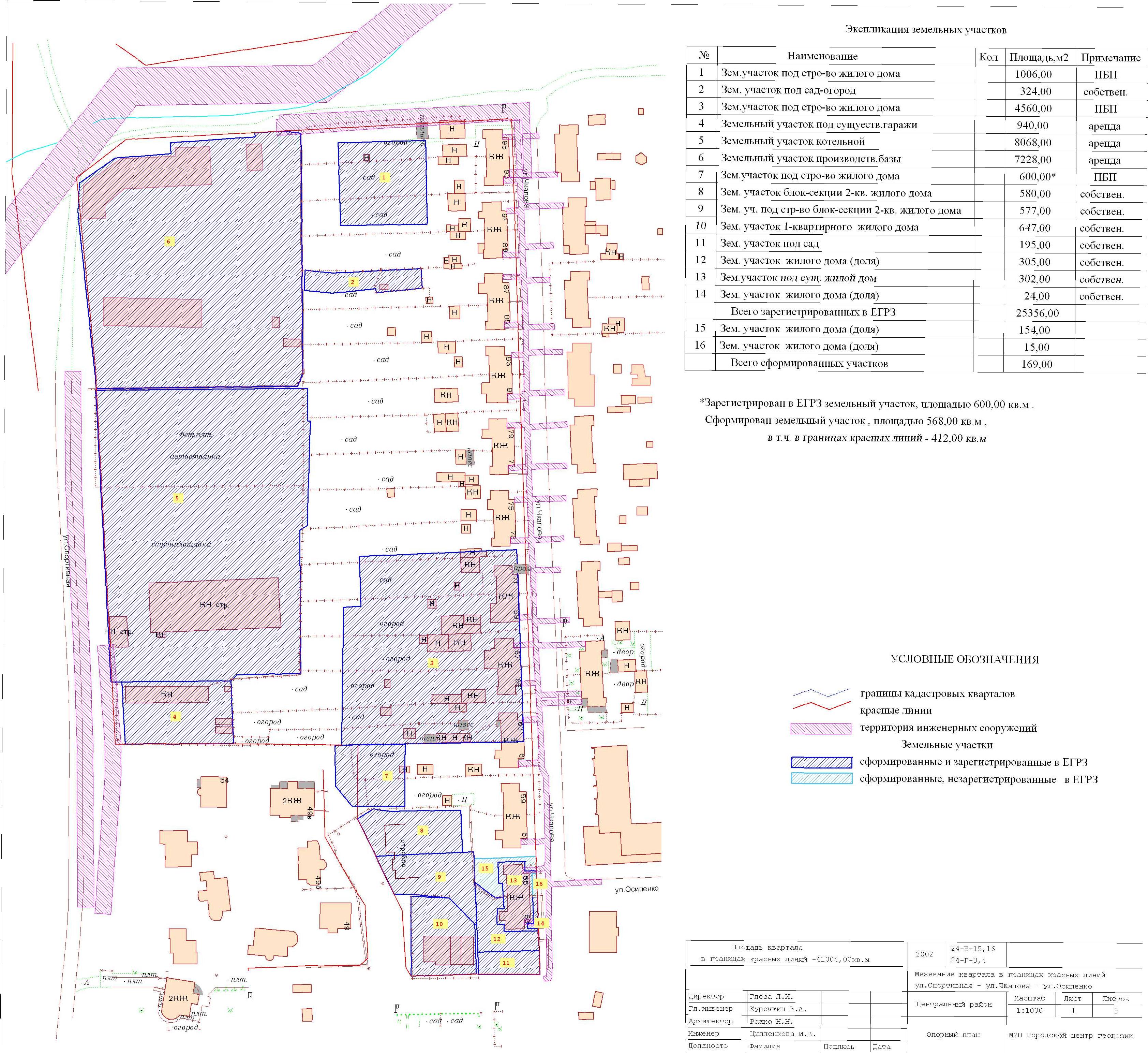 | Материалы проекта: | Постановление № 1923 от 20.07.2004 Опорный план Эскиз генерального плана Данные ГП Данные по нормативным и проектным площадям земельных участков Данные по существующему жилому фонду и населению Пояснительная записка |