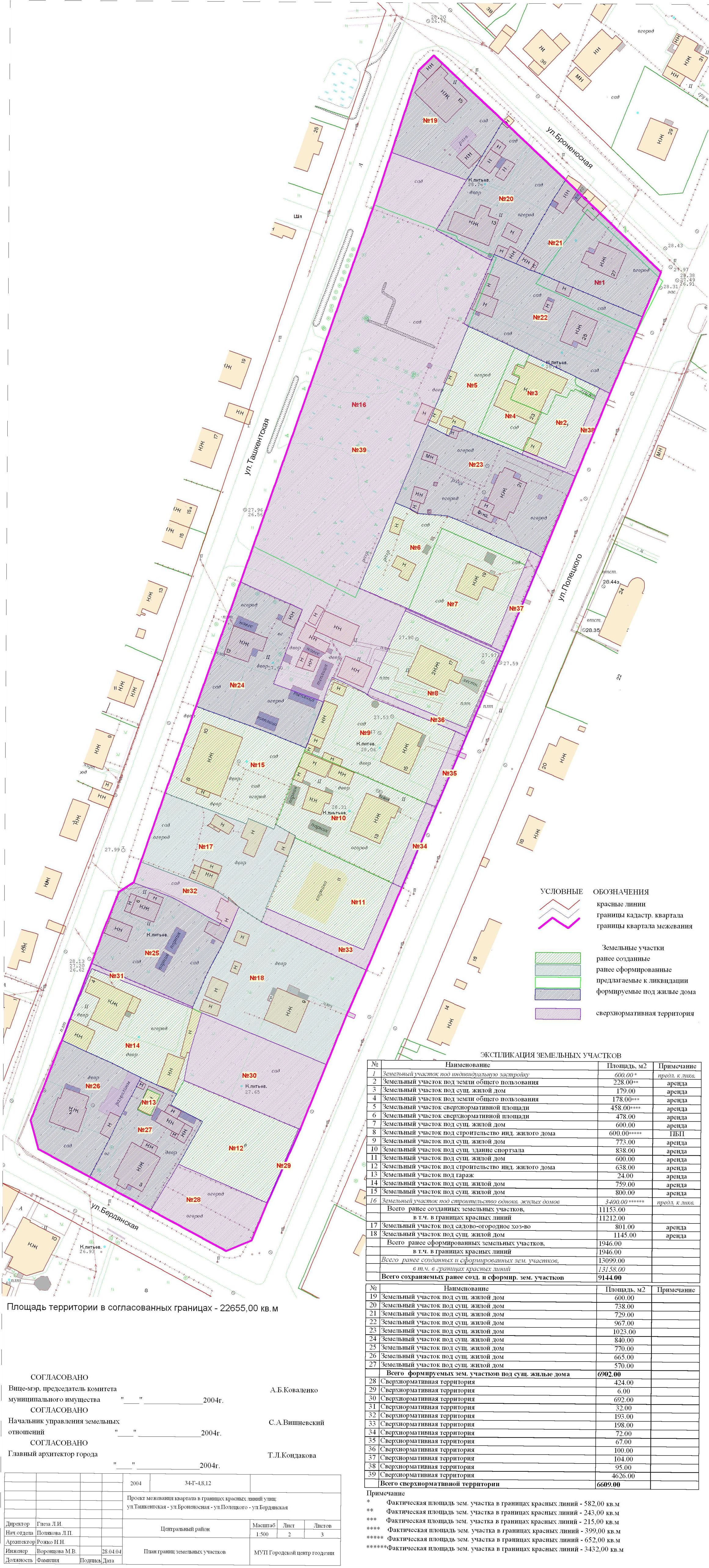 | Материалы проекта: | Опорный план План границ земельных участков Данные ГП Данные по нормативным и проектным площадям земельных участков Данные по существующему жилому фонду и населению Пояснительная записка |