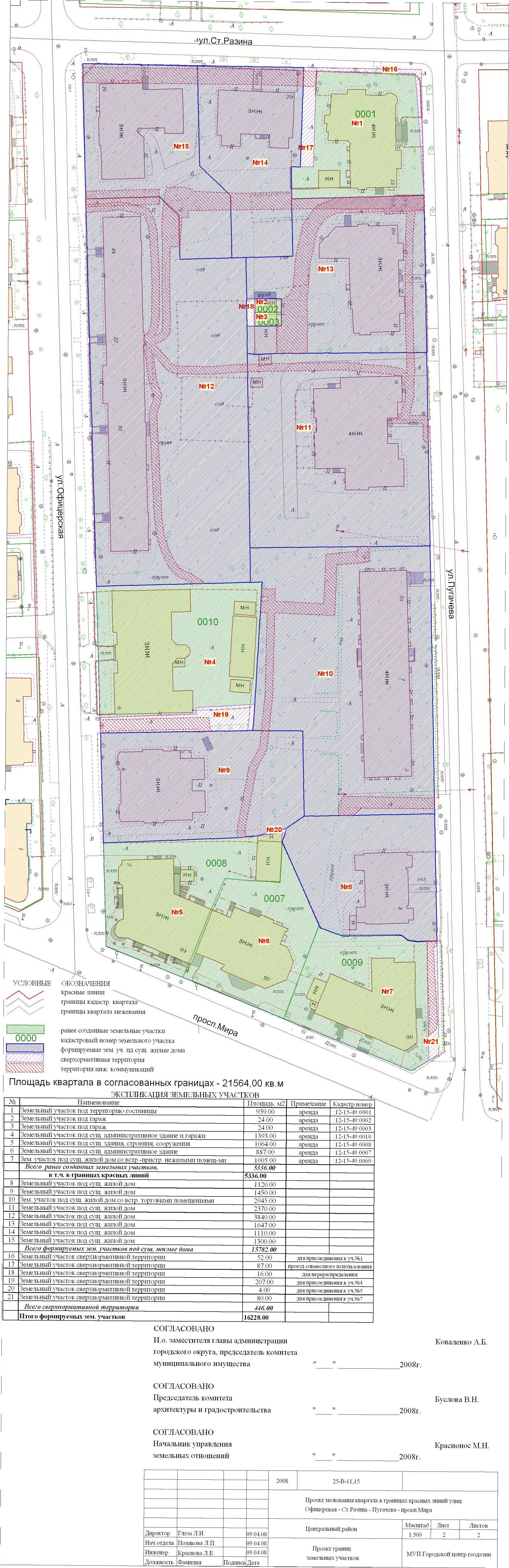 | Материалы проекта: | Постановление № 1145 от 10.07.2008 Опорный план План границ земельных участков Данные ГП Данные по нормативным и проектным площадям земельных участков Пояснительная записка |