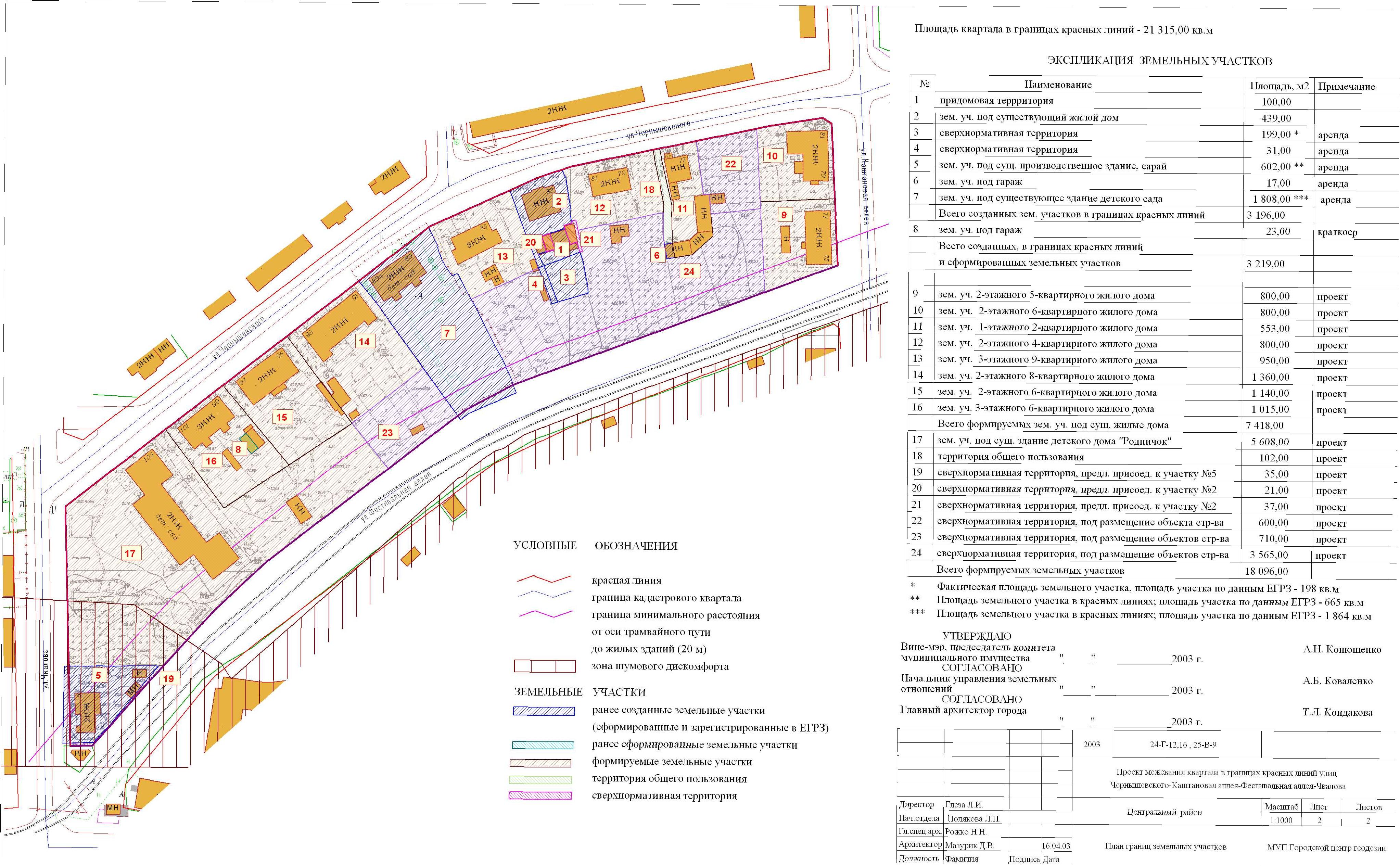 | Материалы проекта: | Постановление № 3142 от 30.12.2003 План границ земельных участков Пояснительная записка |