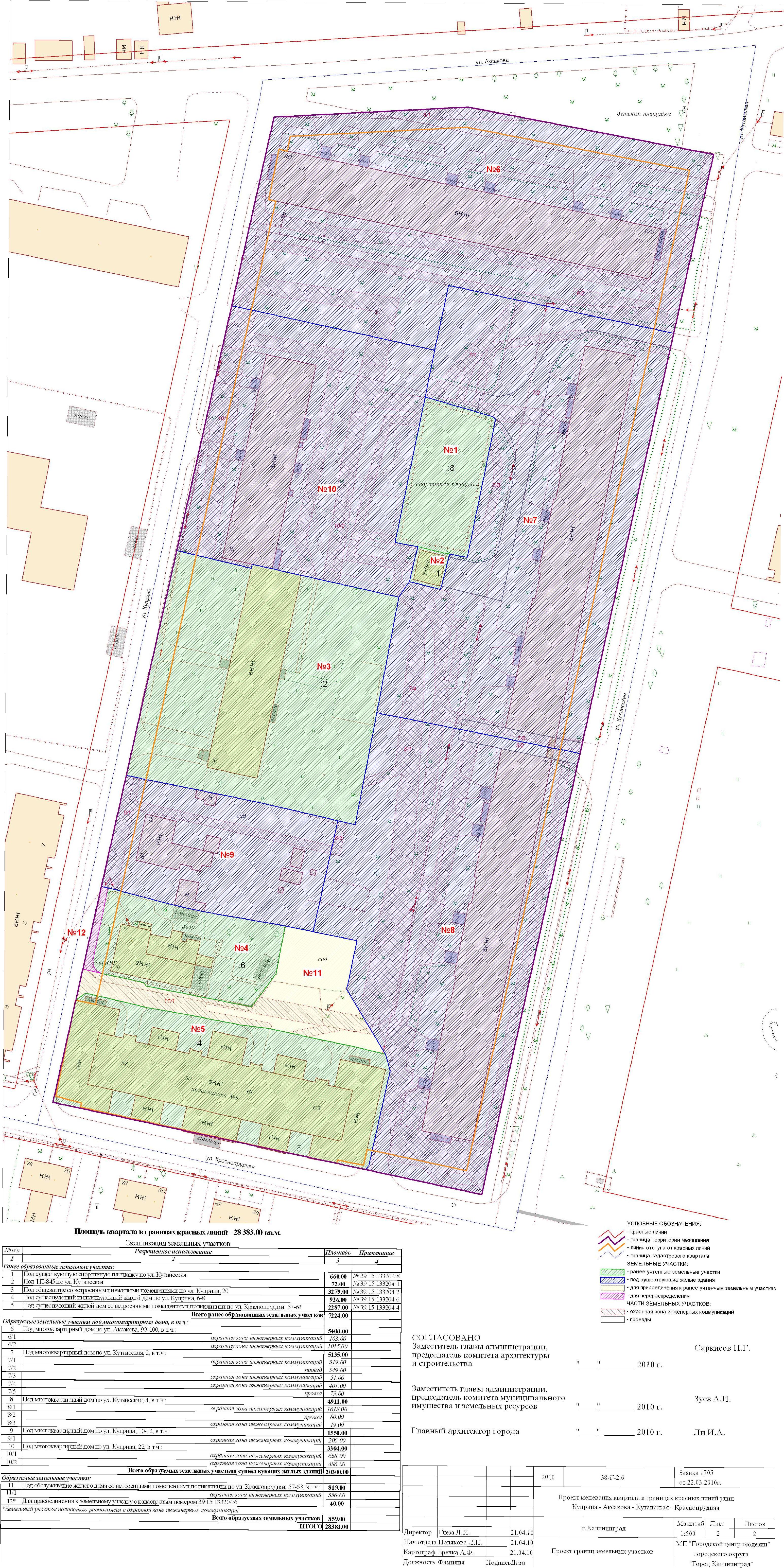 | Материалы проекта: | Постановление № 1410 от 17.08.2010 Опорный план План границ земельных участков Пояснительная записка Данные по нормативным и проектным площадям земельных участков Схема существующего положения проектируемой территории в структуре города Данные ГП Схема границ территорий объектов культурного наследия Схема функционального зонирования и градостроительного регулирования Схема границ зон с особыми условиями использования территории |