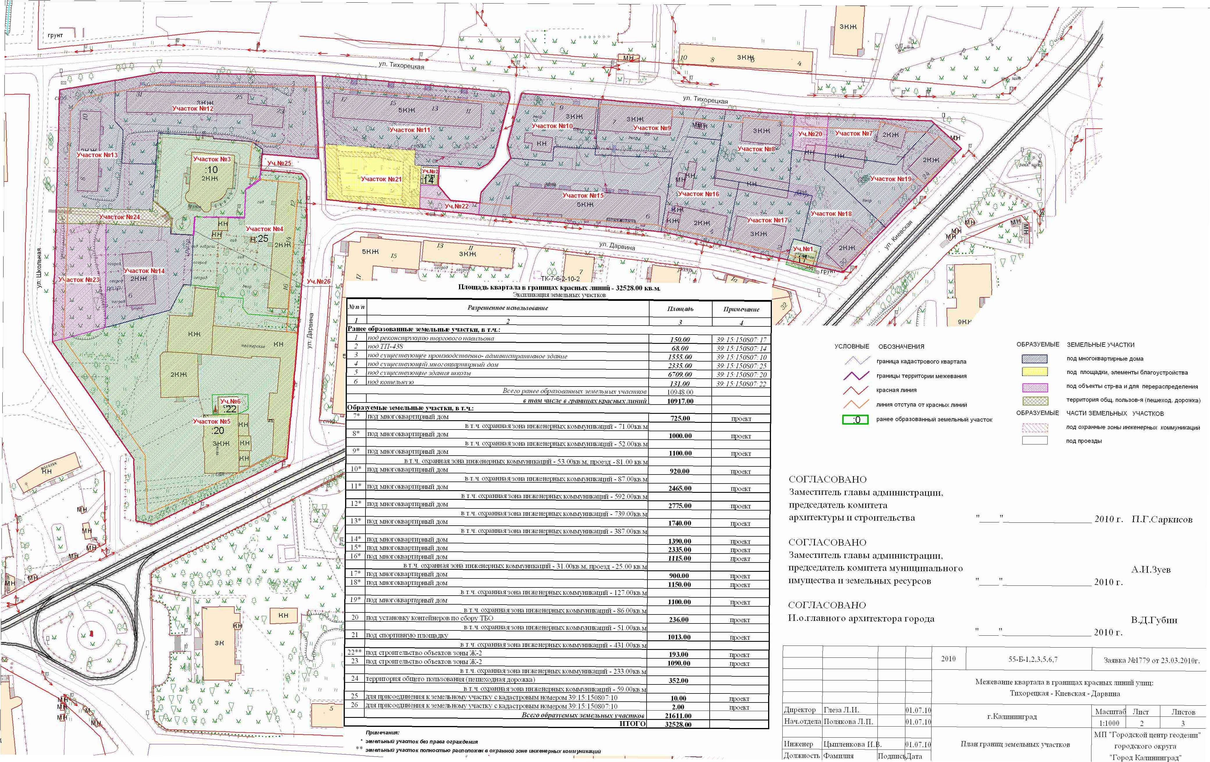 | Материалы проекта: | Постановление № 1902 от 10.11.2010 Опорный план План границ земельных участков Разбивочный чертёж красных линий Пояснительная записка Данные по нормативным и проектным площадям земельных участков |