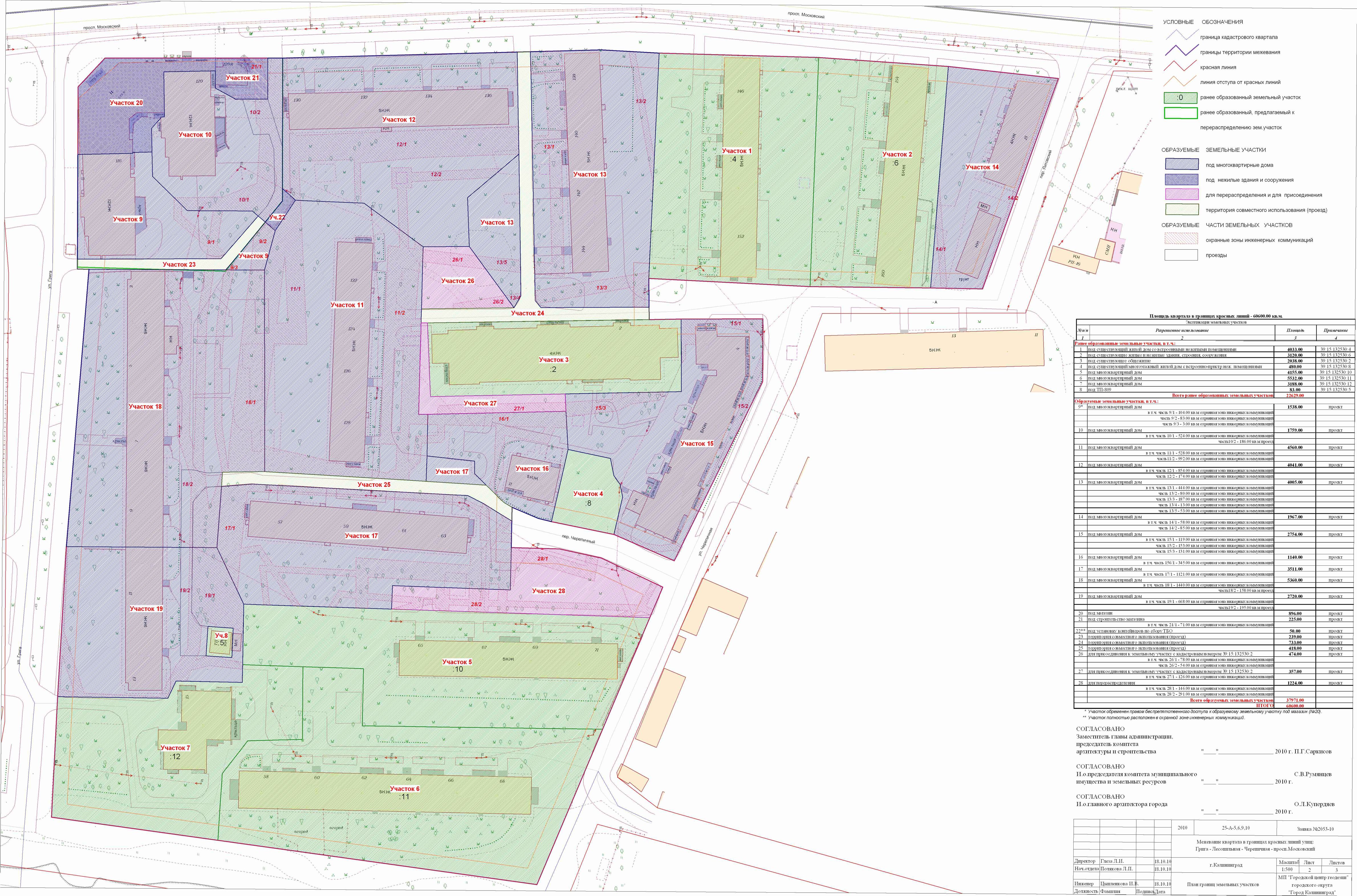 | Материалы проекта: | Постановление № 284 от 03.03.2011 Опорный план План границ земельных участков Разбивочный чертёж красных линий Пояснительная записка Данные по нормативным и проектным площадям земельных участков |