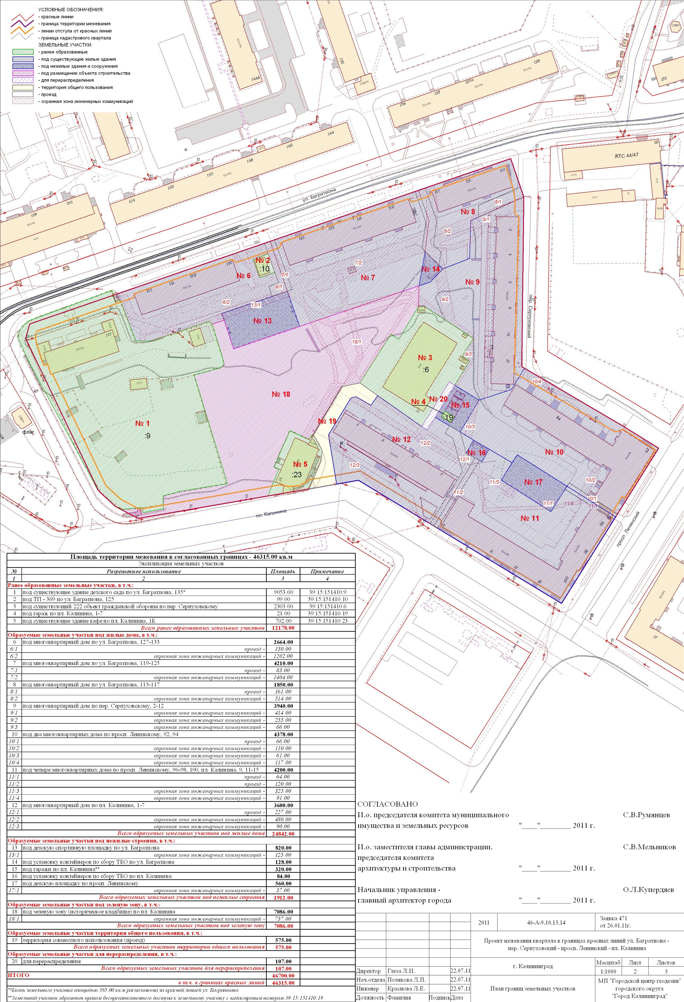 | Материалы проекта: | Постановление № 127 от 01.02.2012 Опорный план План границ земельных участков Разбивочный чертёж красных линий Пояснительная записка Данные по нормативным и проектным площадям земельных участков |