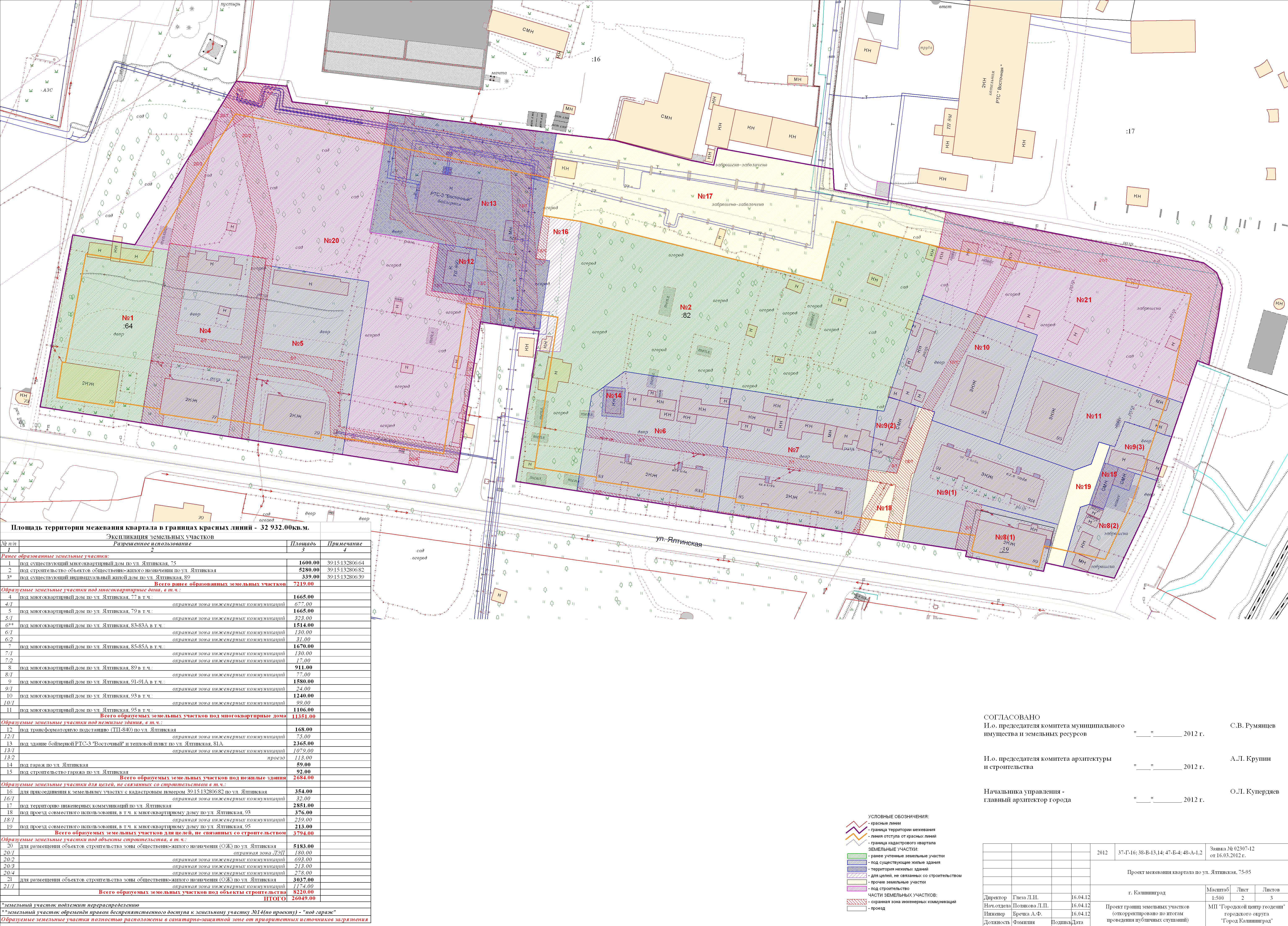 | Материалы проекта: | Постановление от 29.06.2012 № 1160 Опорный план План границ земельных участков Разбивочный чертёж красных линий Пояснительная записка Данные по нормативным и проектным площадям земельных участков |
