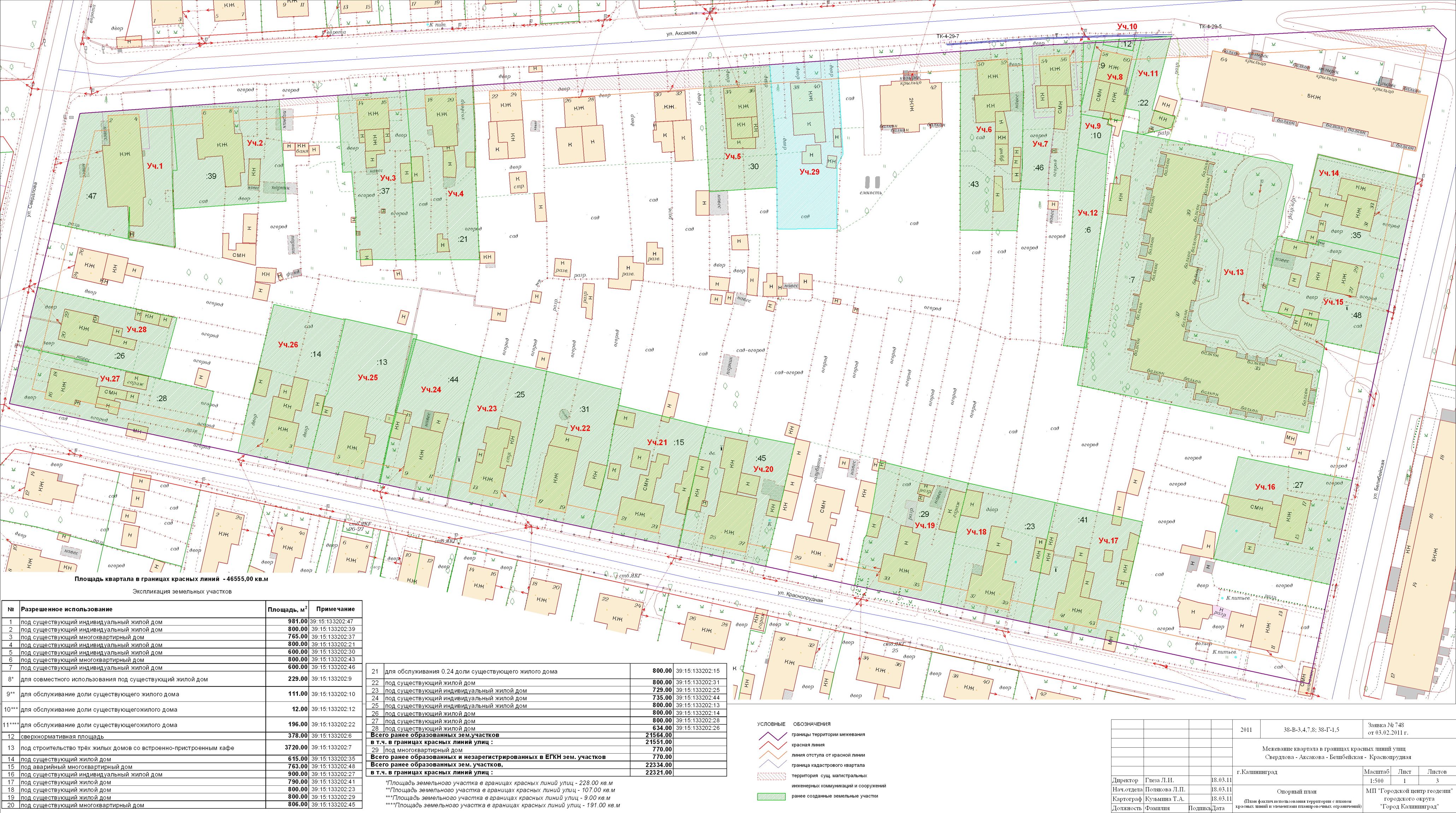 | Материалы проекта: | Постановление № 1854 от 02.11.2011 Опорный план План границ земельных участков Разбивочный чертёж красных линий Пояснительная записка Данные по нормативным и проектным площадям земельных участков |