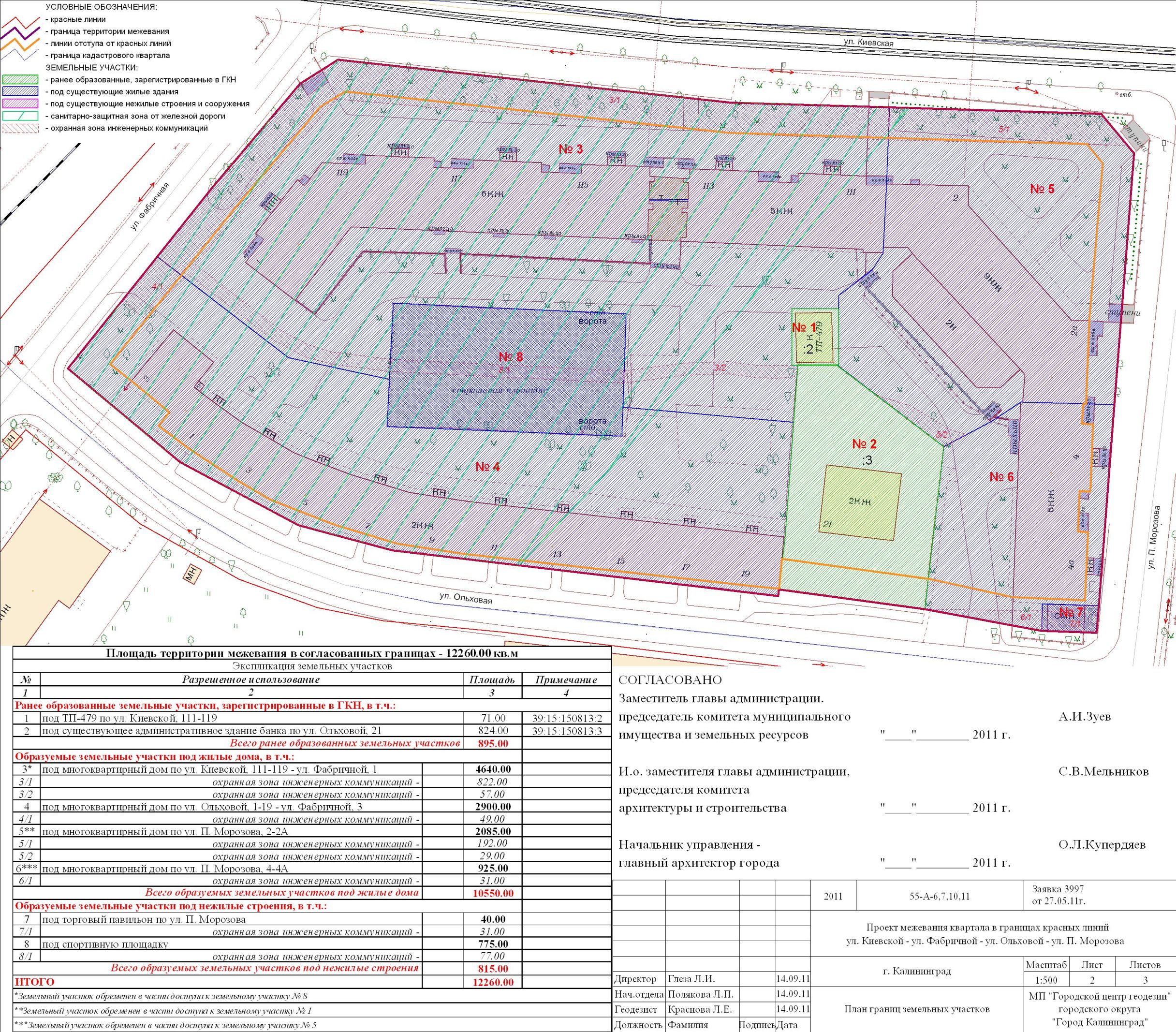 | Материалы проекта: | Постановление № 2310 от 23.12.2011 Опорный план План границ земельных участков Разбивочный чертёж красных линий Пояснительная записка Данные по нормативным и проектным площадям земельных участков |