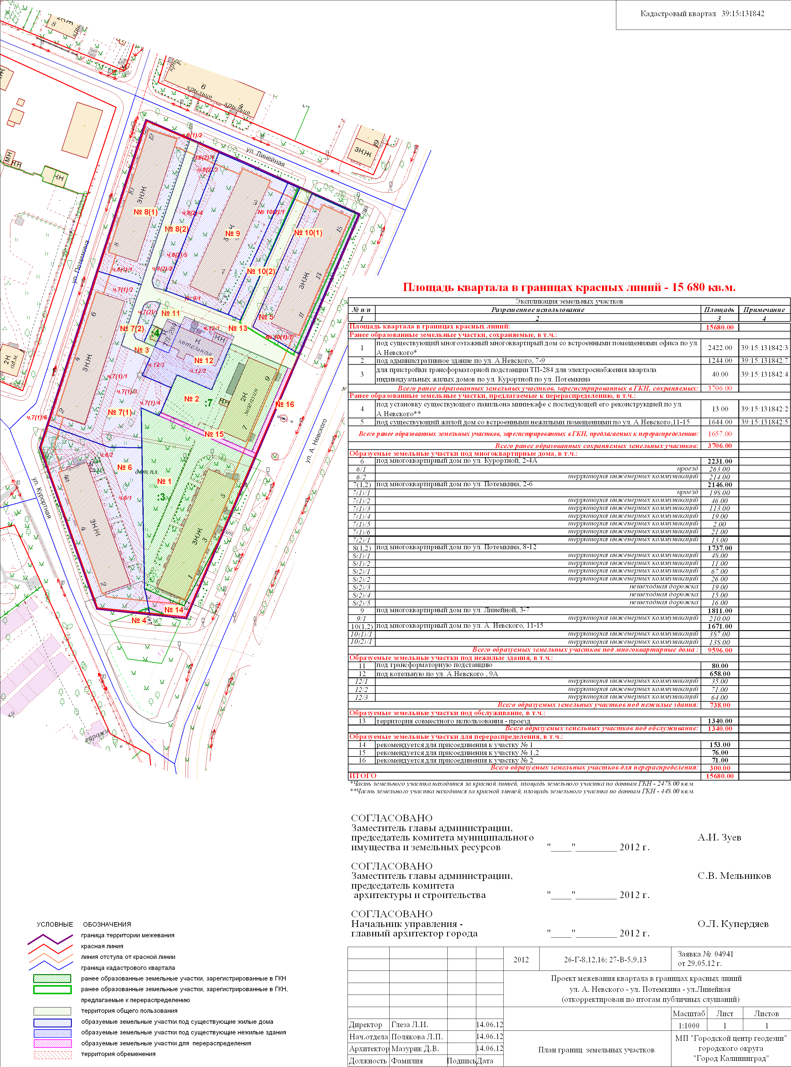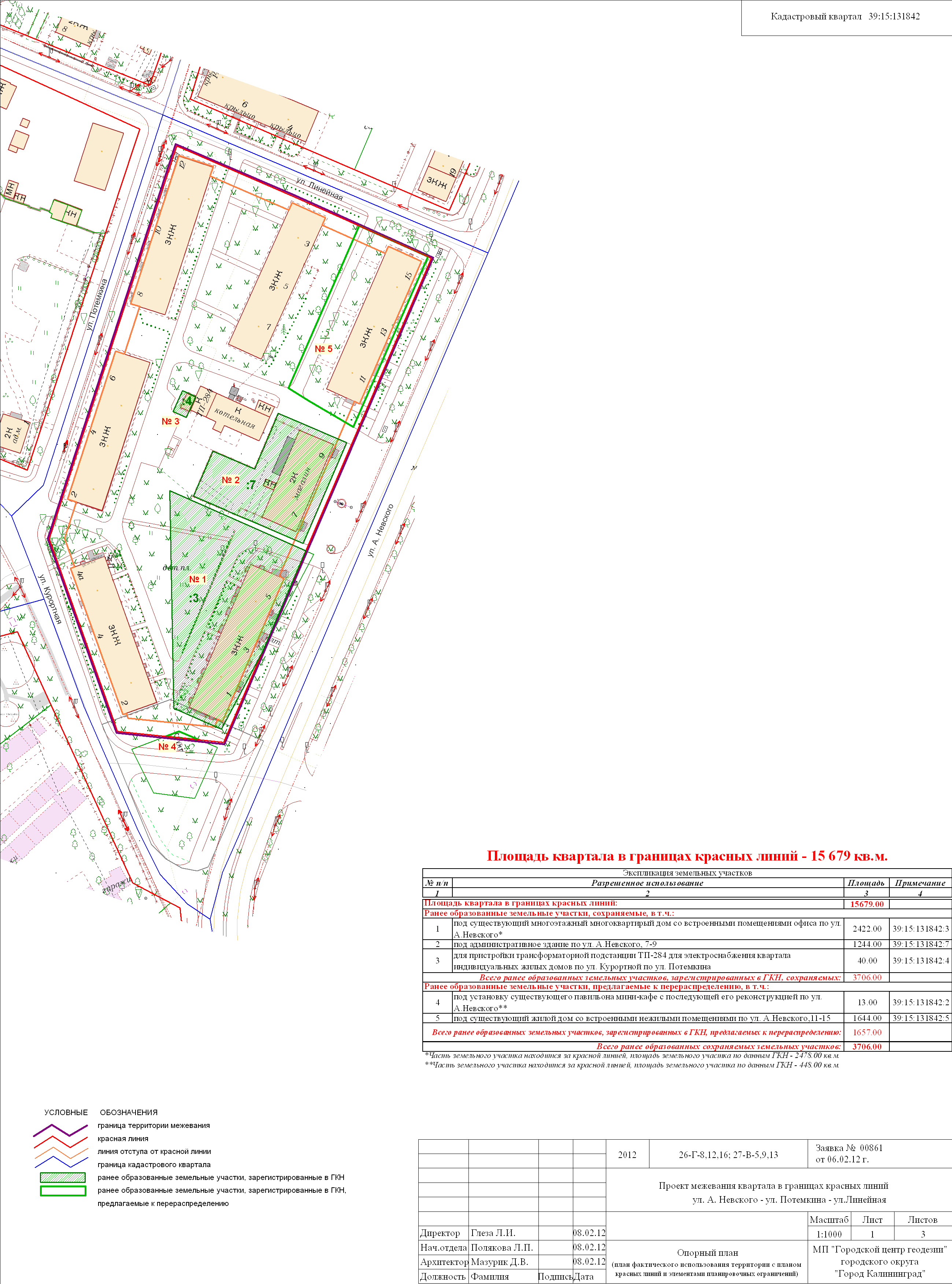 | Материалы проекта: | Постановление № 1490 от 03.08.2012 Опорный план Проект границ земельных участков План красных линий Данные по нормативным и проектным площадям земельных участков |