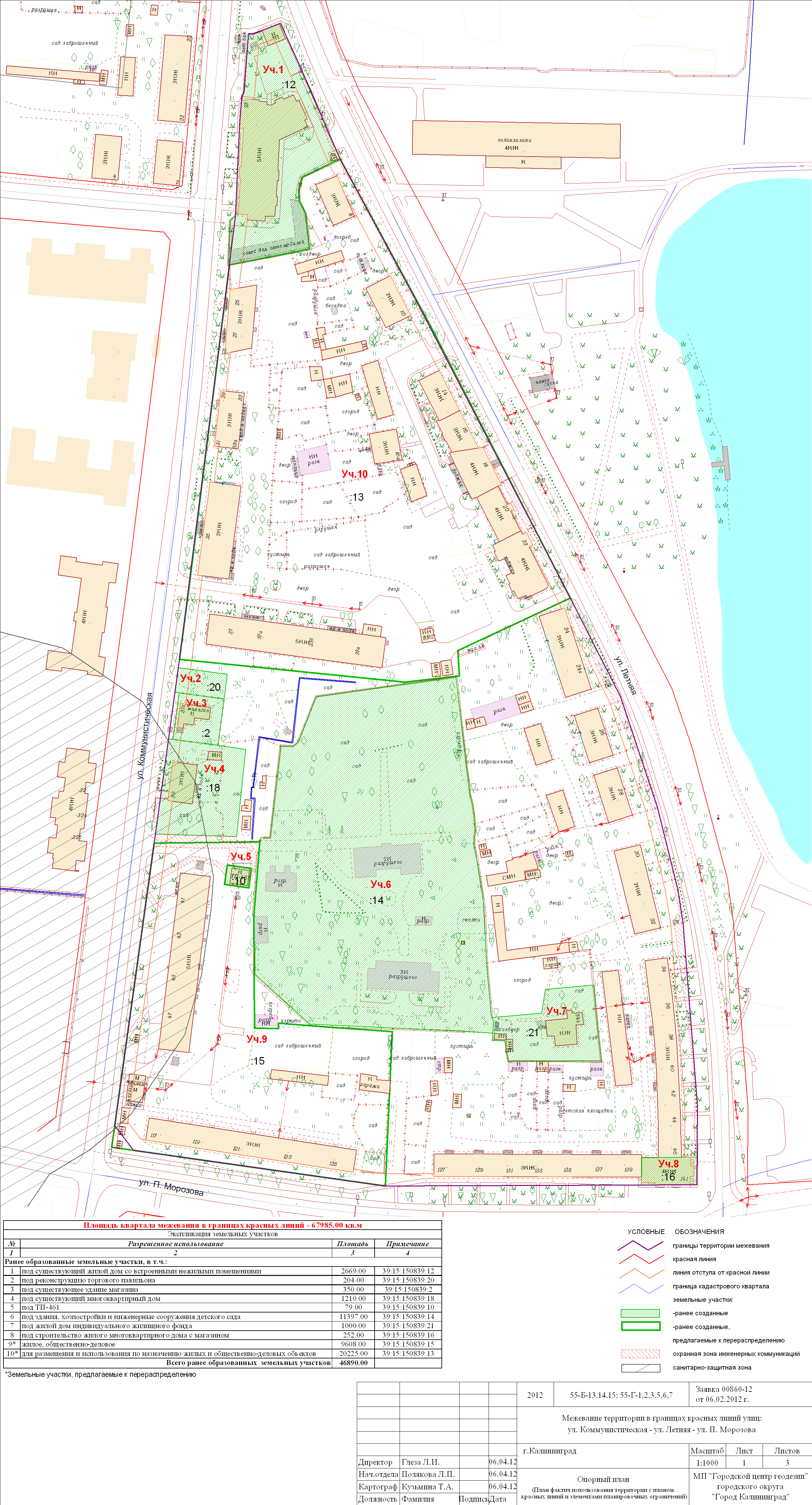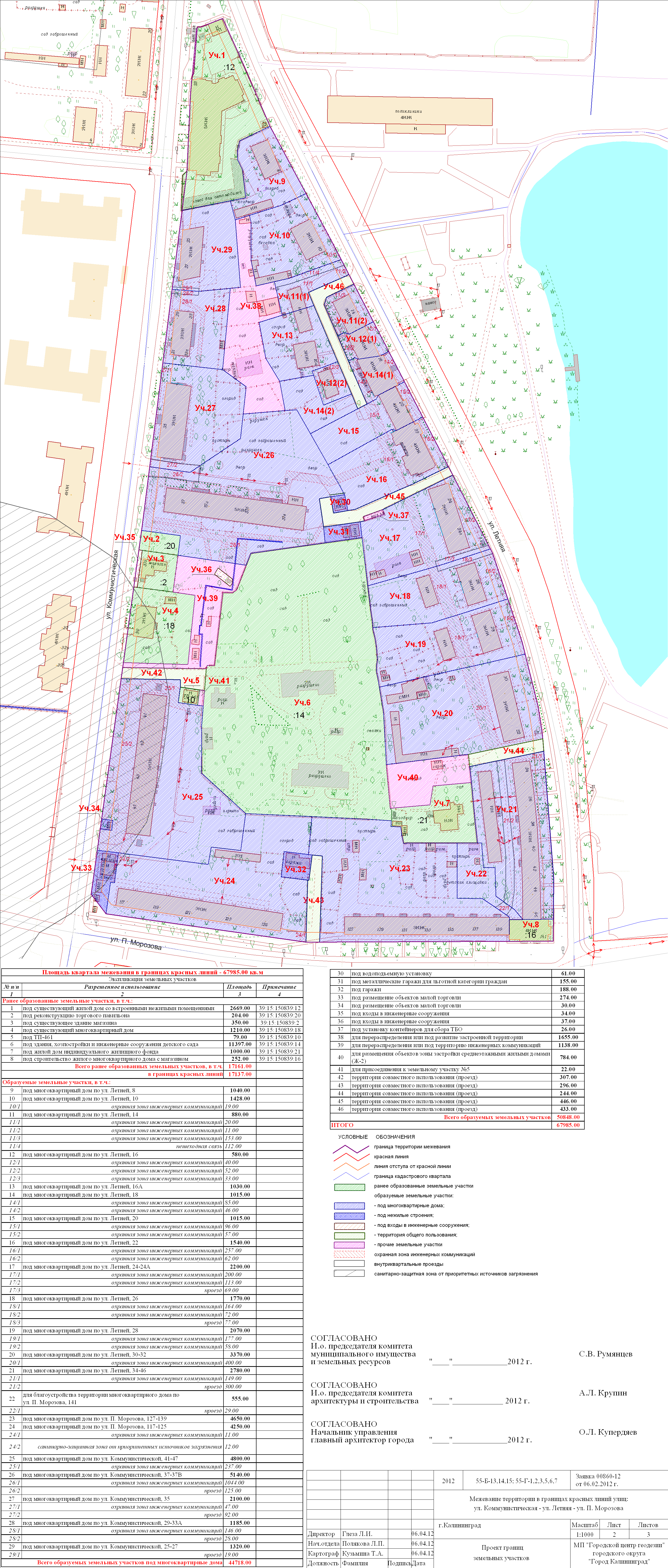 | Материалы проекта: | Постановление № 1384 от 25.07.2012 Опорный план Проект границ земельных участков План красных линий Данные по нормативным и проектным площадям земельных участков |