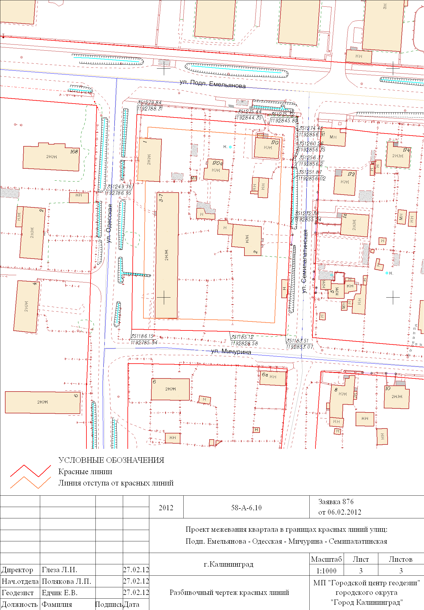 | Материалы проекта: | Постановление № 1213 от 10.07.2012 Опорный план Проект границ земельных участков План красных линий Данные по нормативным и проектным площадям земельных участков |