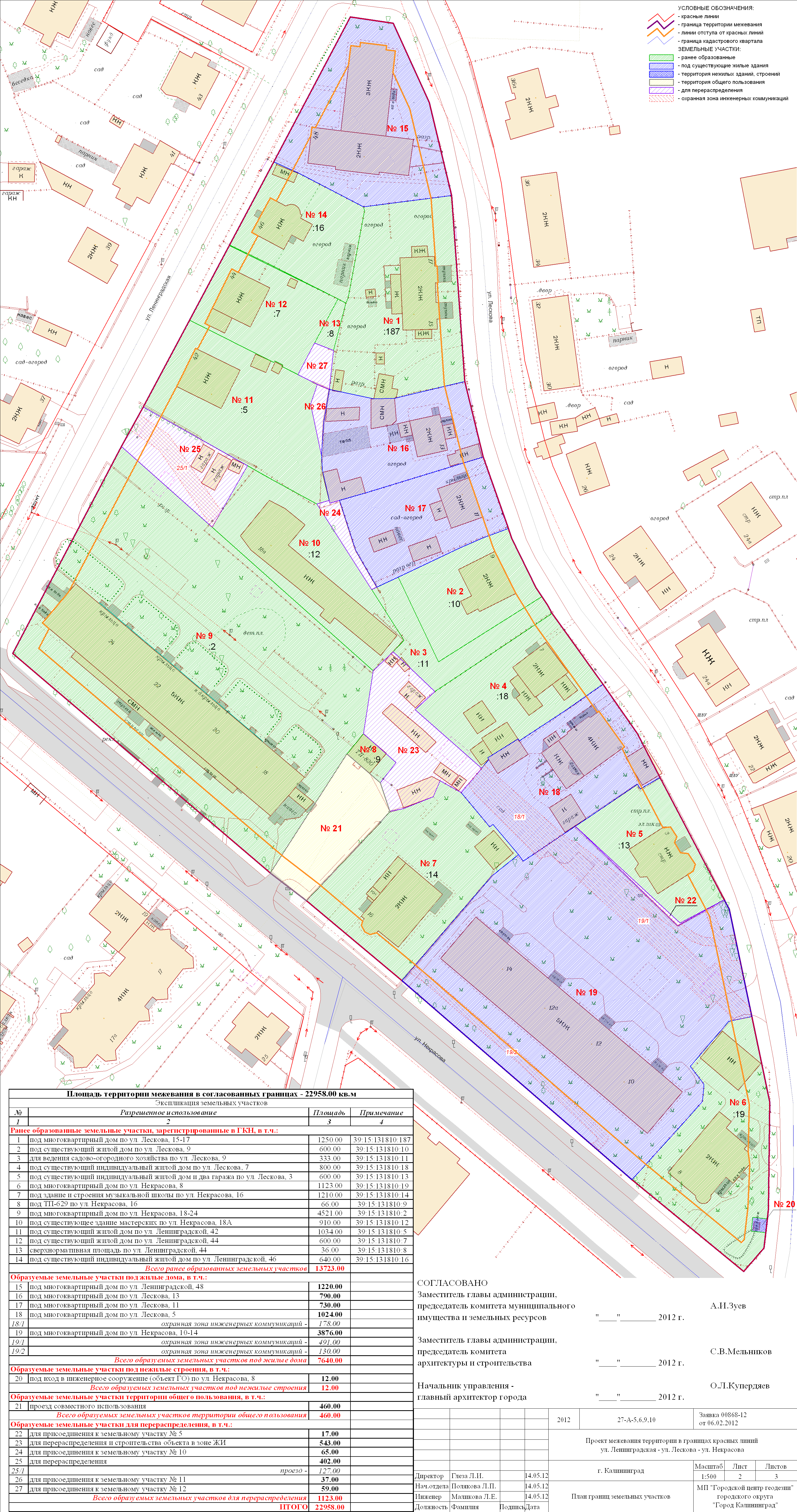 | Материалы проекта: | Постановление № 1916 от 12.10.2012 Данные по нормативным и проектным площадям земельных участков Опорный план План красных линий Проект границ земельных участков |
