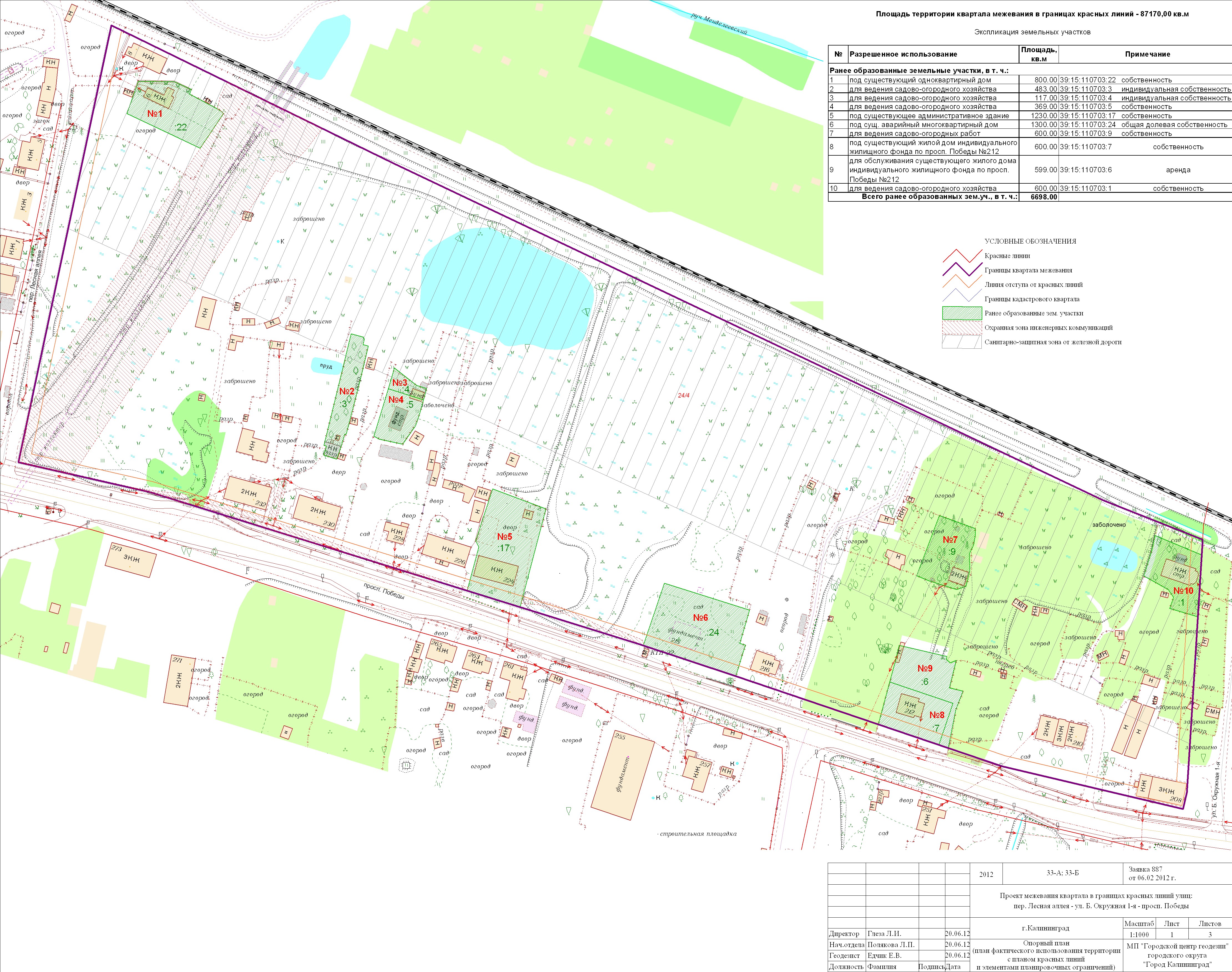 | Материалы проекта: | Постановление № 2376 от 17.12.2012 Проект границ План красных линий Пояснительная записка Данные по нормативным и проектным площадям земельных участков Опорный план |