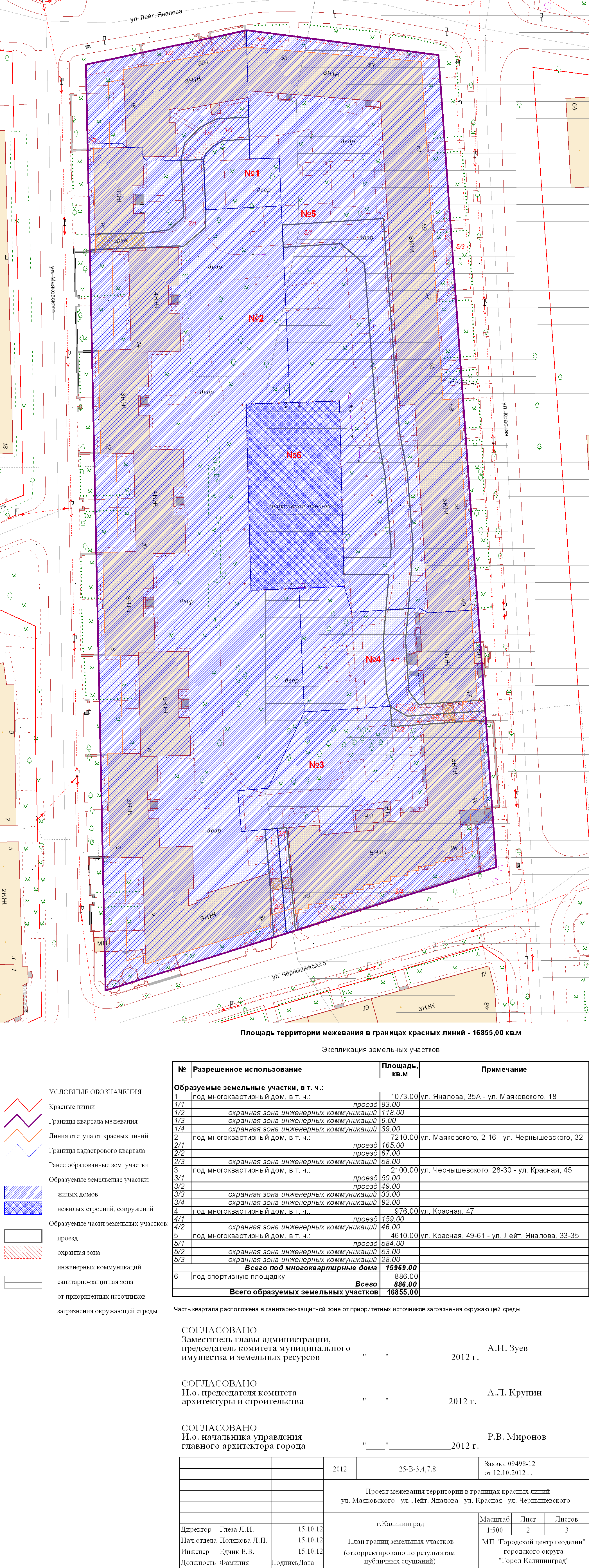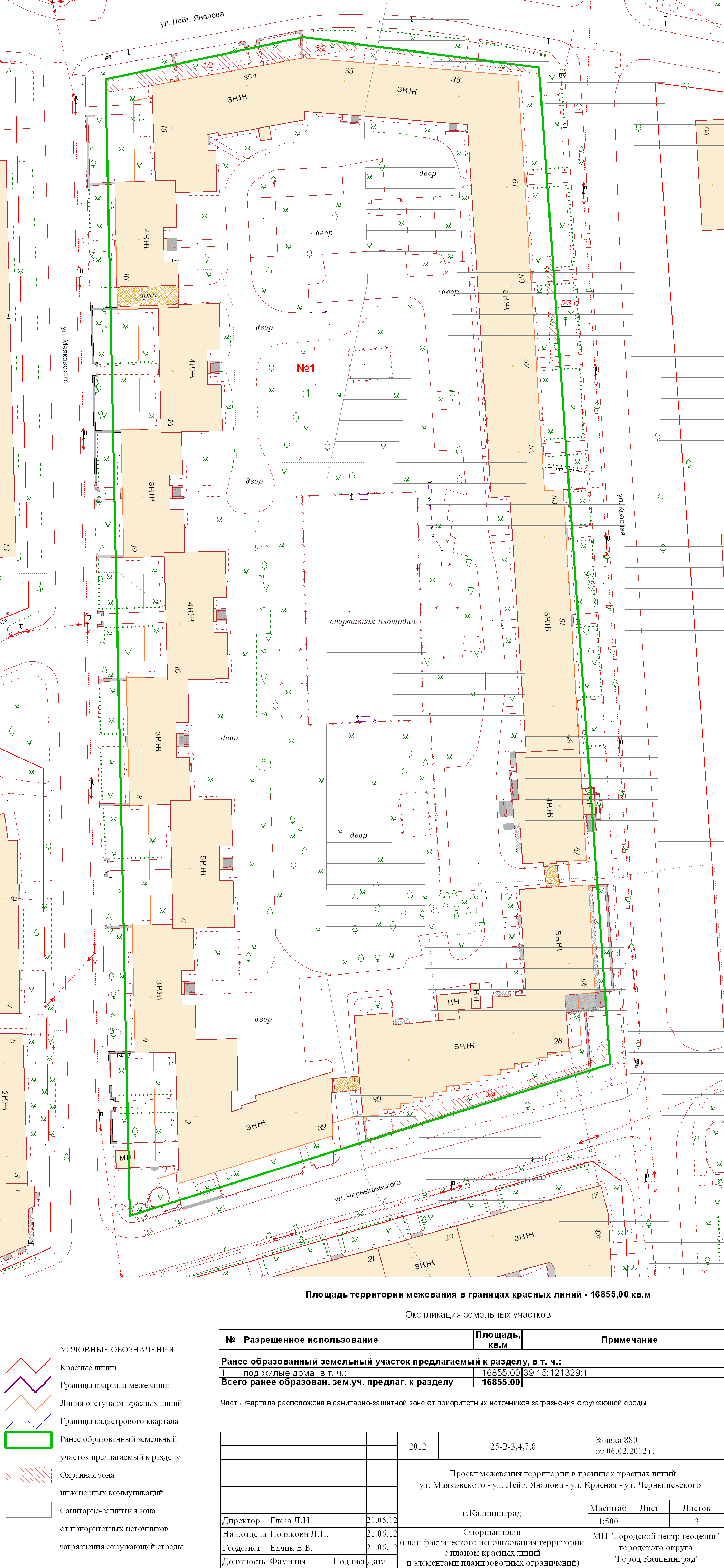 | Материалы проекта: | Постановление № 2143 от 22.11.2012 Данные по нормативным и проектным площадям земельных участков Опорный план Проект границ |