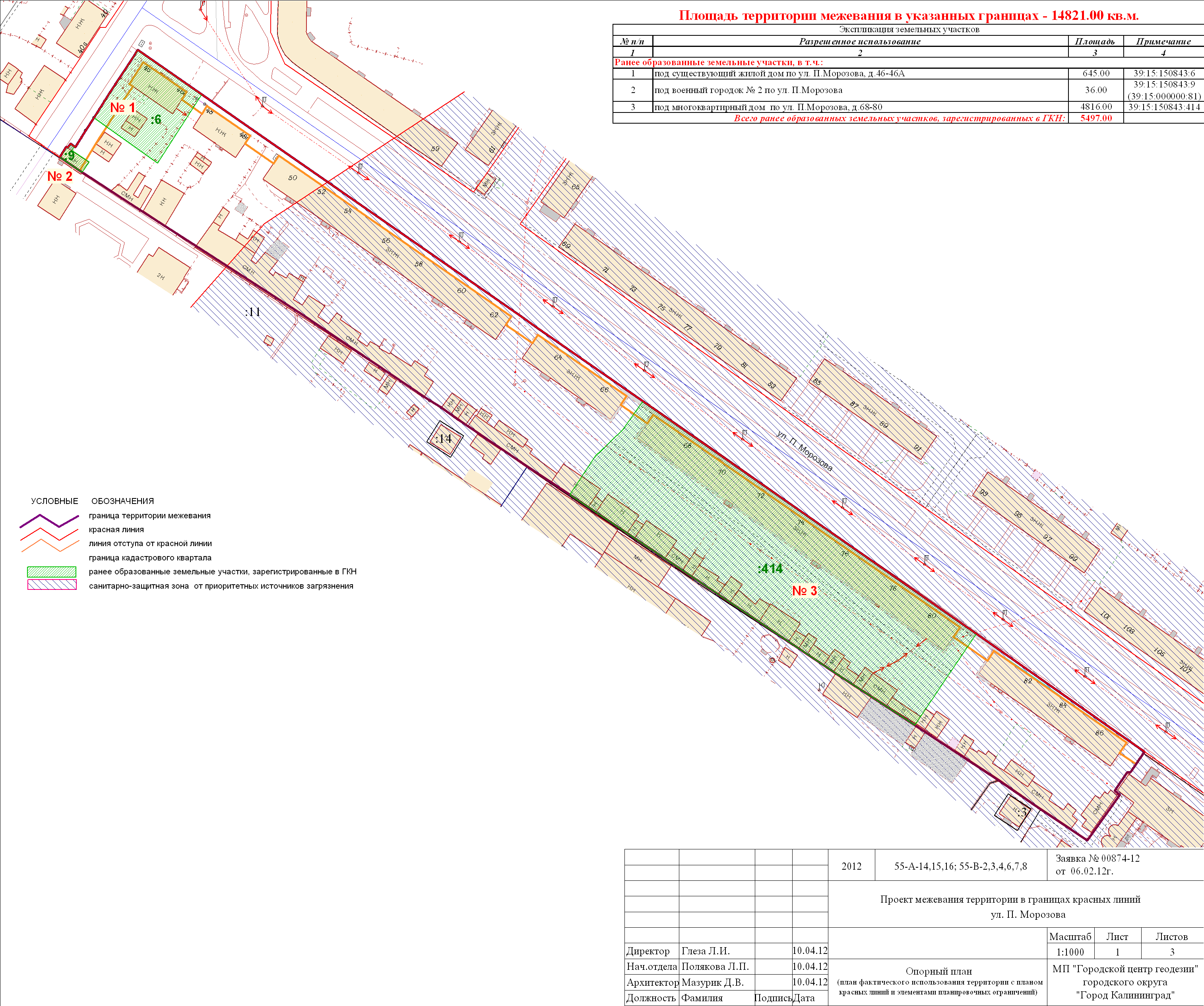 | Материалы проекта: | Постановление № 1589 от 17.08.2012 Опорный план Проект границ земельных участков План красных линий Данные по нормативным и проектным площадям земельных участков |