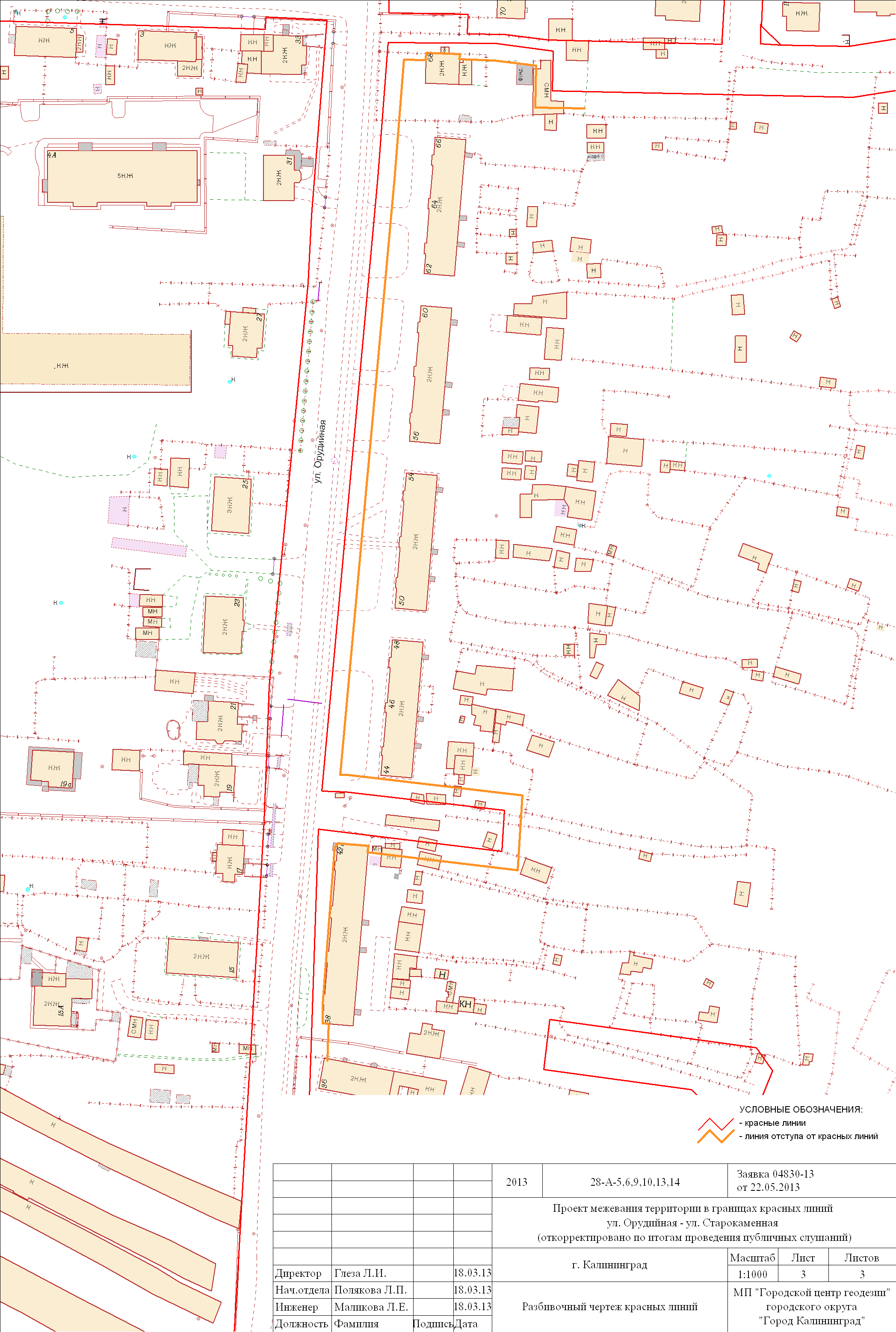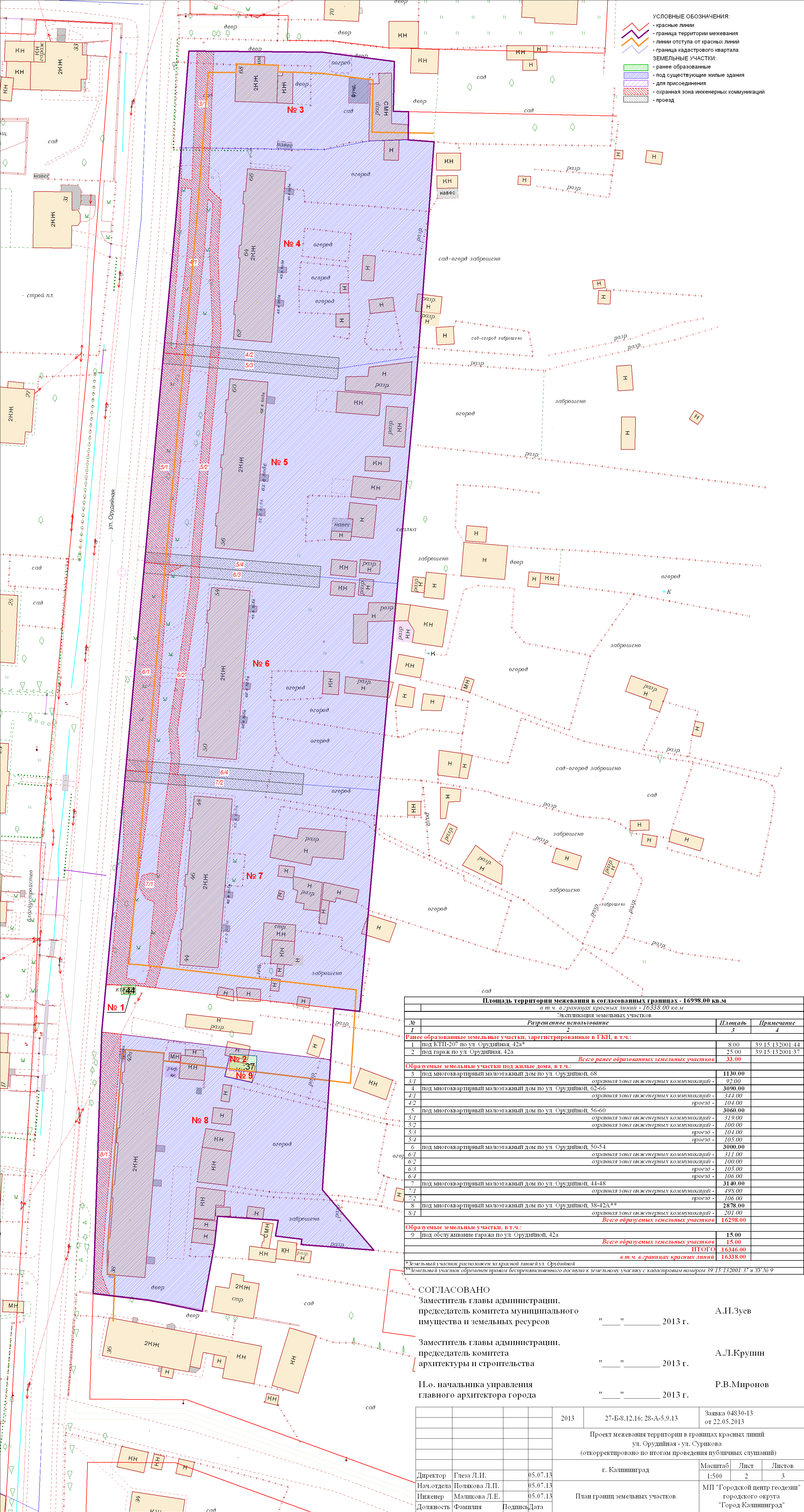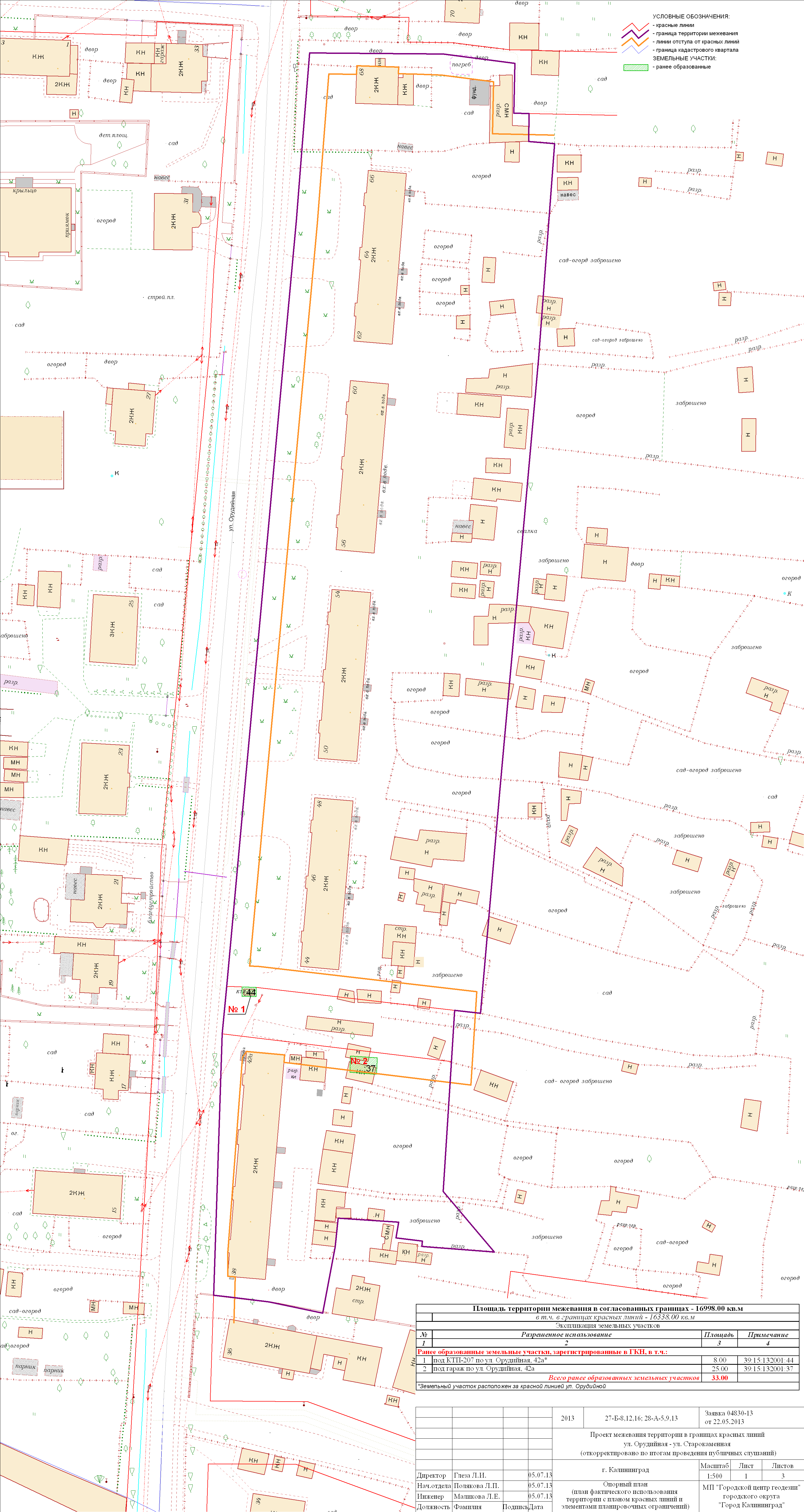 | Материалы проекта: | Постановление № 1204 от 12.08.2013 Опорный план План красных линий Проект границ Данные по нормативным и проектным площадям земельных участков |
