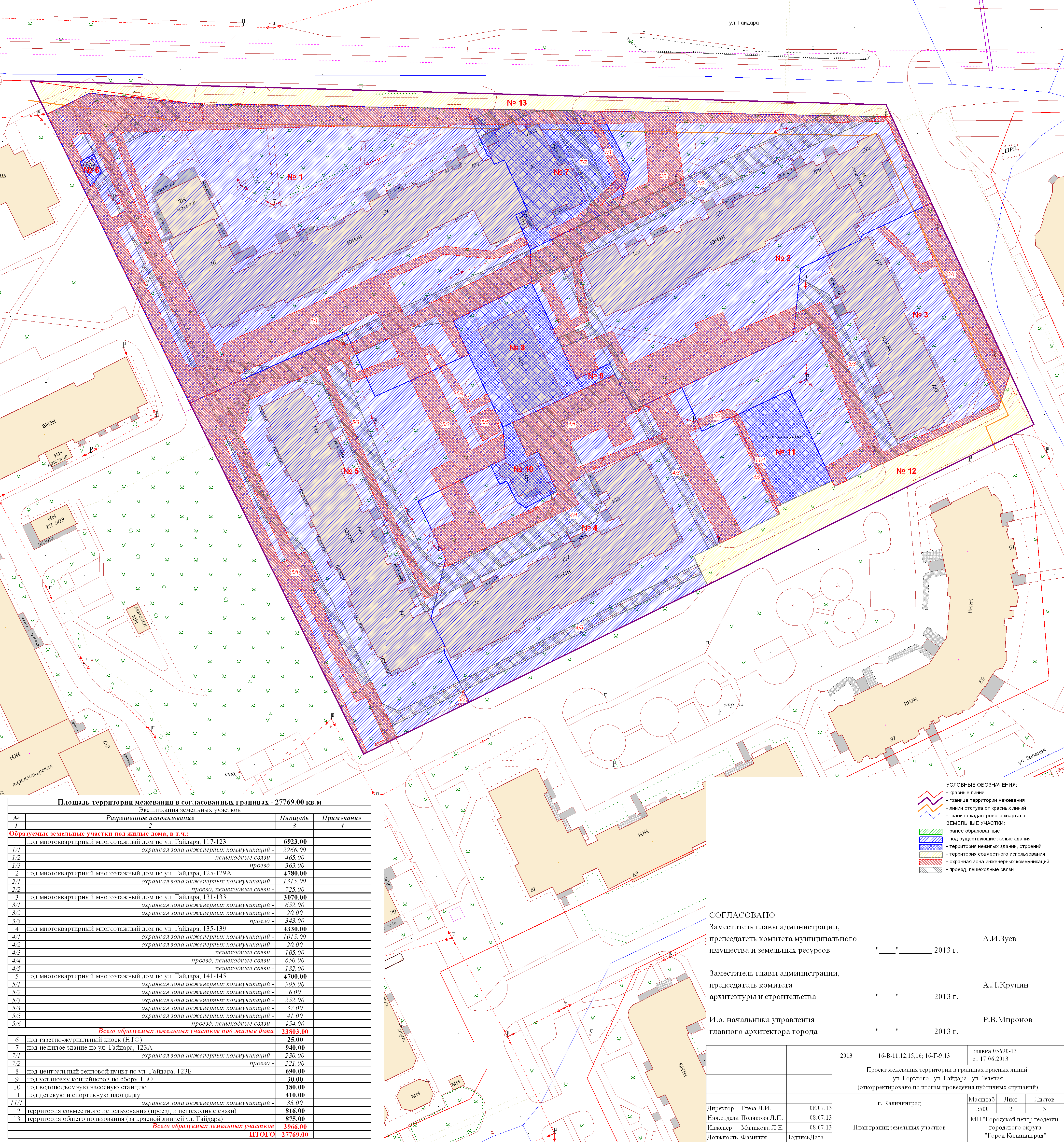 | Материалы проекта: | Постановление № 1227 от 15.08.2013 Данные по нормативным и проектным площадям земельных участков Опорный план План красных_линий Проект границ |