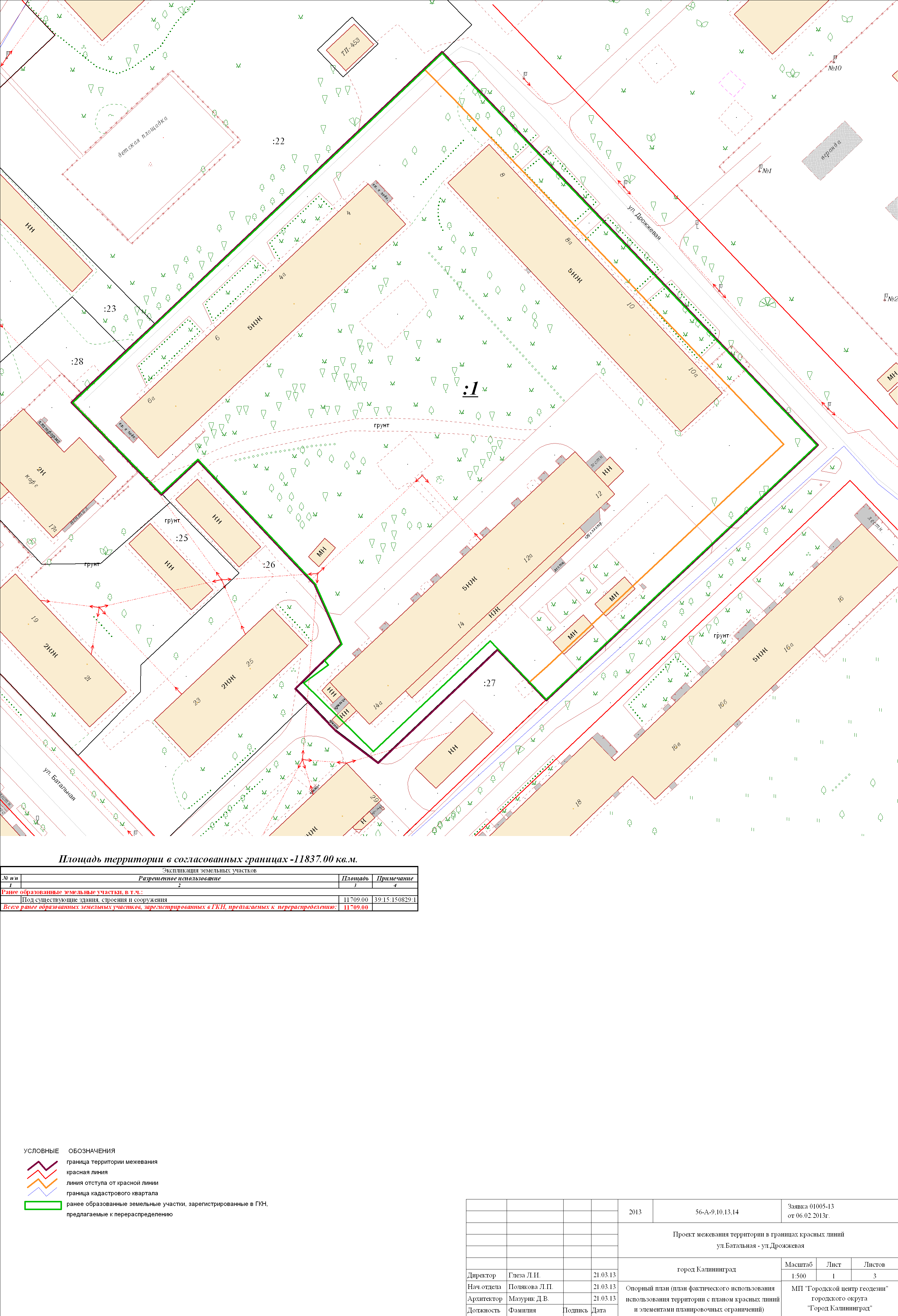 | Материалы проекта: | Постановление № 903 от 27.06.2013 Данные по нормативным и проектным площадям земельных участков Опорный план План красных линий Проект границ |