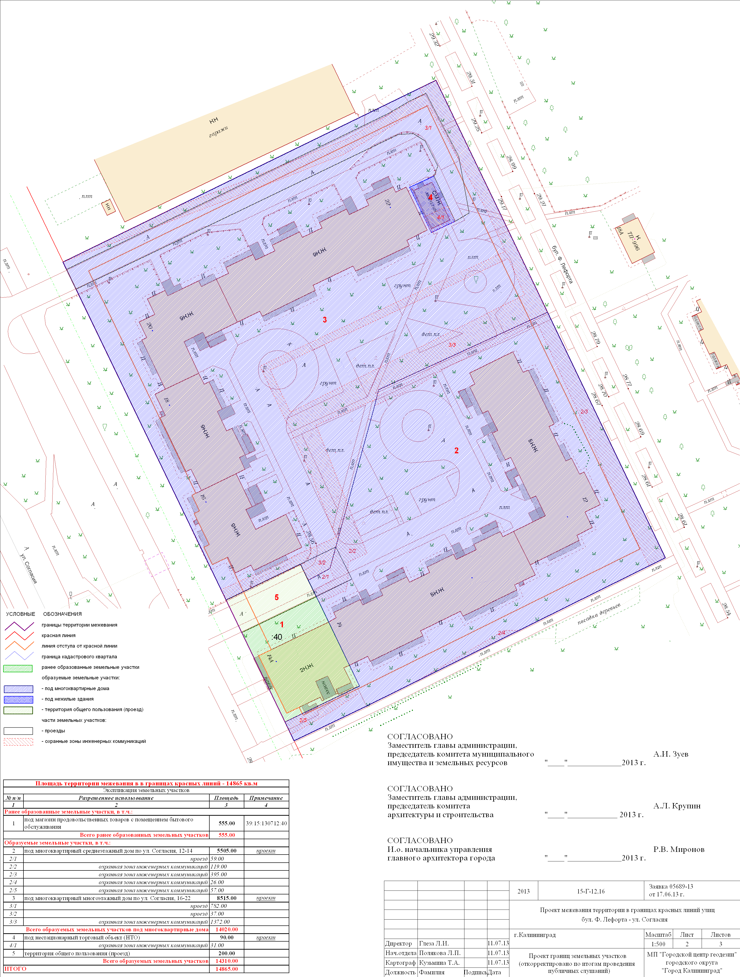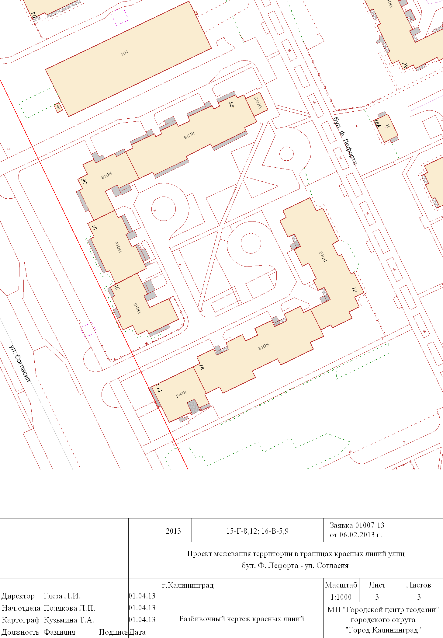 | Материалы проекта: | Постановление № 1120 от 31.07.2013 Опорный план План красных линий Проект границ Данные по нормативным и проектным площадям земельных участков |