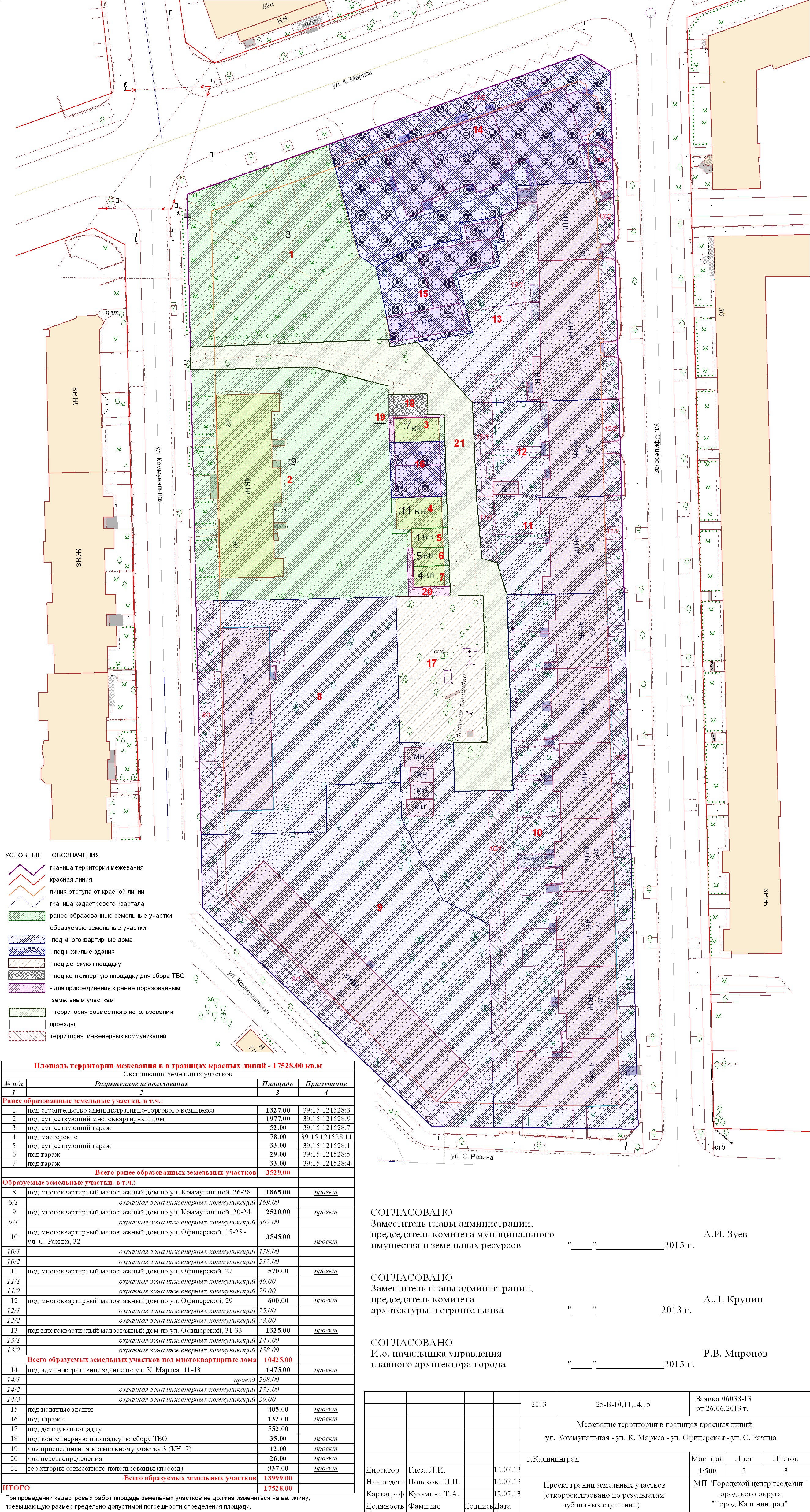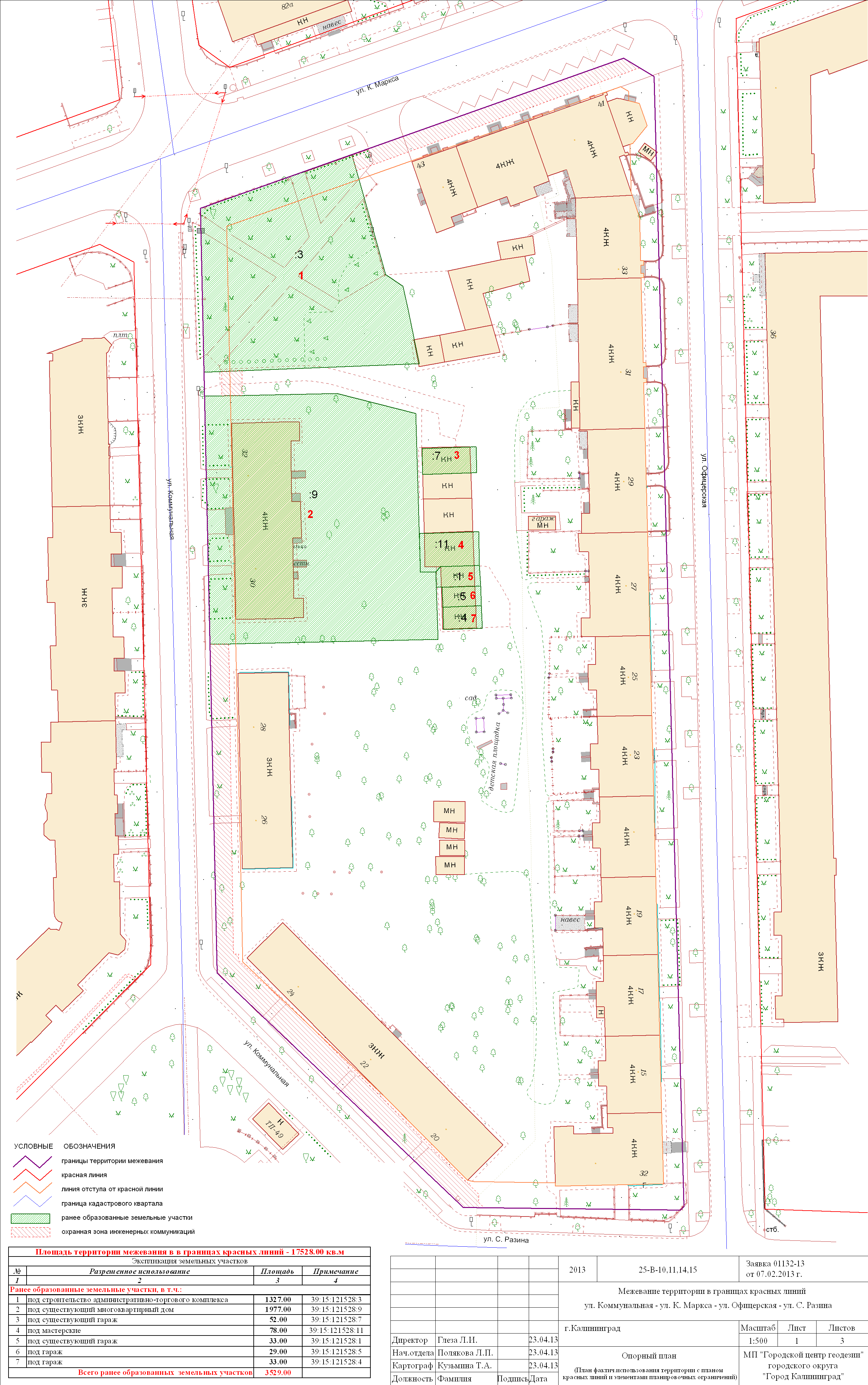 | Материалы проекта: | Постановление № 1228 от 15.08.2013 Данные по нормативным и проектным площадям земельных участков Опорный план План красных_линий Проект границ |