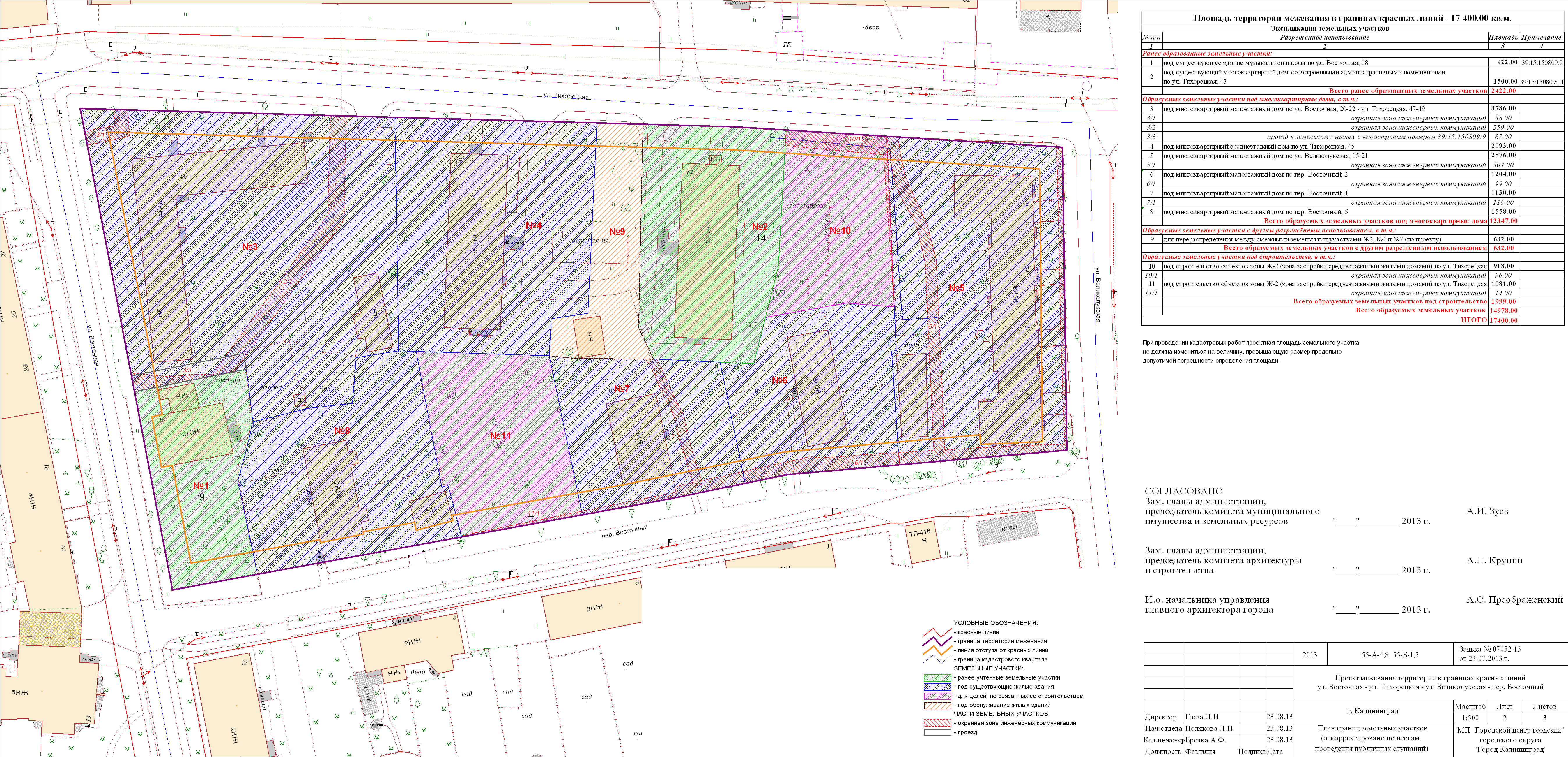 | Материалы проекта: | Постановление № 1452 от 23.09.2013 Данные по нормативным и проектным площадям земельных участков Опорный план План красных_линий Проект границ |