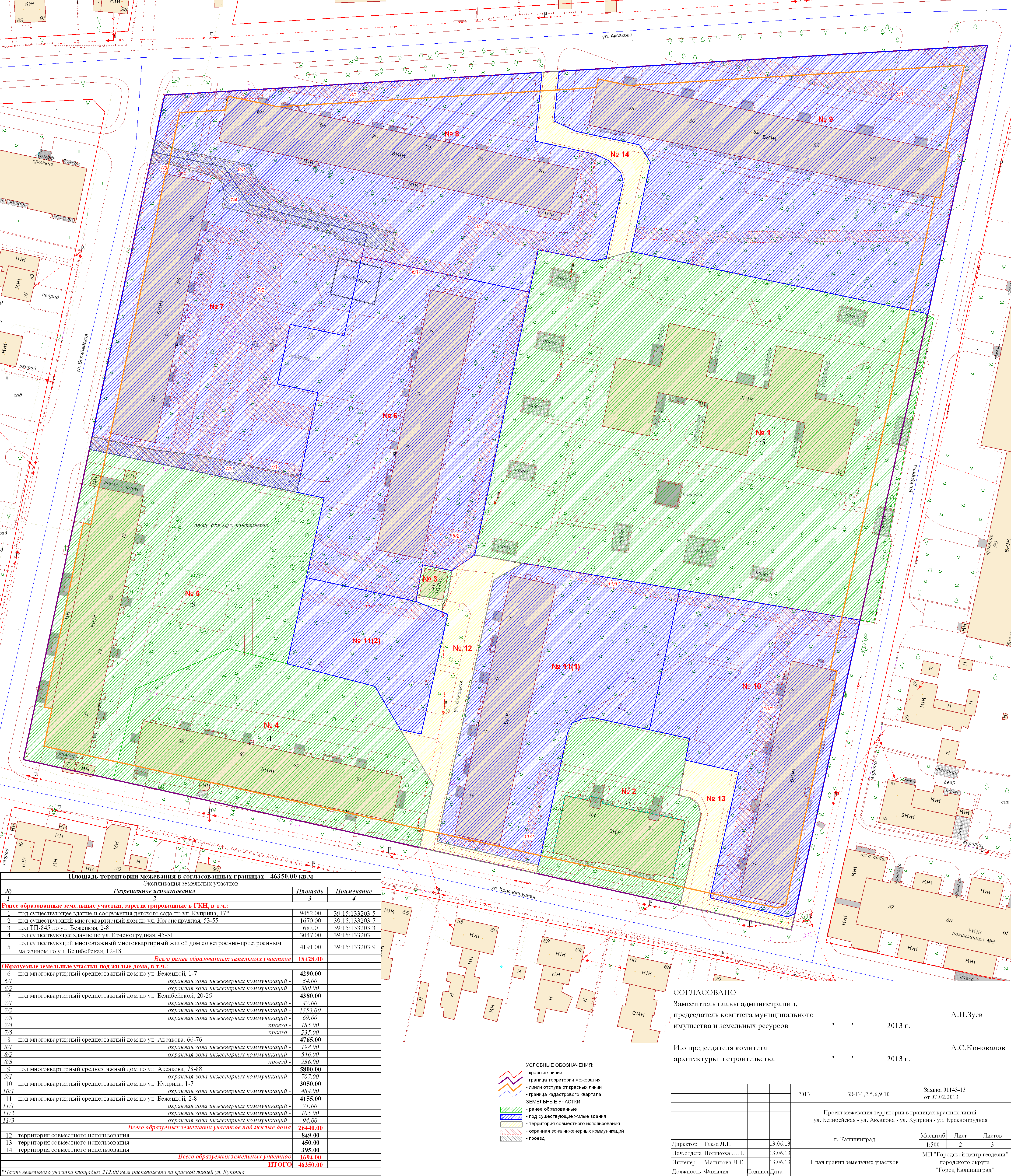 | Материалы проекта: | Постановление № 1508 от 02.10.2013 Данные по нормативным и проектным площадям земельных участков Опорный план План красных_линий Проект границ |