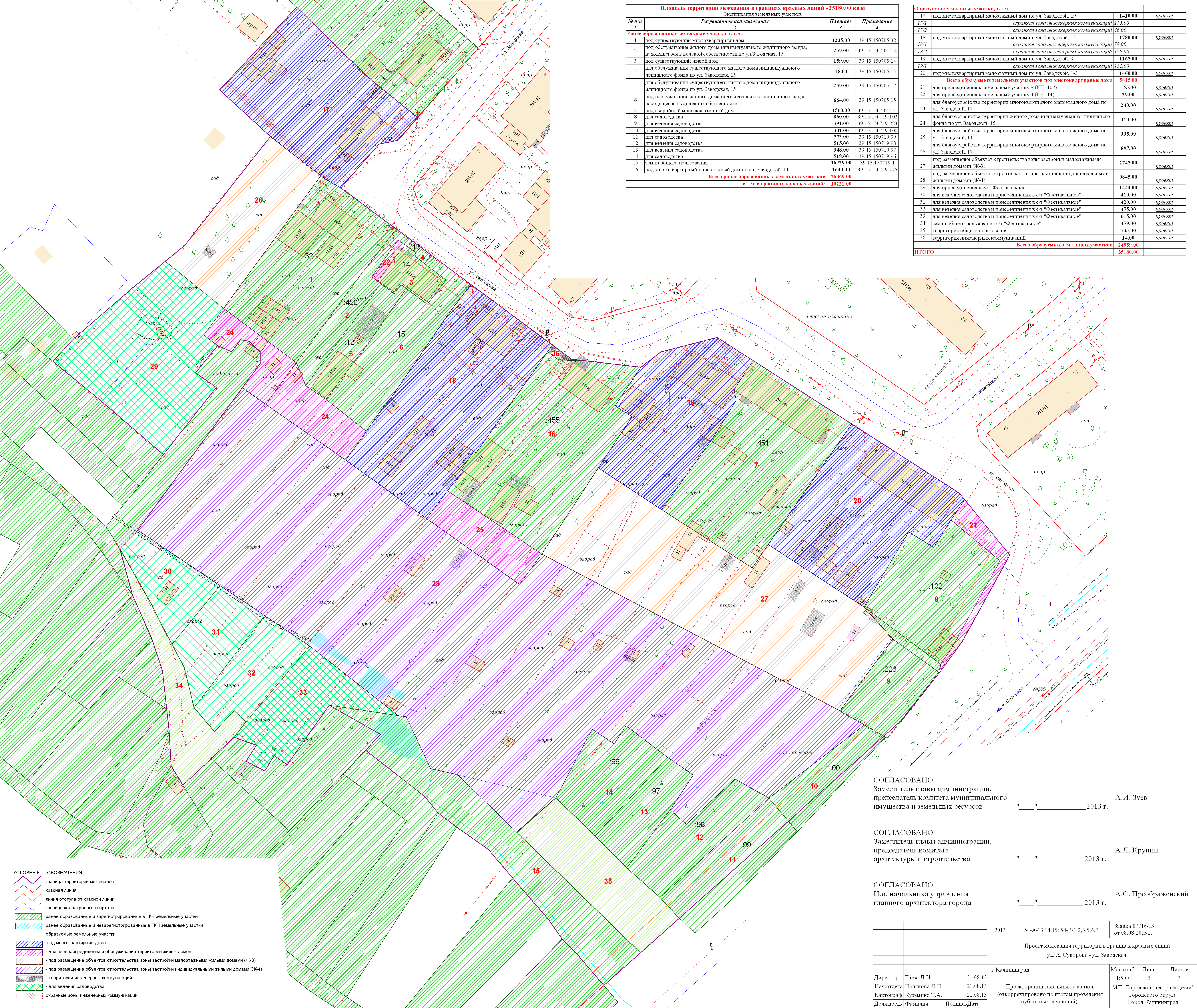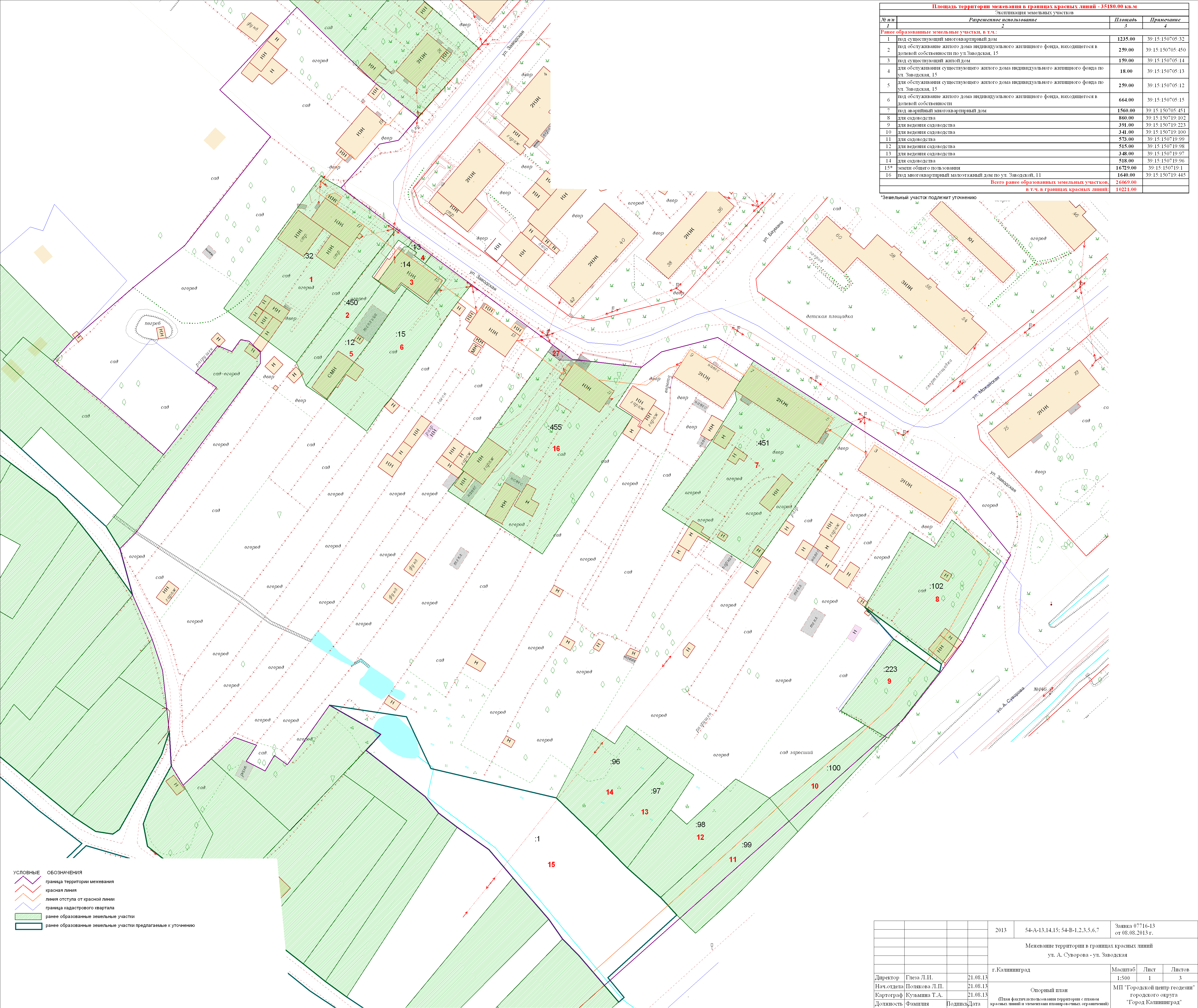 | Материалы проекта: | Постановление № 1454 от 23.09.2013 Данные по нормативным и проектным площадям земельных участков Опорный план План красных_линий Проект границ |