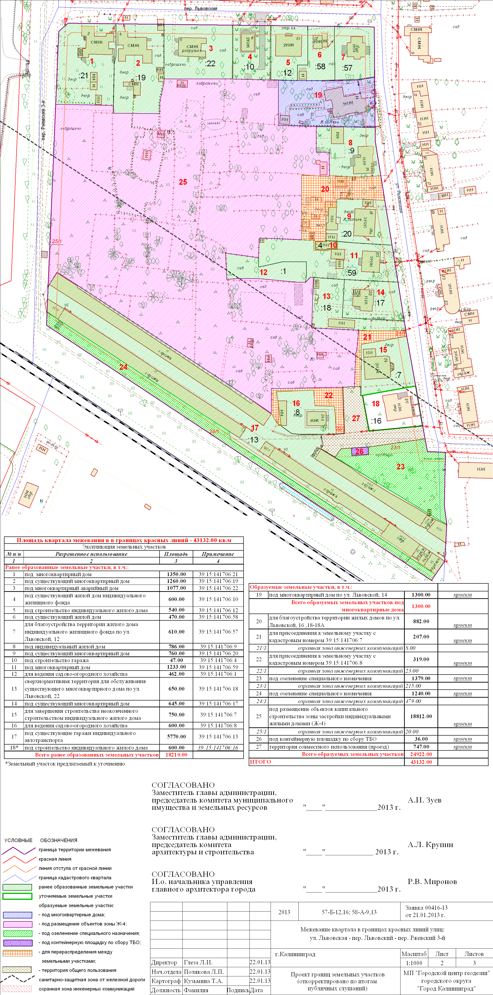 | Материалы проекта: | Постановление № 171 от 13.02.2013 Данные по нормативным и проектным площадям земельных участков Опорный план План красных линий Проект границ |