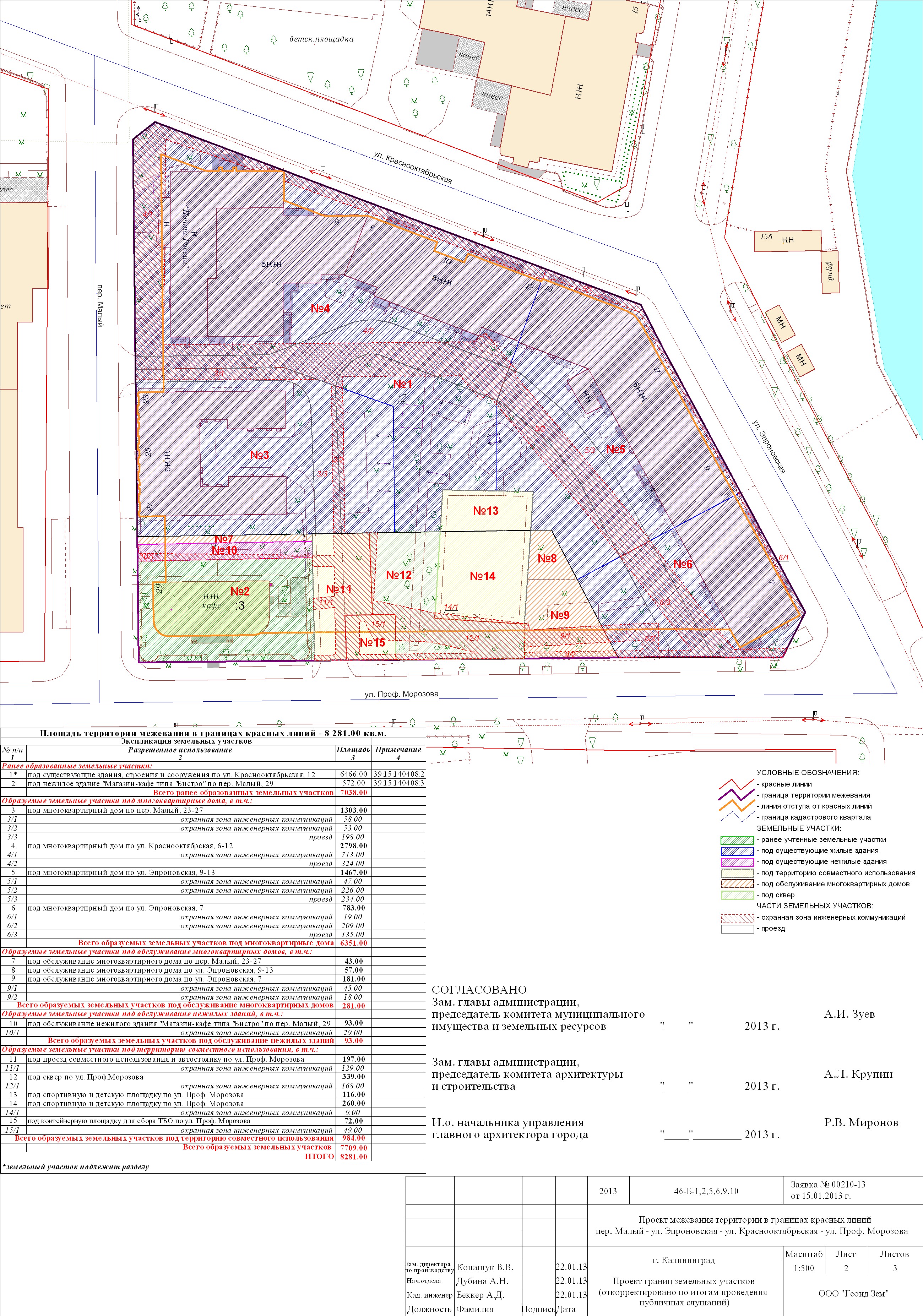 | Материалы проекта: | Постановление № 170 от 13.02.2013 Проект границ План красных линий Пояснительная записка Данные по нормативным и проектным площадям земельных участков Опорный план |