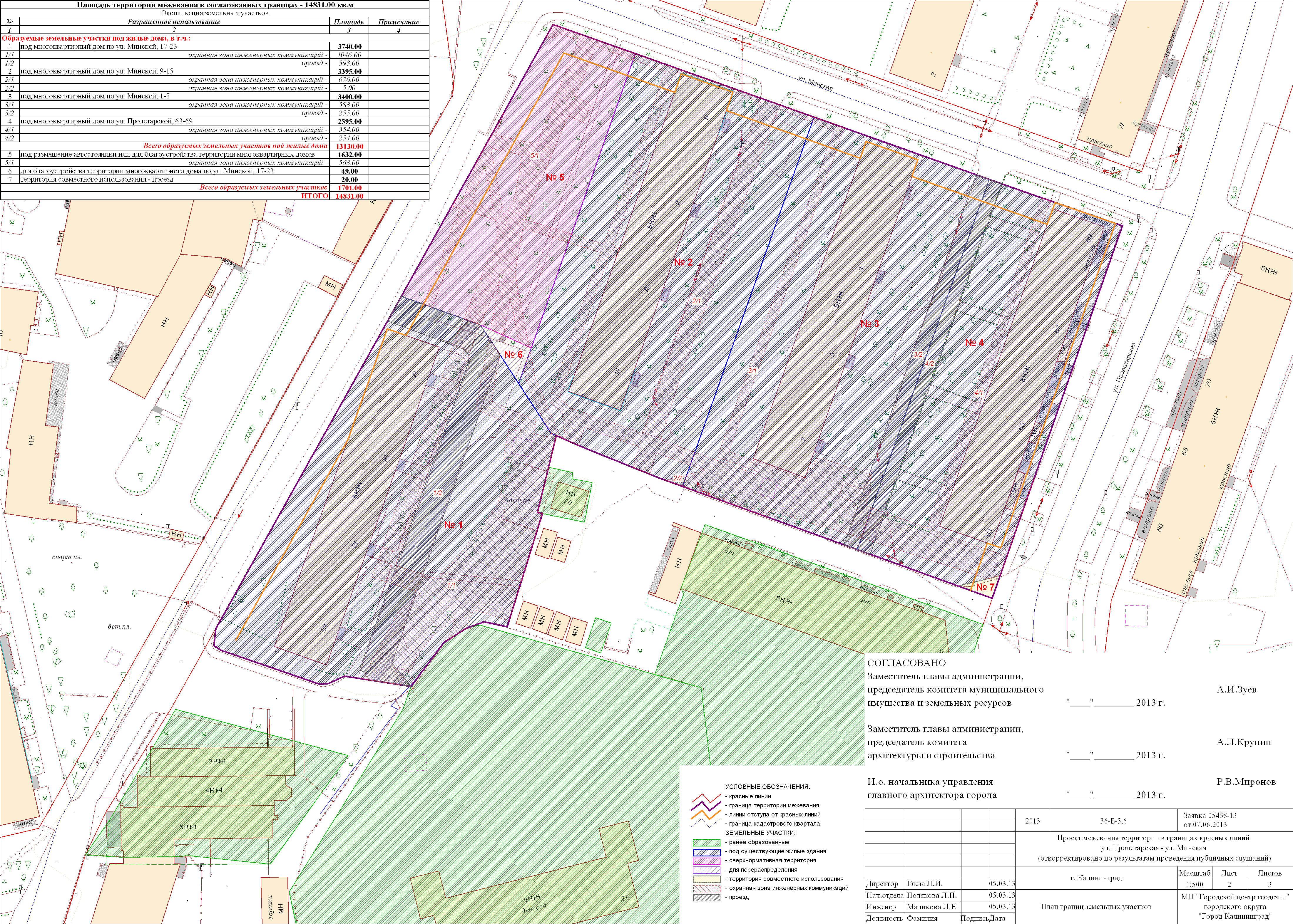 | Материалы проекта: | Постановление № 1202 от 12.08.2013 Опорный план План красных линий Проект границ Данные по нормативным и проектным площадям земельных участков |
