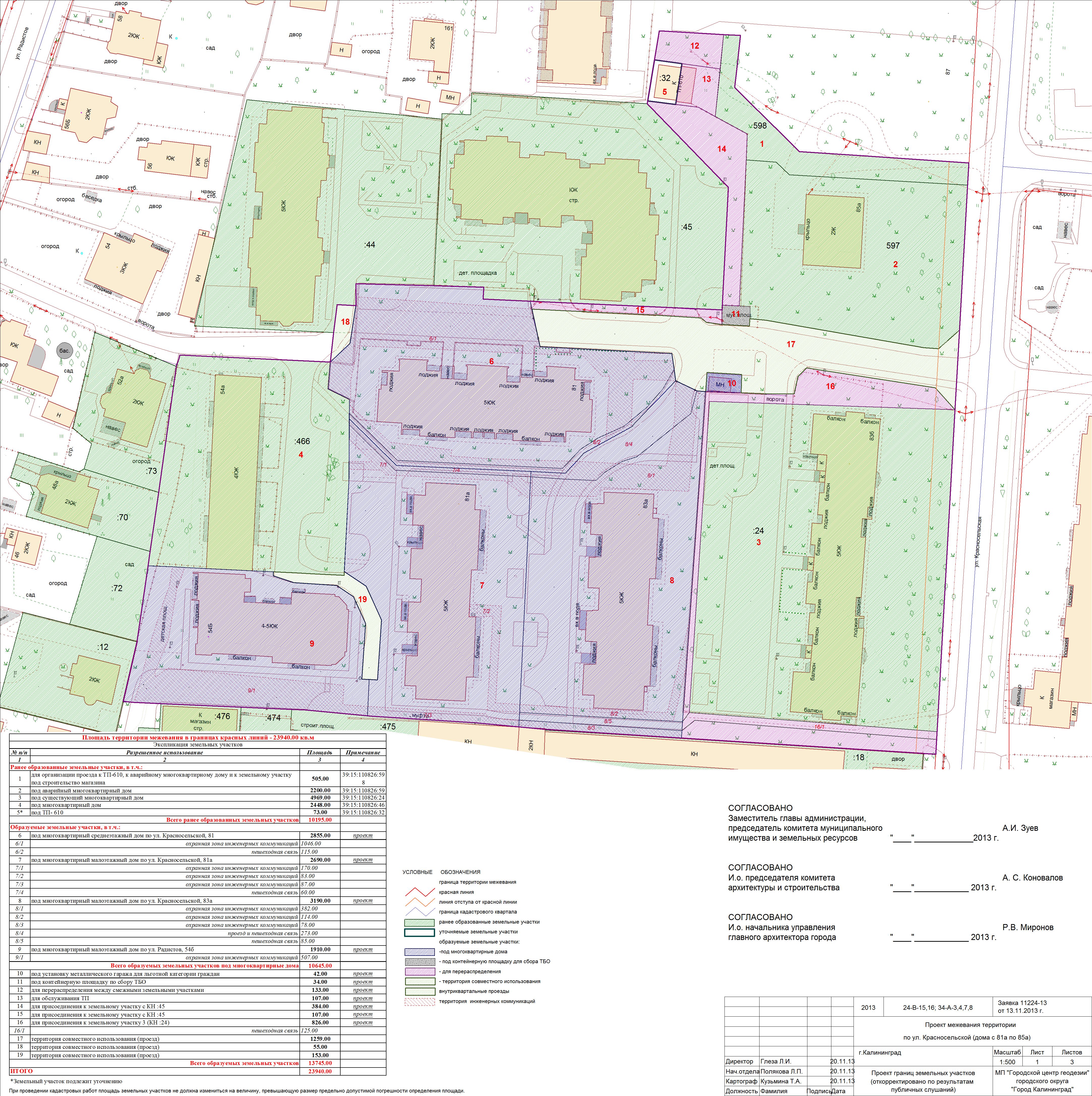| Материалы проекта: | Постановление № 1951 от 11.12.2013 Проект границ План красных линий Пояснительная записка Данные по нормативным и проектным площадям земельных участков Опорный план |